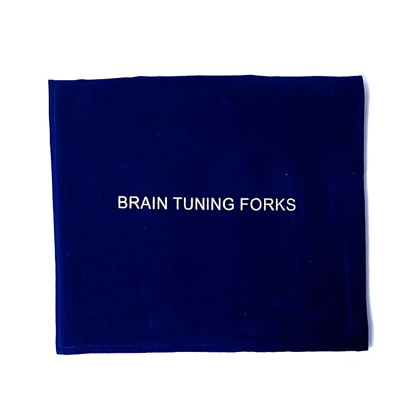Set 'Ondes cérébrales' de 5 diapasons, en aluminium anodisé finition Argent, set de 29x24 centimètres. Livré dans 1 pochette en velours bleu !
