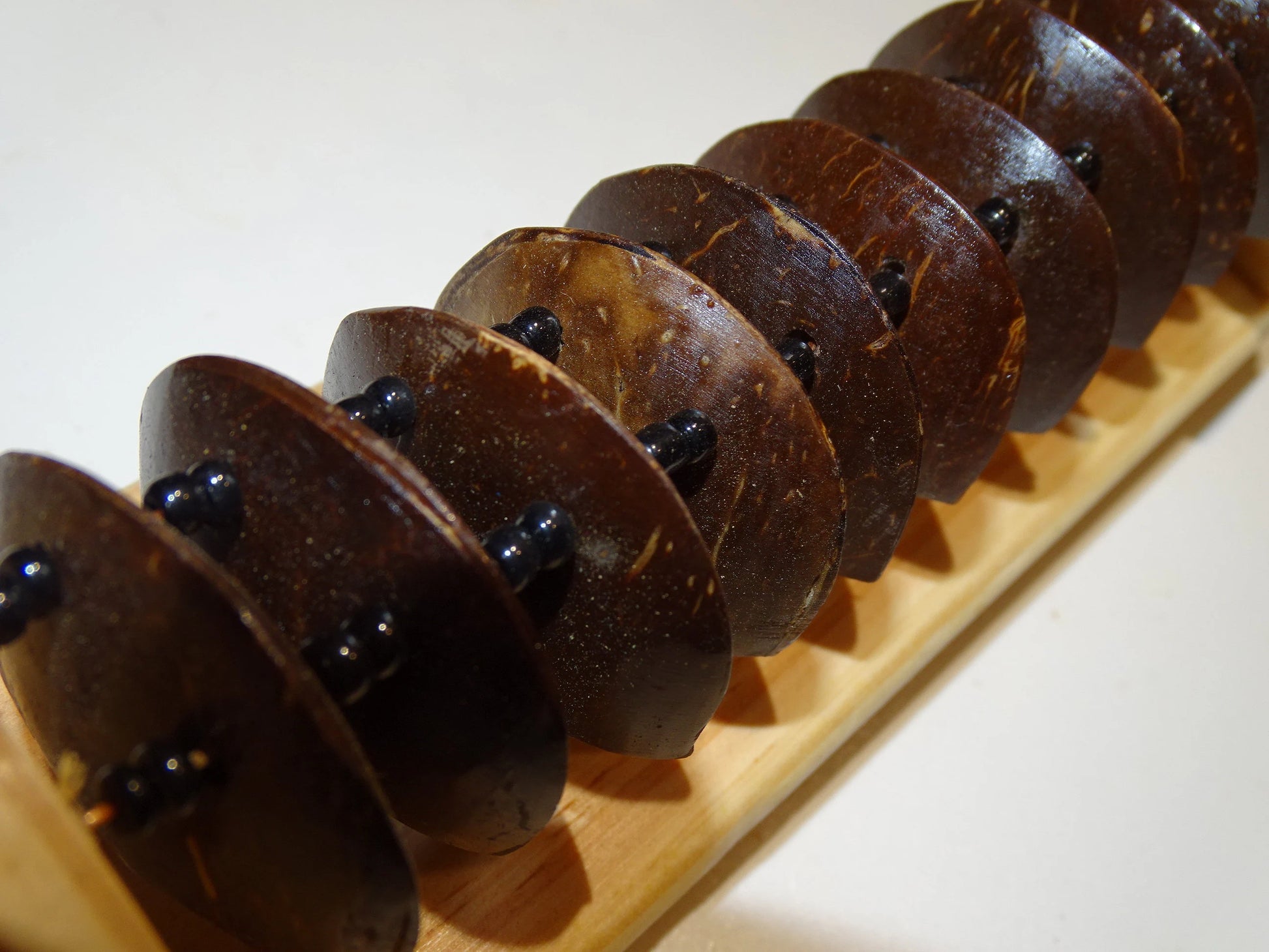 Shaker Guiro en graine sur base plate en bois. Peut également être utilisé comme shaker. Livré avec bâton ! 25 × 6,50 × 7 cm - 0,25 g !