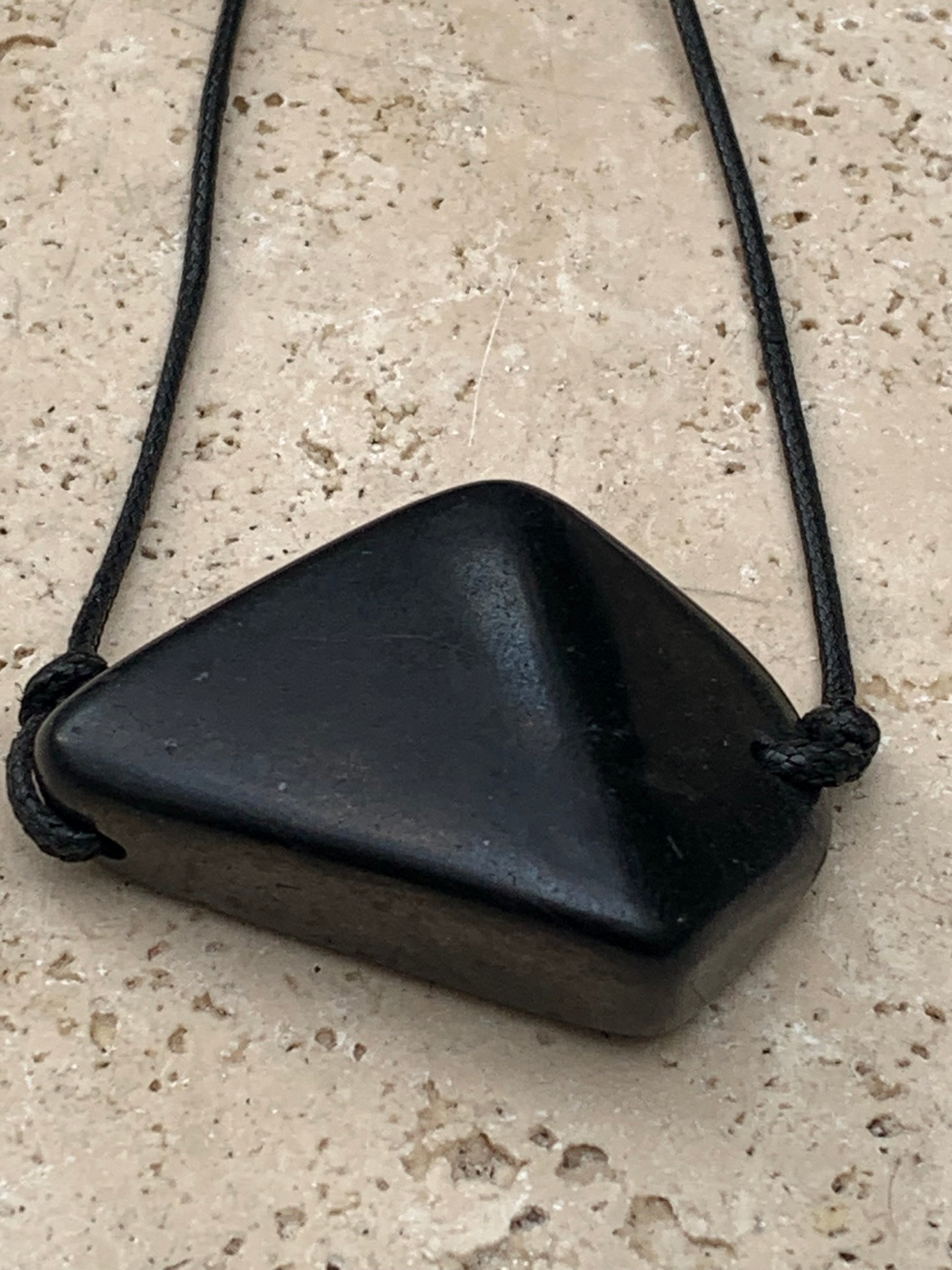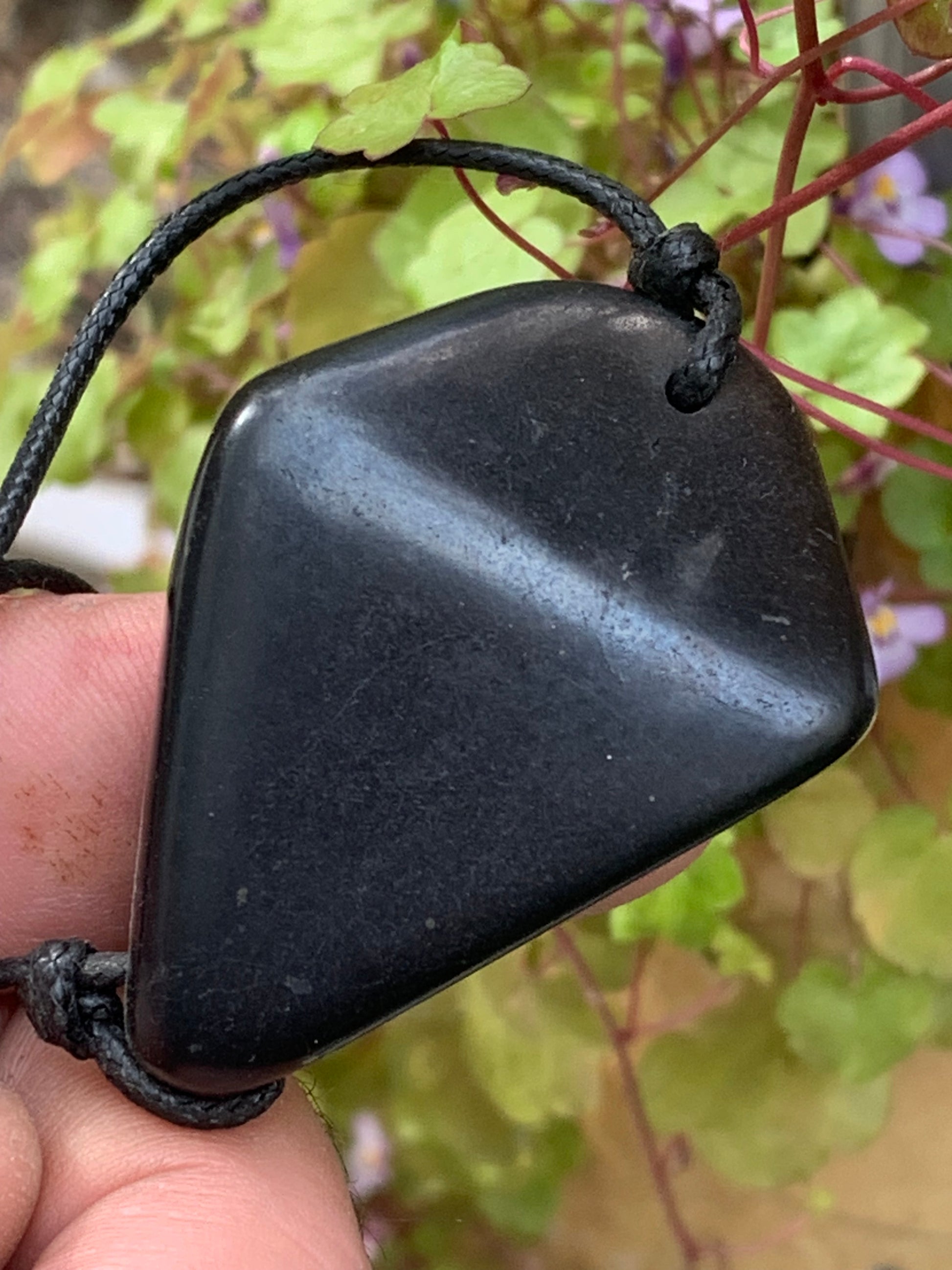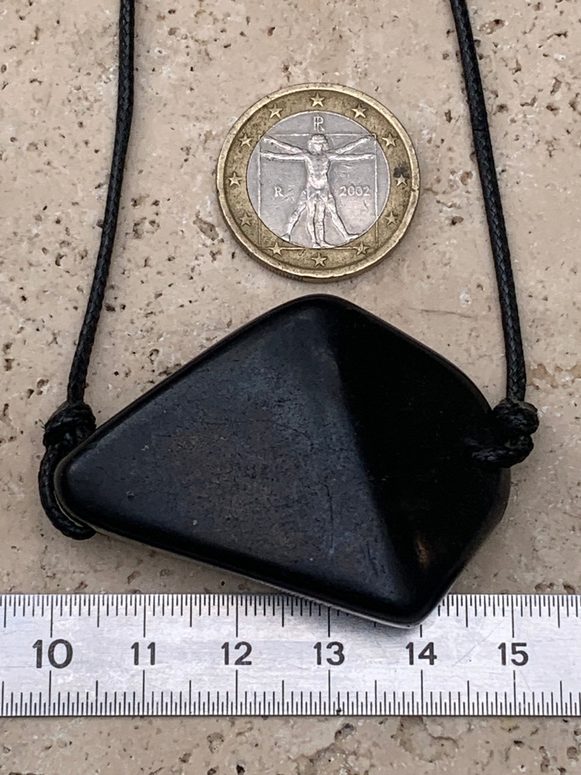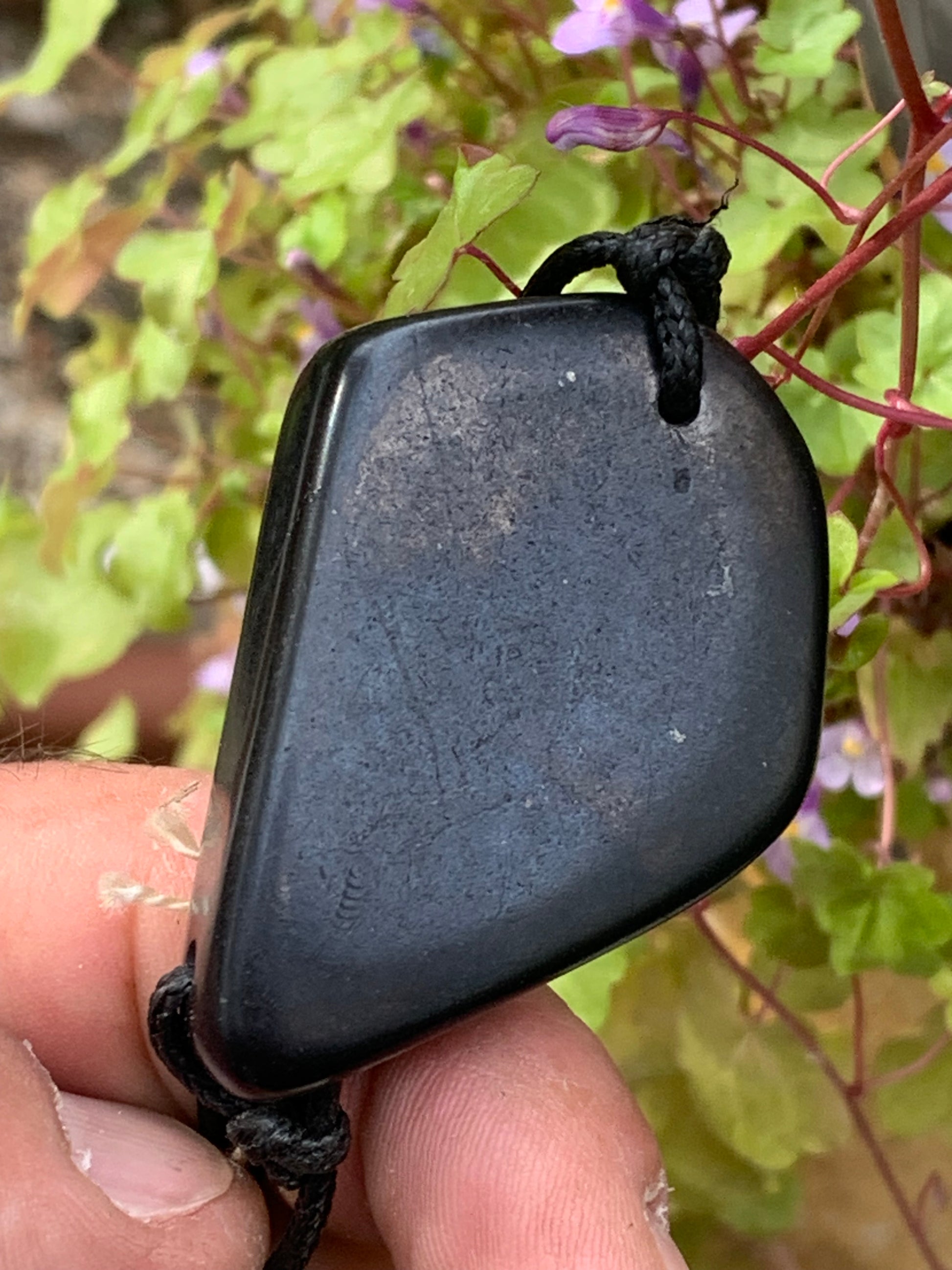 Shungite, pendentif de 35mm de hauteur x 50 de largeur x 16 d'épaisseur. Vendu avec son cordon réglable de couleur noire offert !