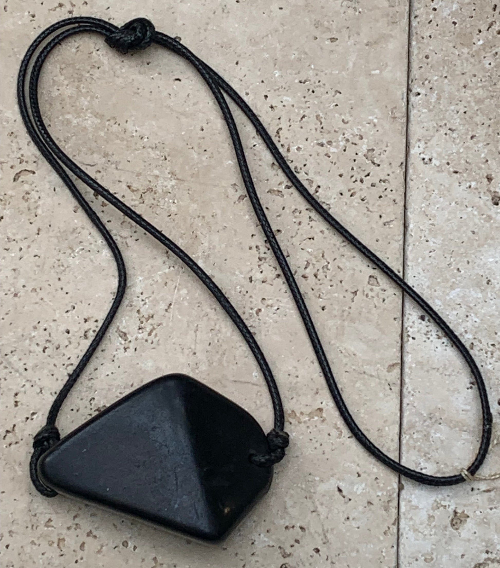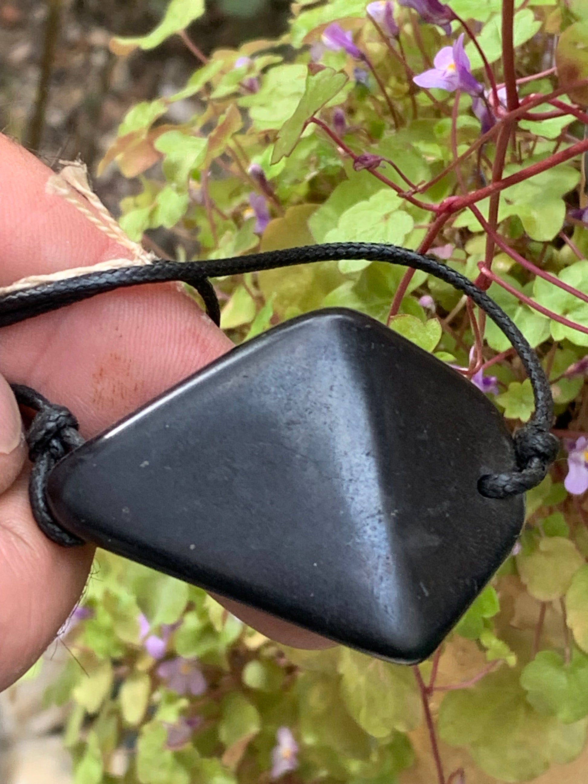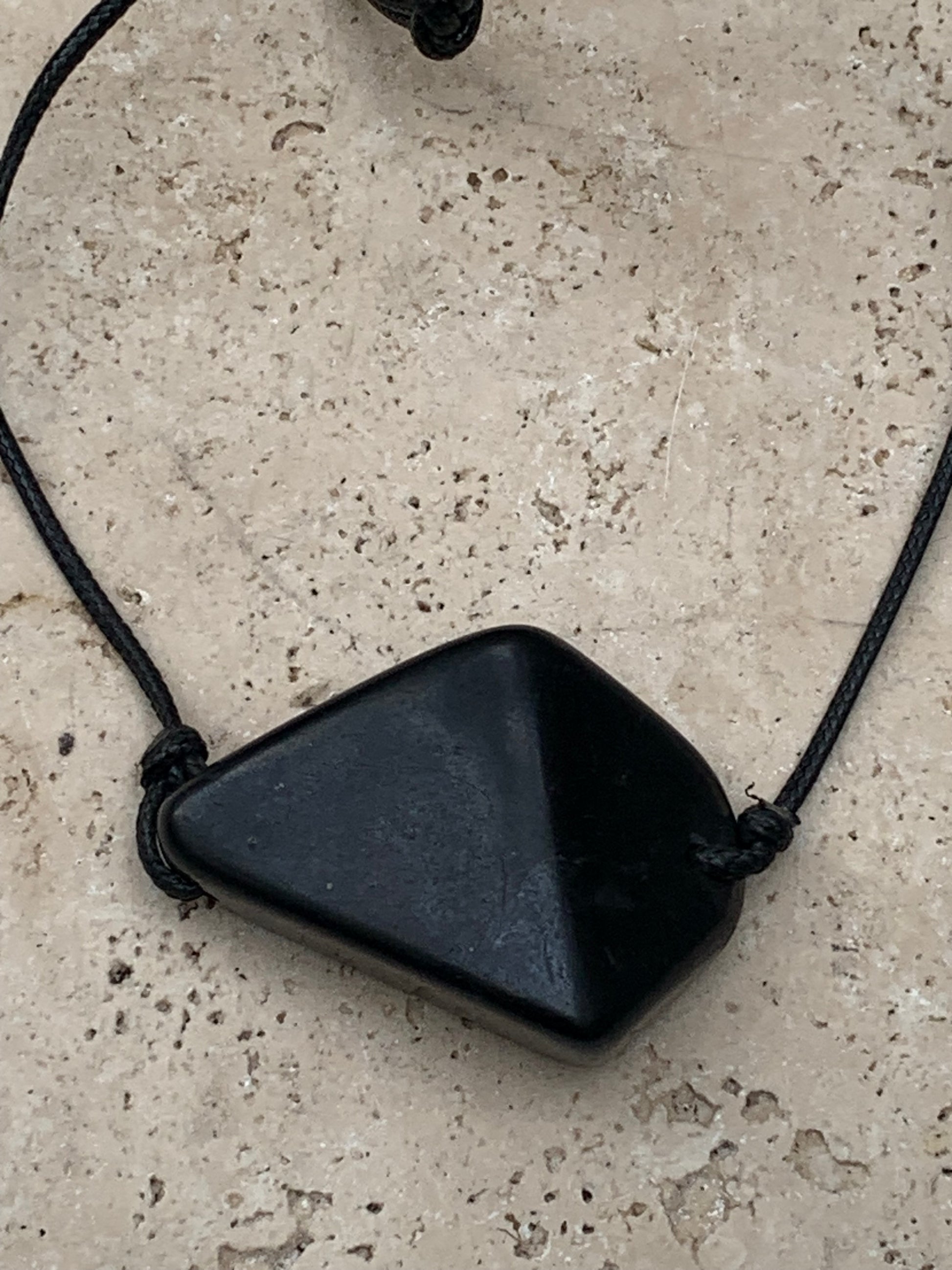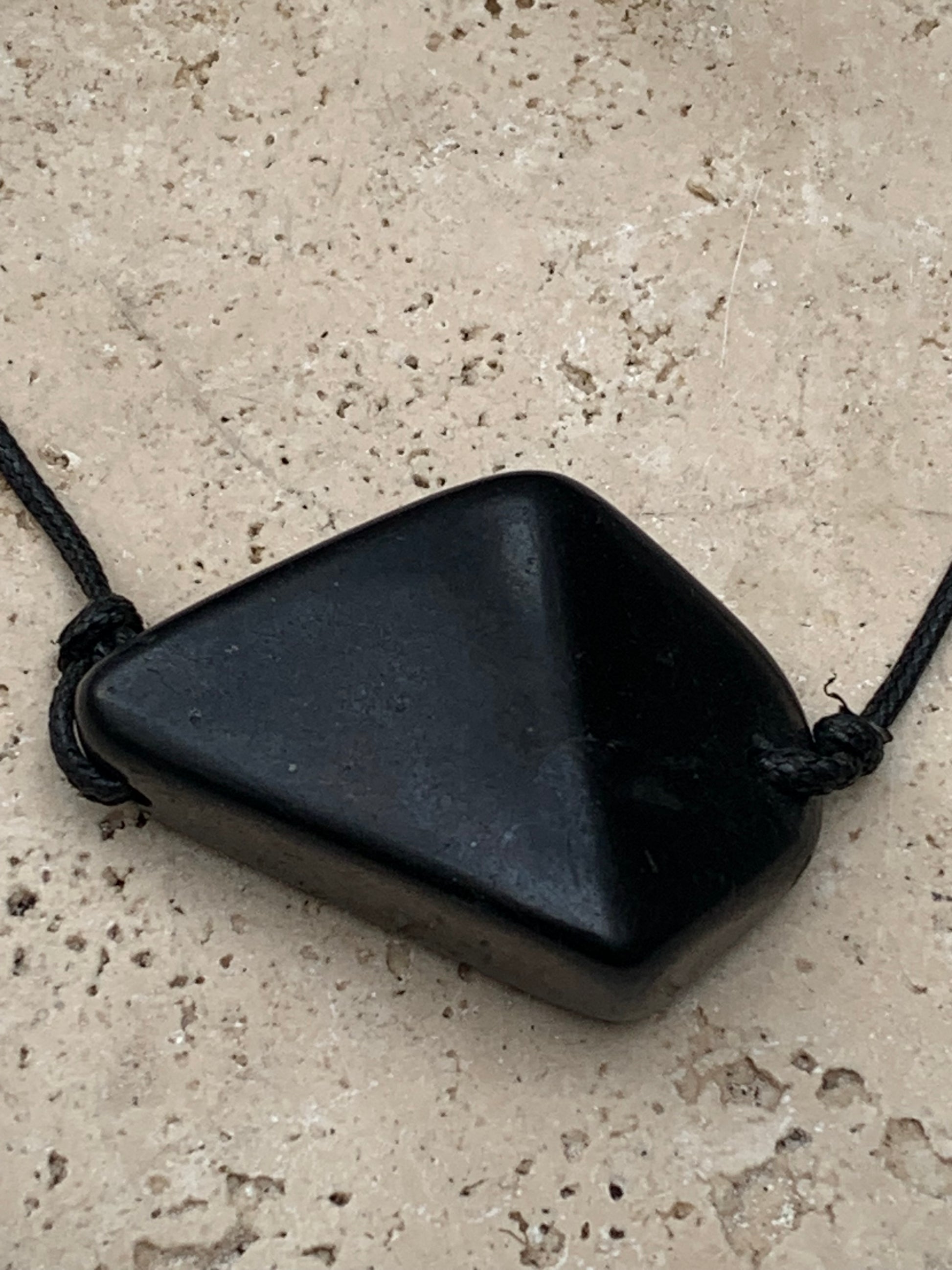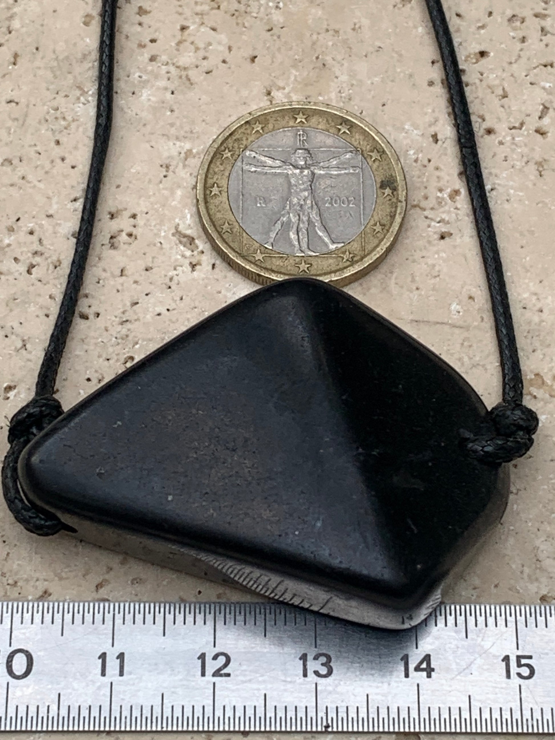 Shungite, pendentif de 35mm de hauteur x 50 de largeur x 16 d'épaisseur. Vendu avec son cordon réglable de couleur noire offert !