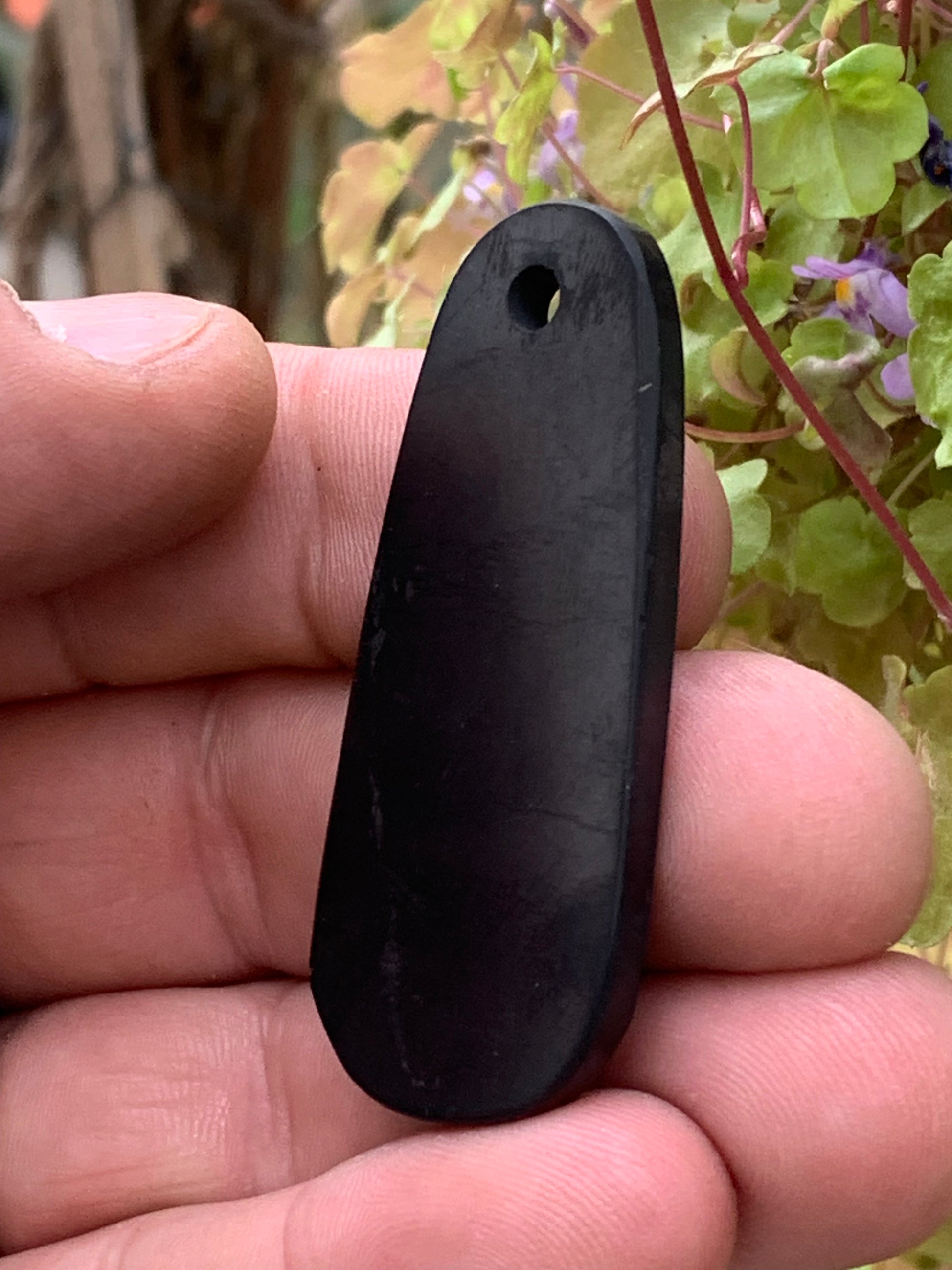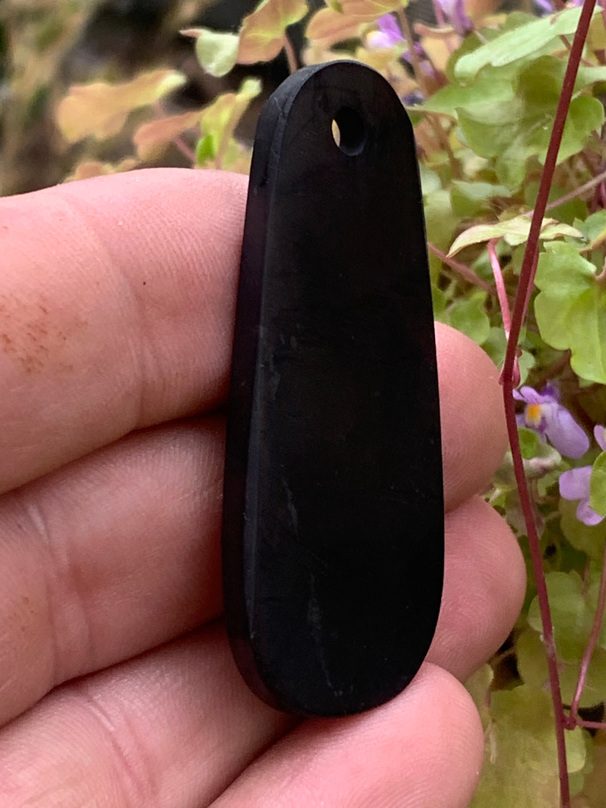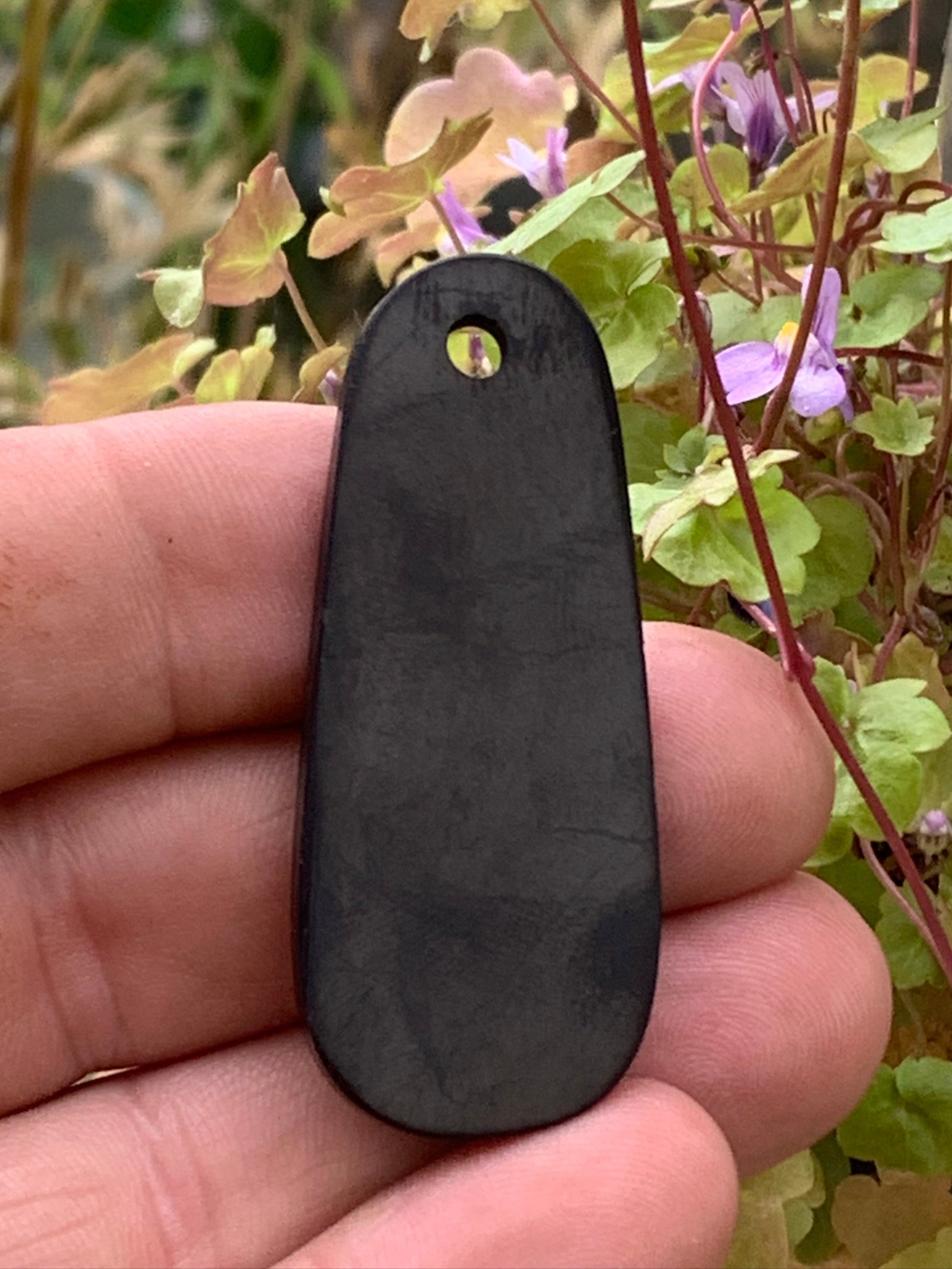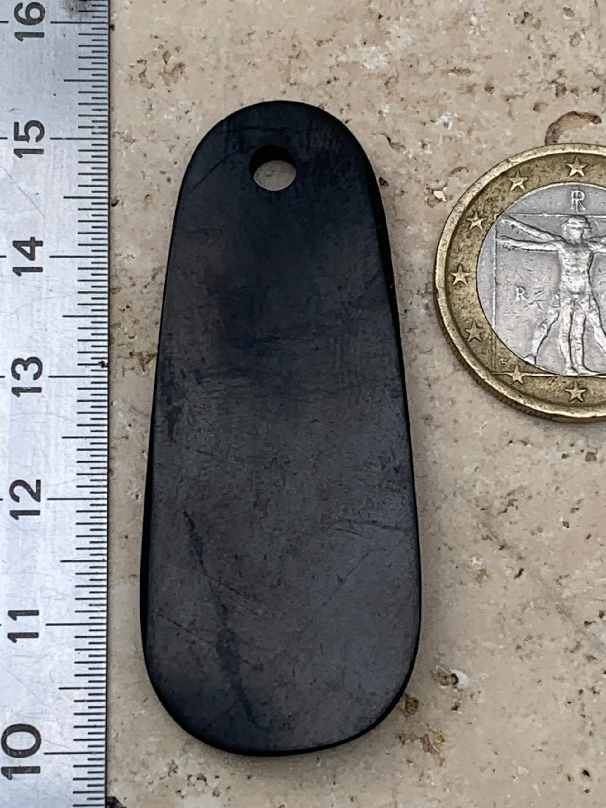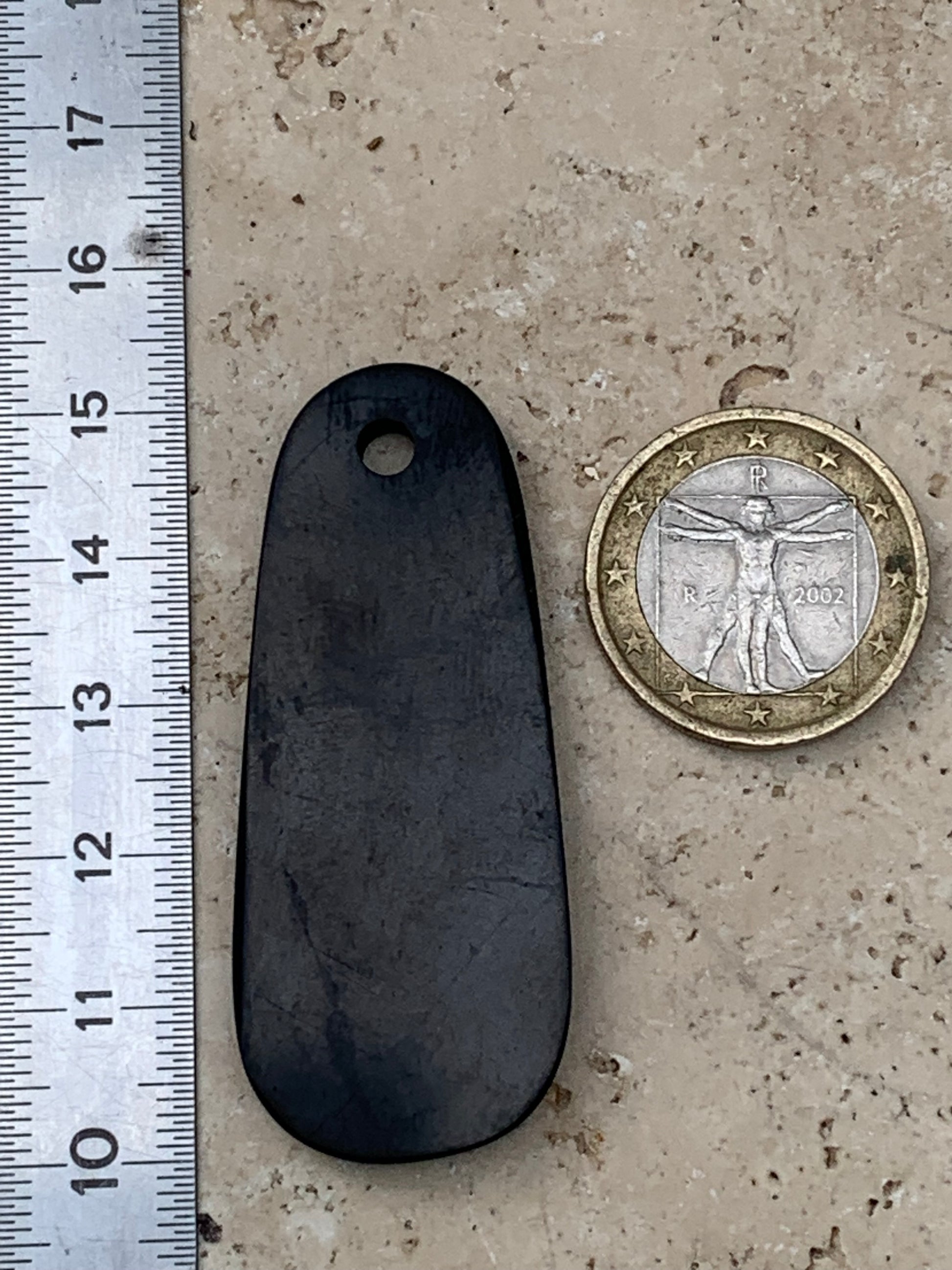 Shungite, pendentif de 53mm de hauteur x 22 de largeur x 15 d'épaisseur. Vendu avec cordon réglable de couleur noire offert !