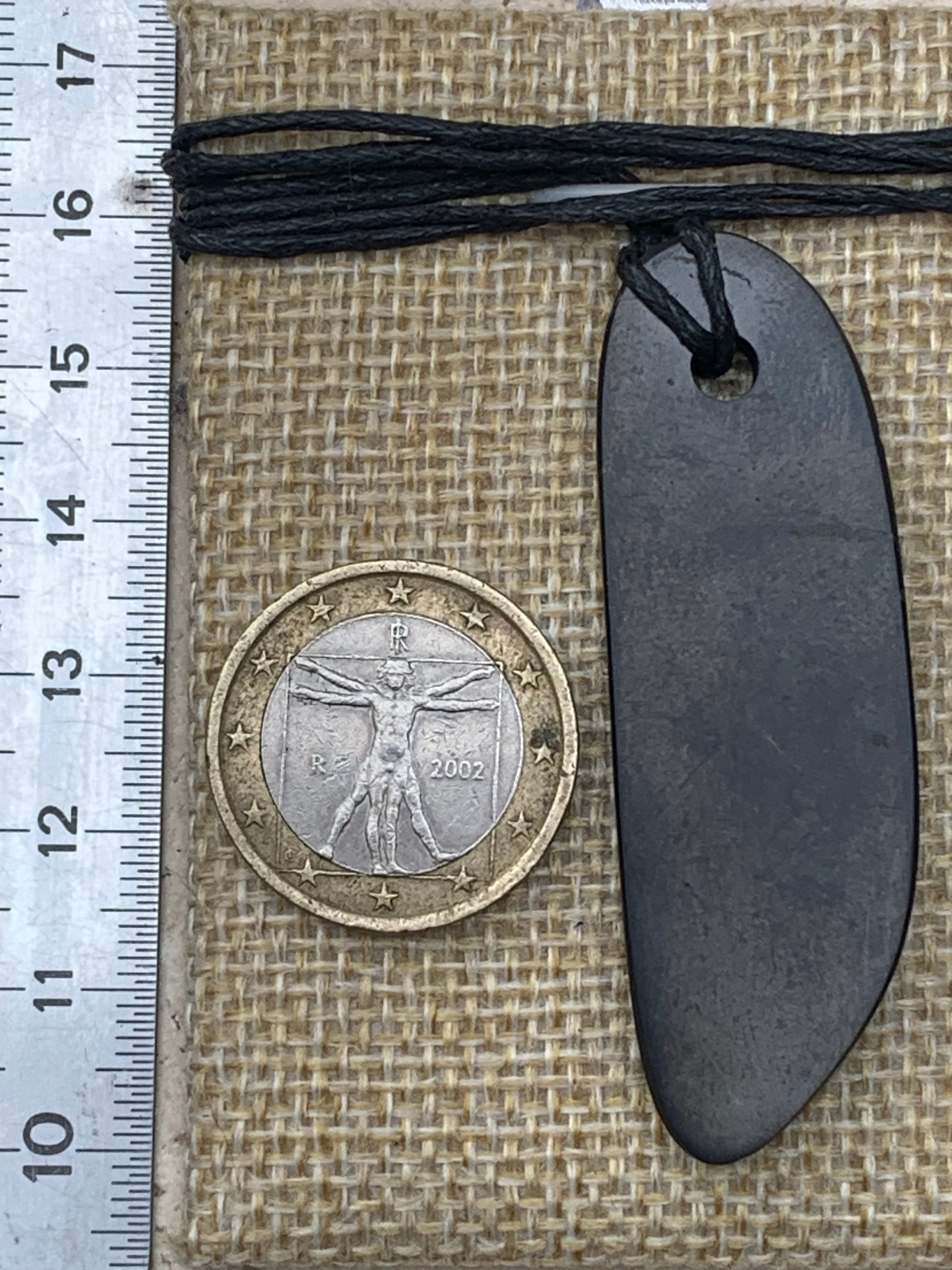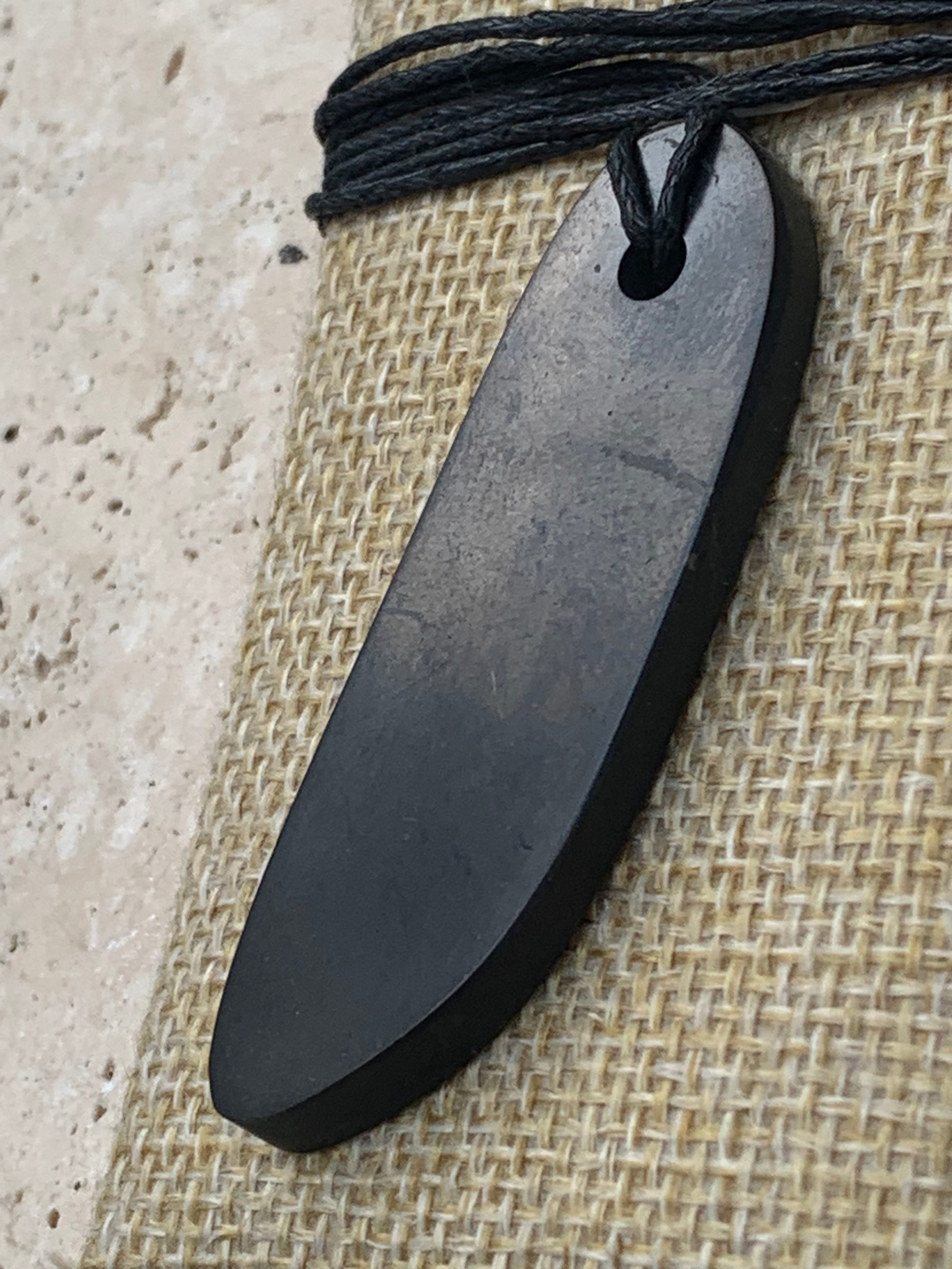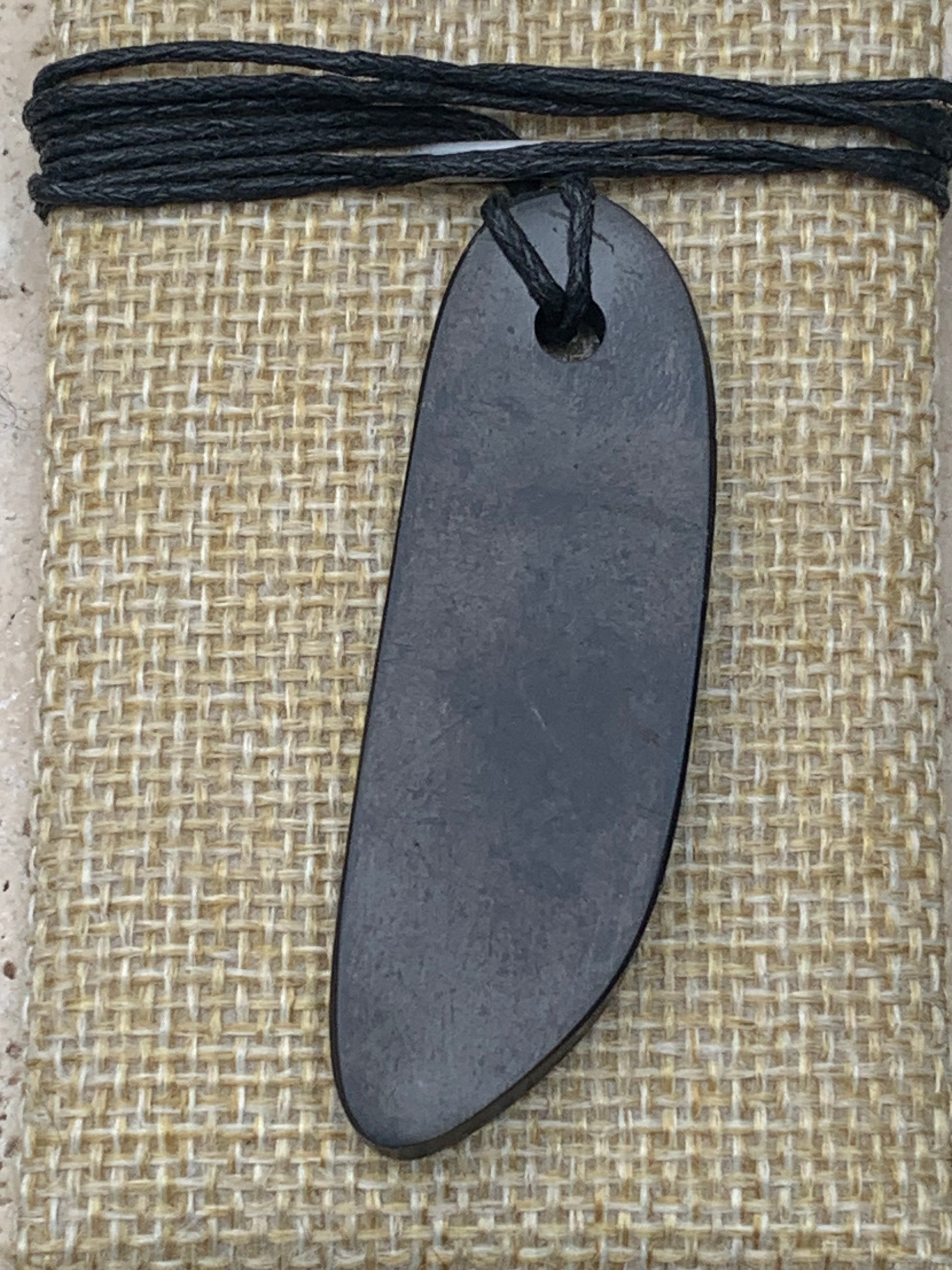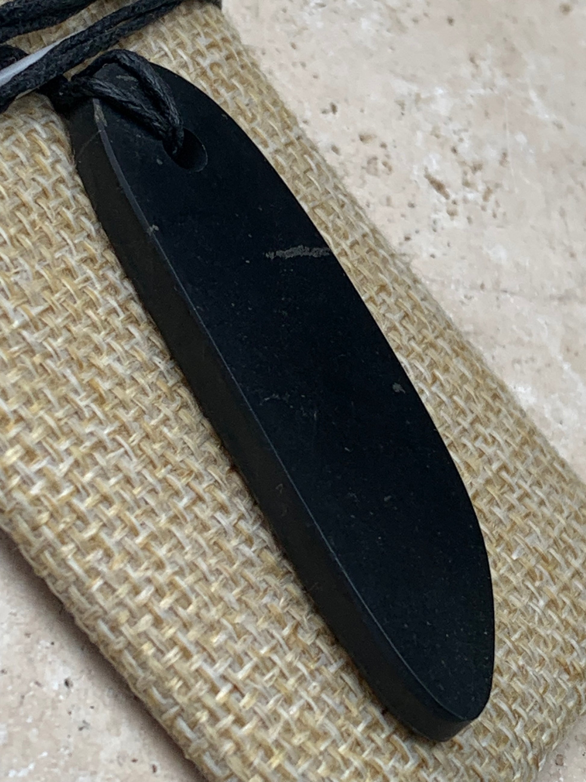 Shungite, pendentif de 58mm de hauteur x 19 de largeur x 5 d'épaisseur. Vendu avec cordon réglable de couleur noire offert !