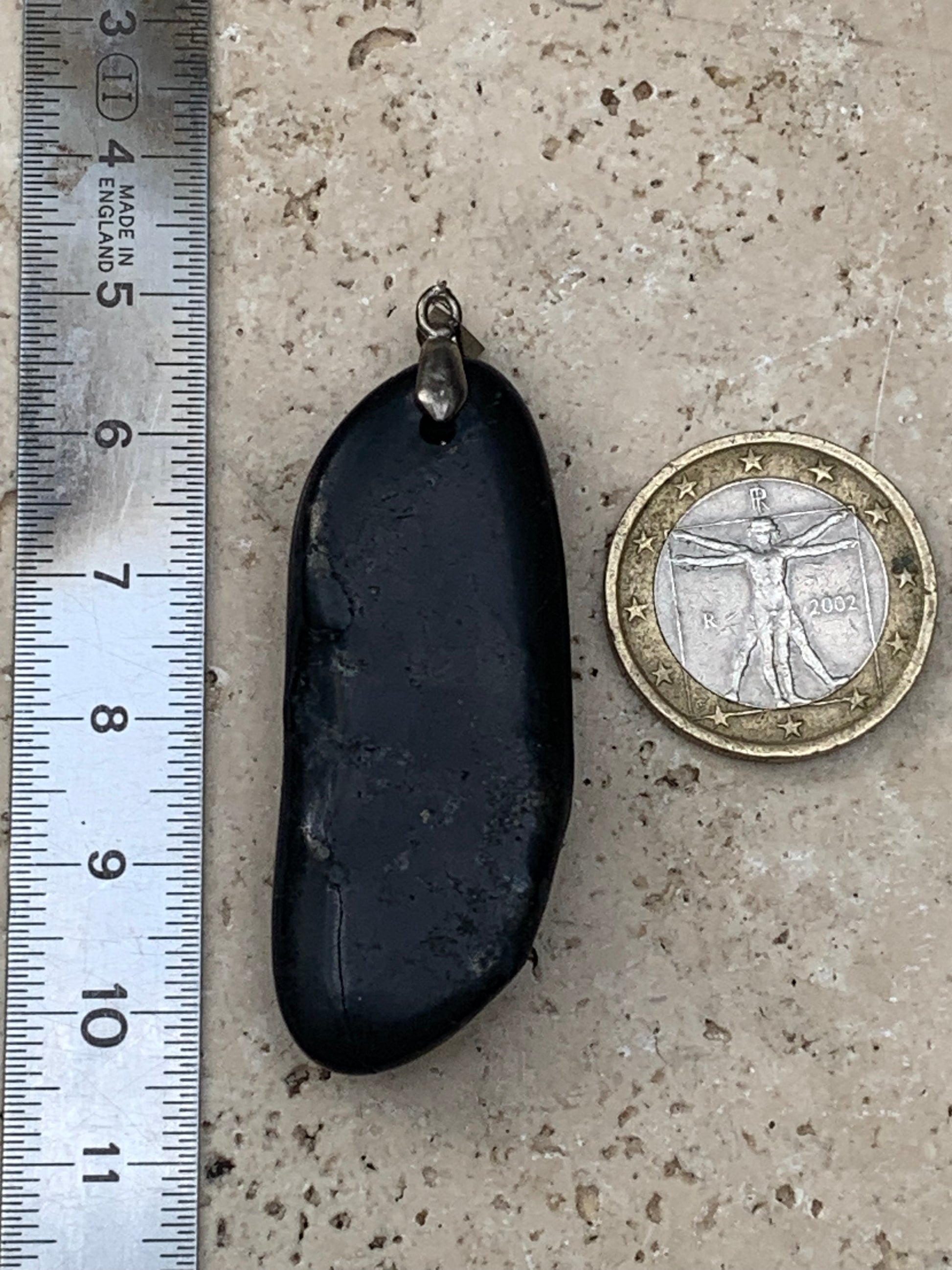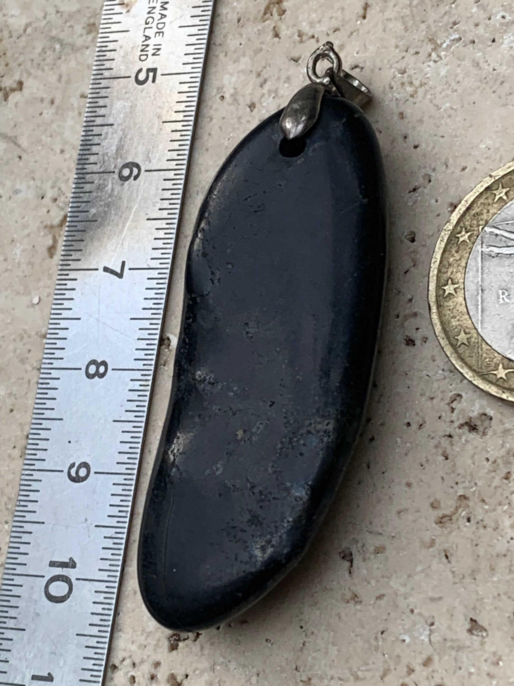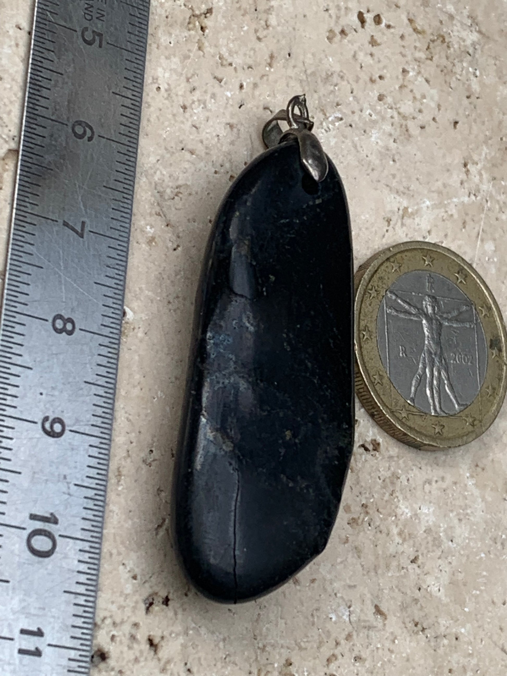 Shungite, pendentif taillé de 58 mm de hauteur x 20 de largeur x 10 d'épaisseur. Vendu avec son cordon réglable de couleur noire offert !