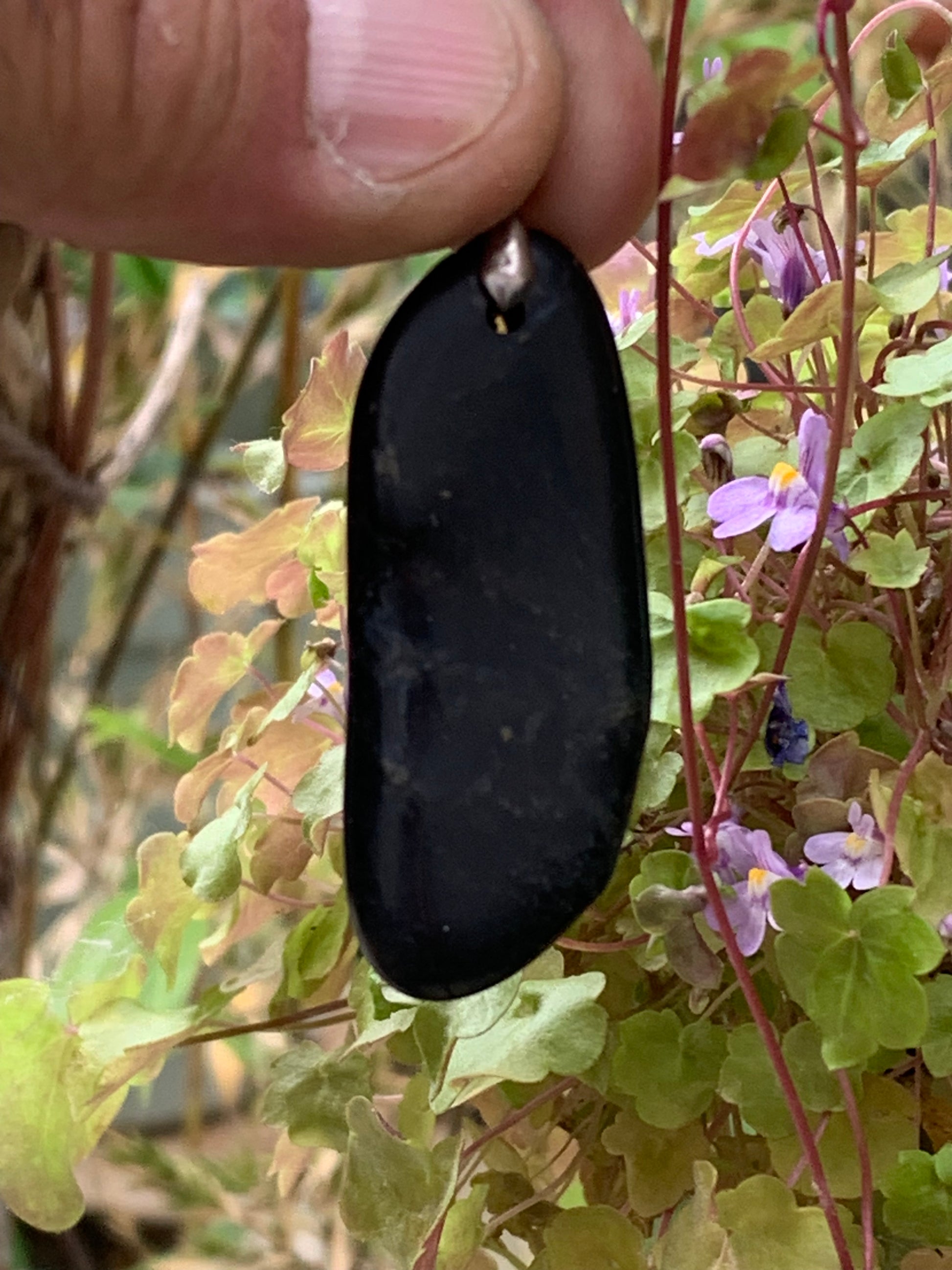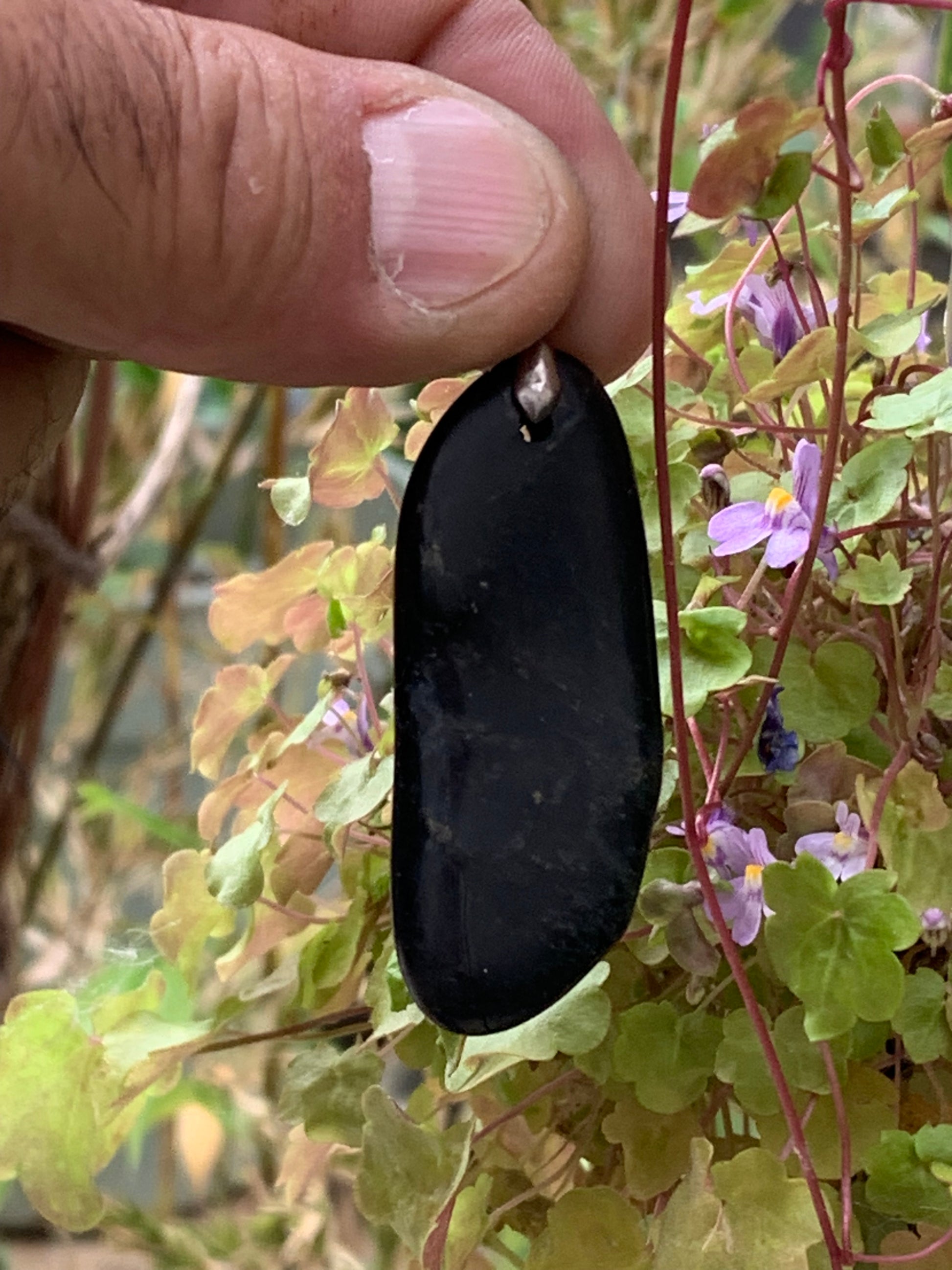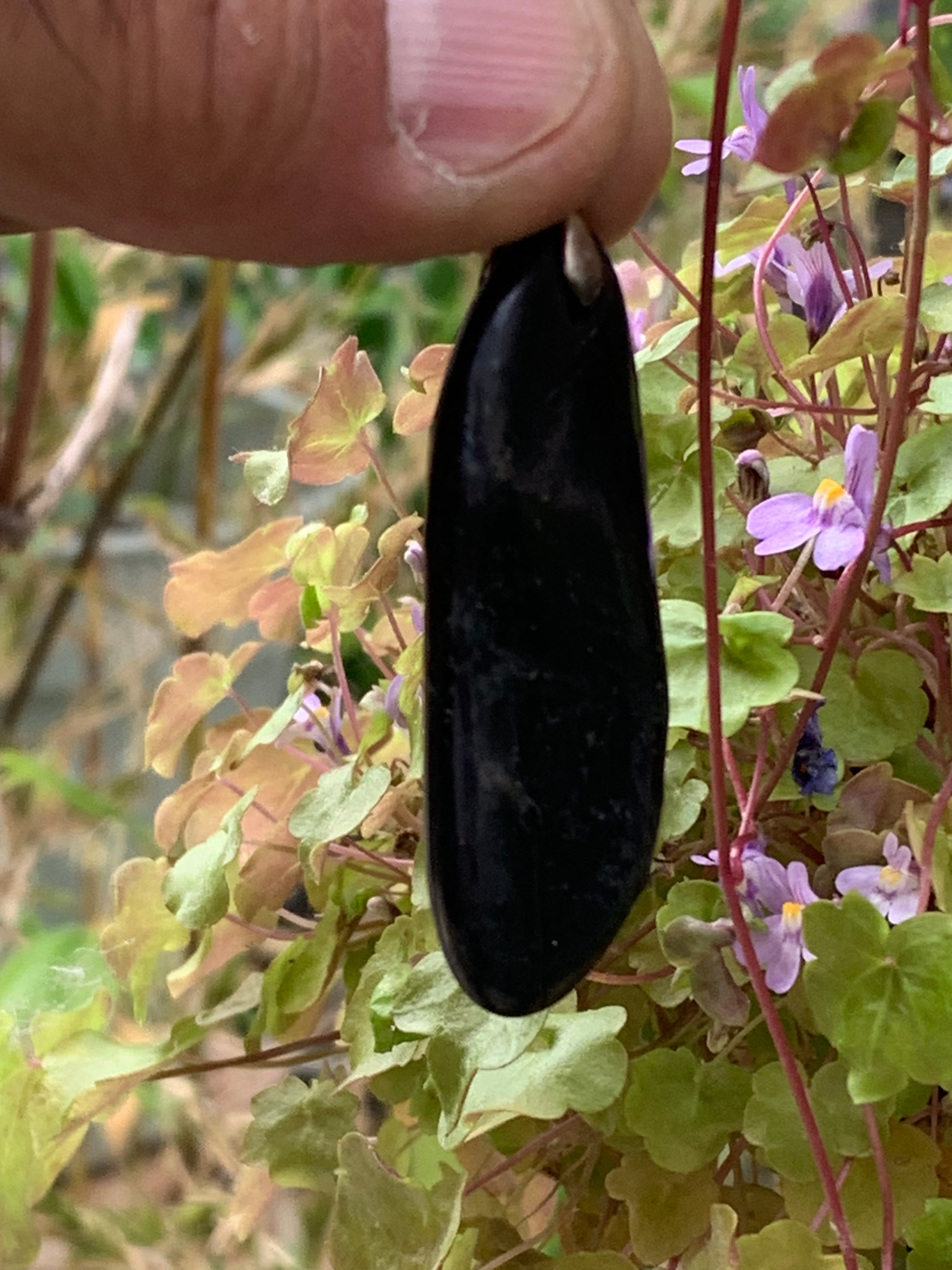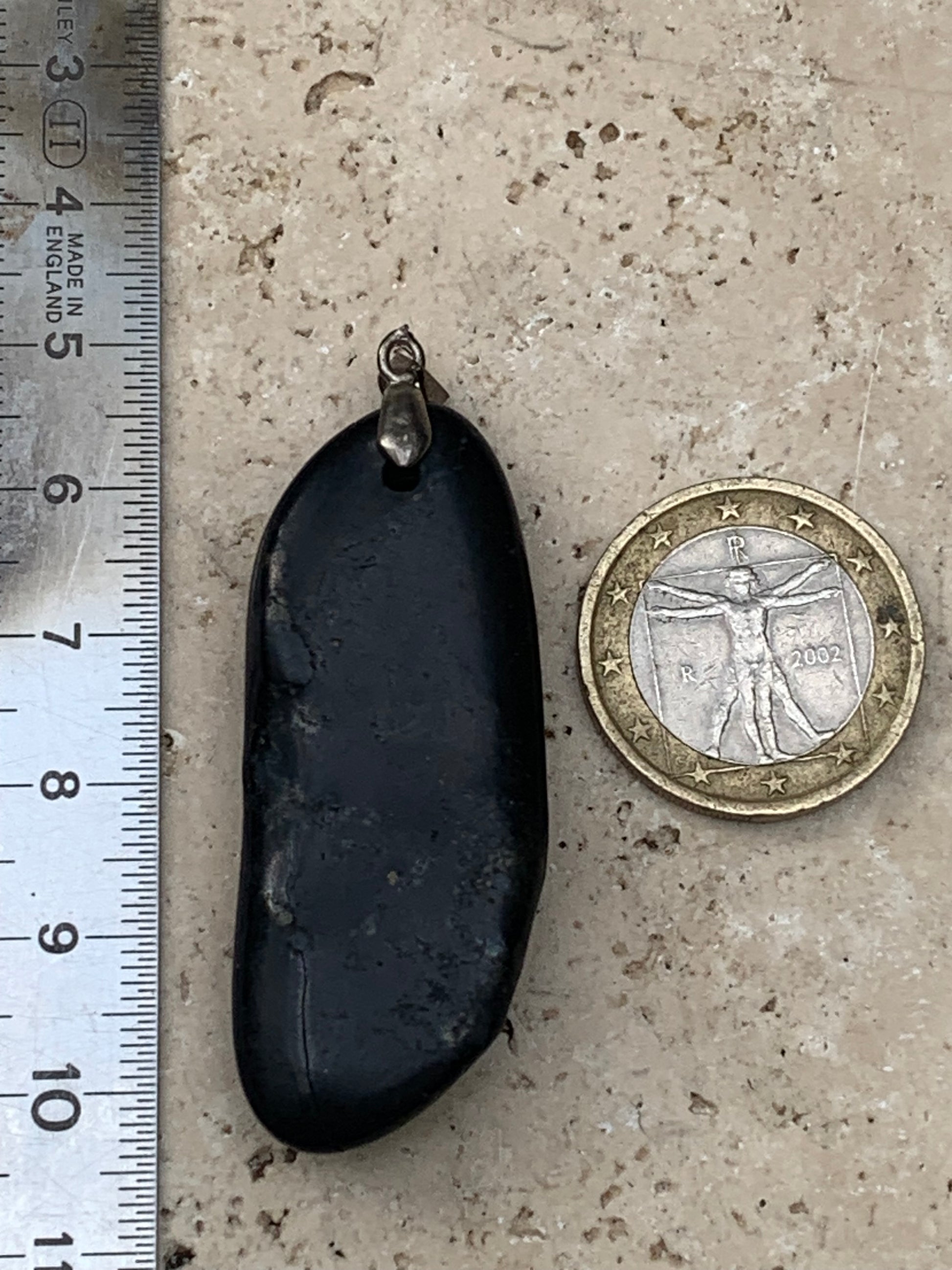 Shungite, pendentif taillé de 58 mm de hauteur x 20 de largeur x 10 d'épaisseur. Vendu avec son cordon réglable de couleur noire offert !