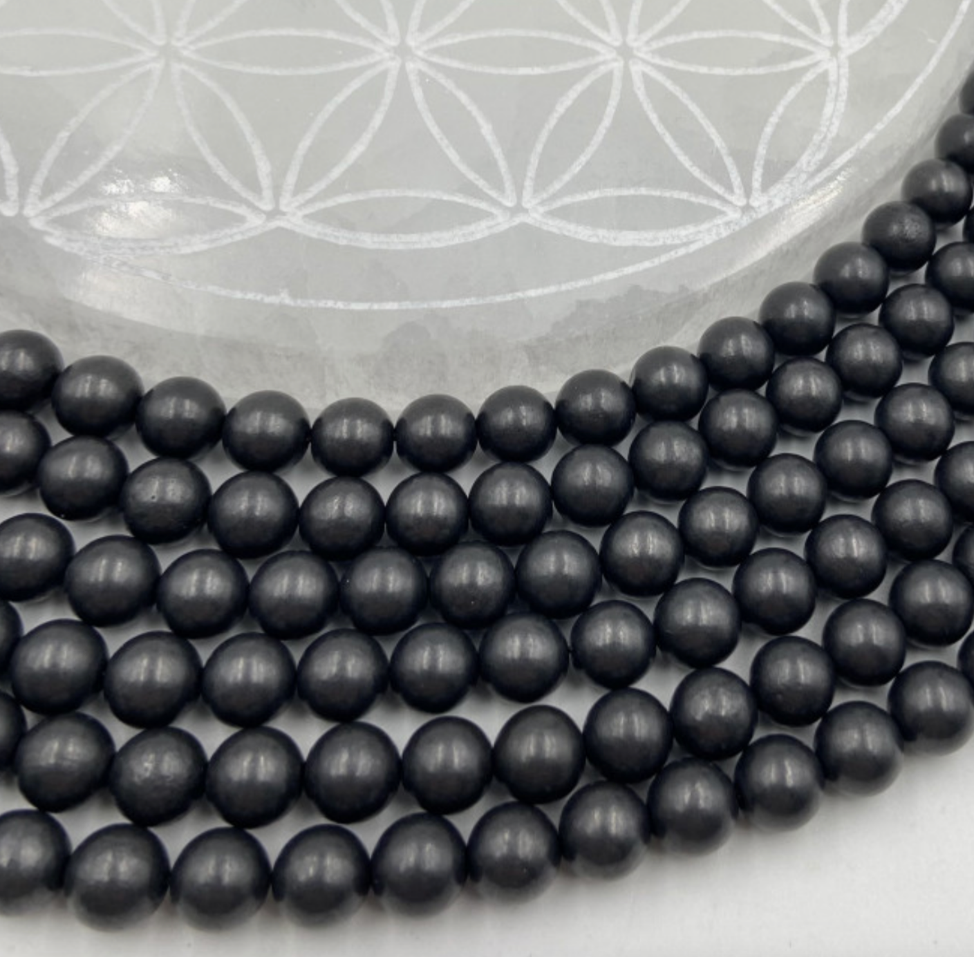 Shungite, perles rondes de 6 ou 8 mm. Vendu en fil de perle 38/39 cm, en bracelet de 17 à 21cm, en collier de 45 ou sautoir de 60cm. Qualité AA à AAA, superbes perles à l'aspect mat et léger à porter !