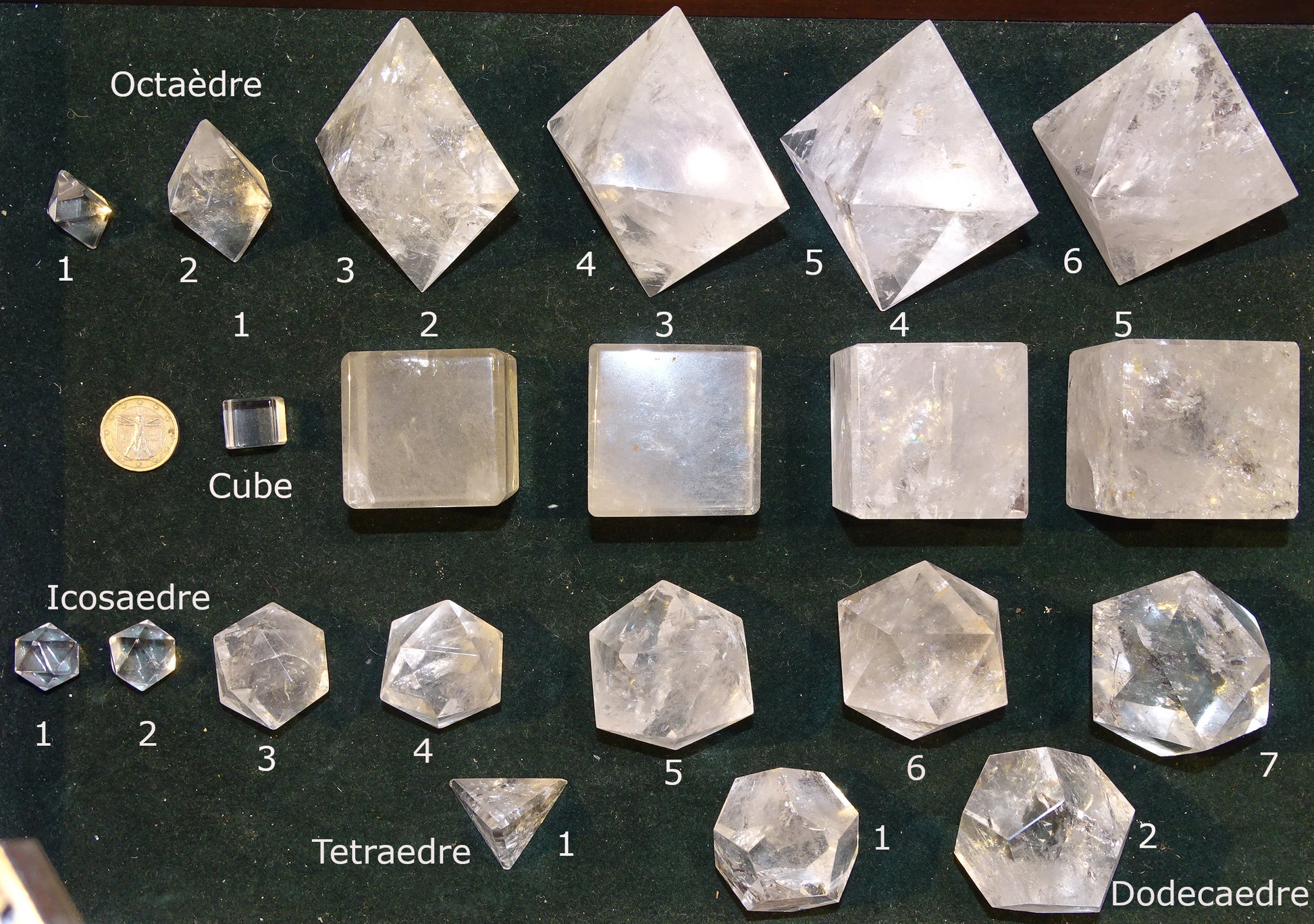 Solids/ Solides de Platon taille S à XL, à l'unité, pièces au choix. Dimensions des pièces : environ 1,5 à 6 cm. Qualité A à AAA. Choisissez votre pièce ! Parfait pour l'étude de la géométrie sacré et ses applications !