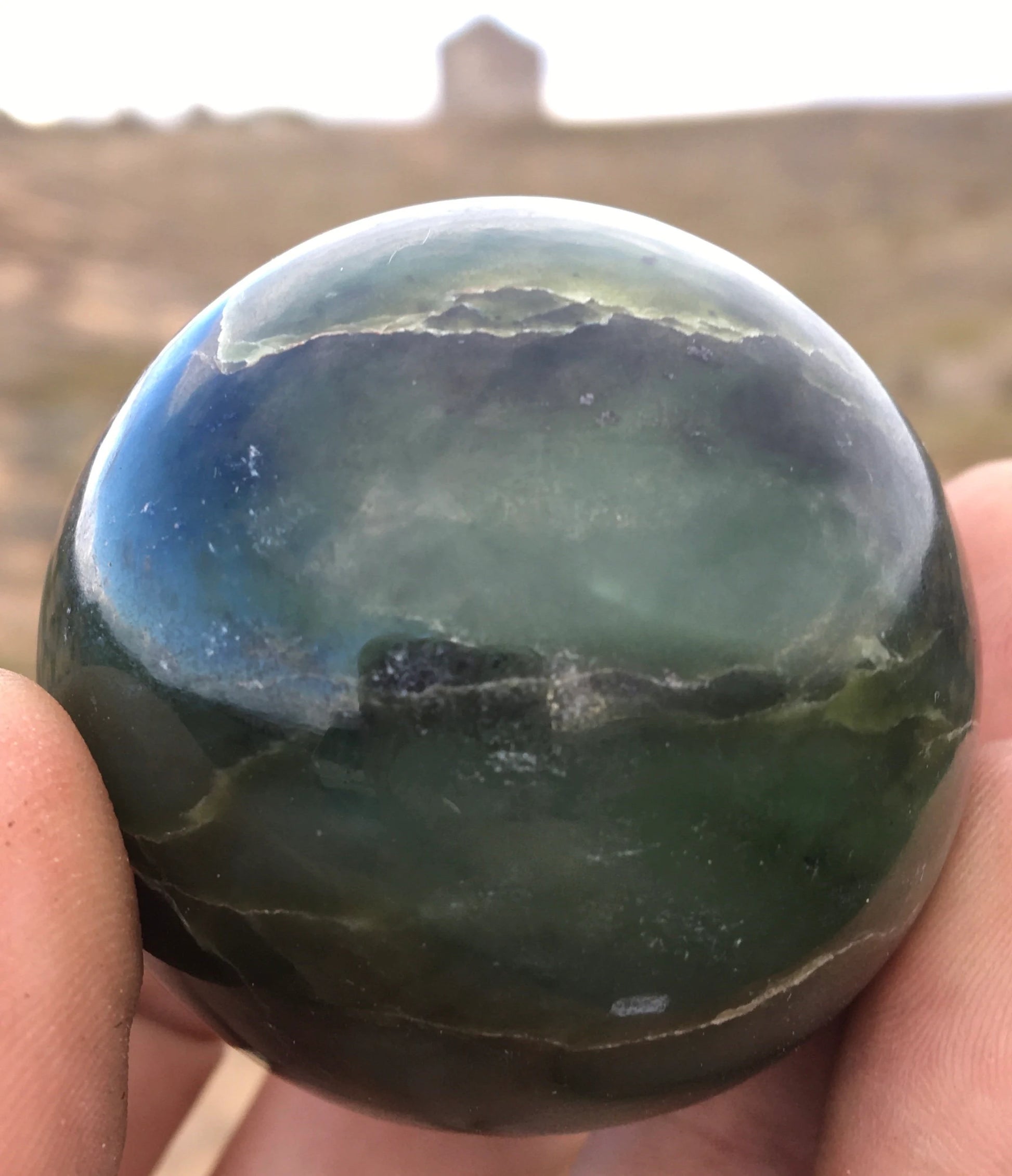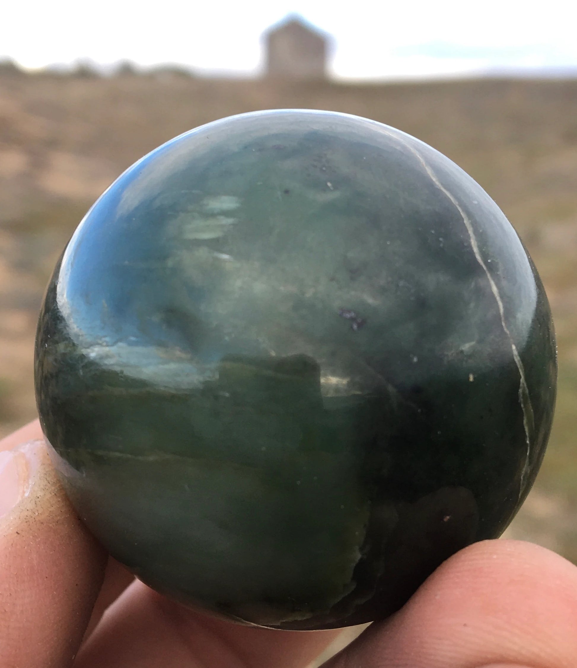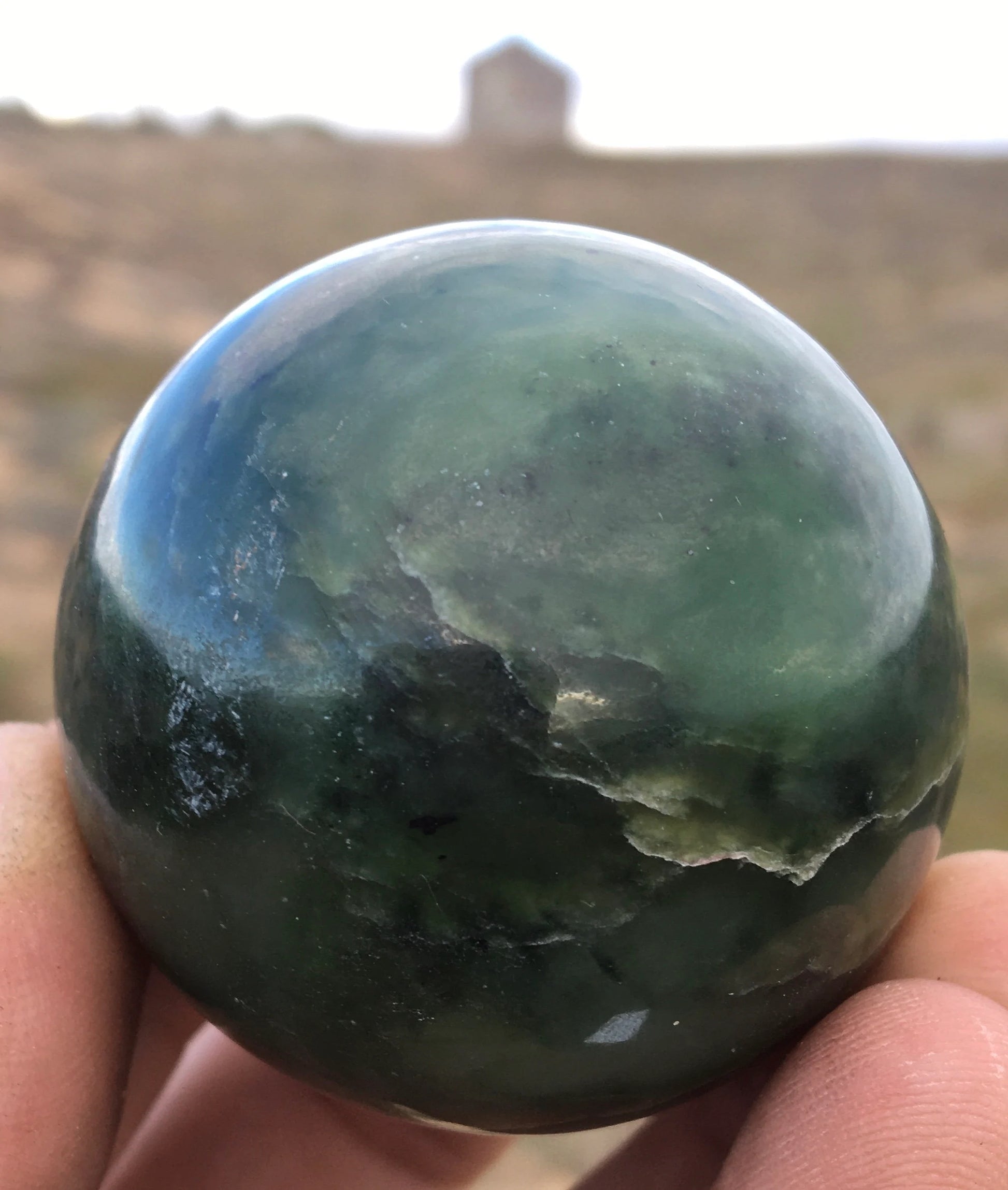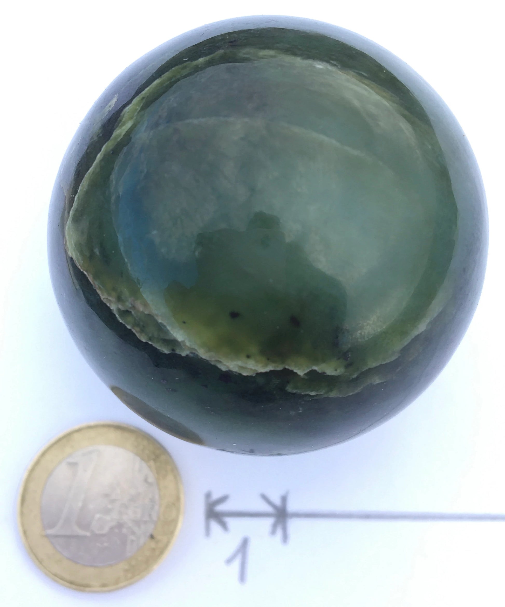 Sphère de Jade néphrite, modèle unique d'environ 50 millimètres, 195 grammes. Superbe pierre, parfait pour la lithothérapie, collection, exposition...!