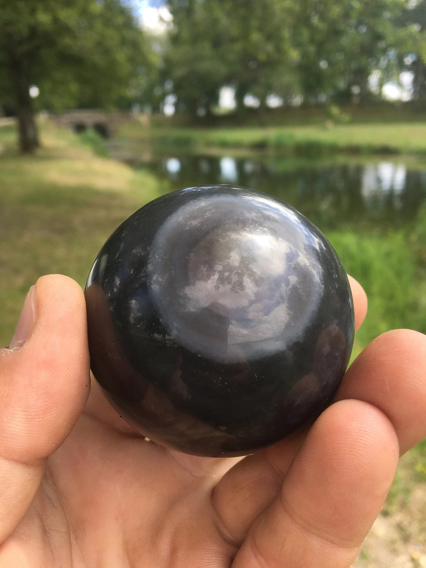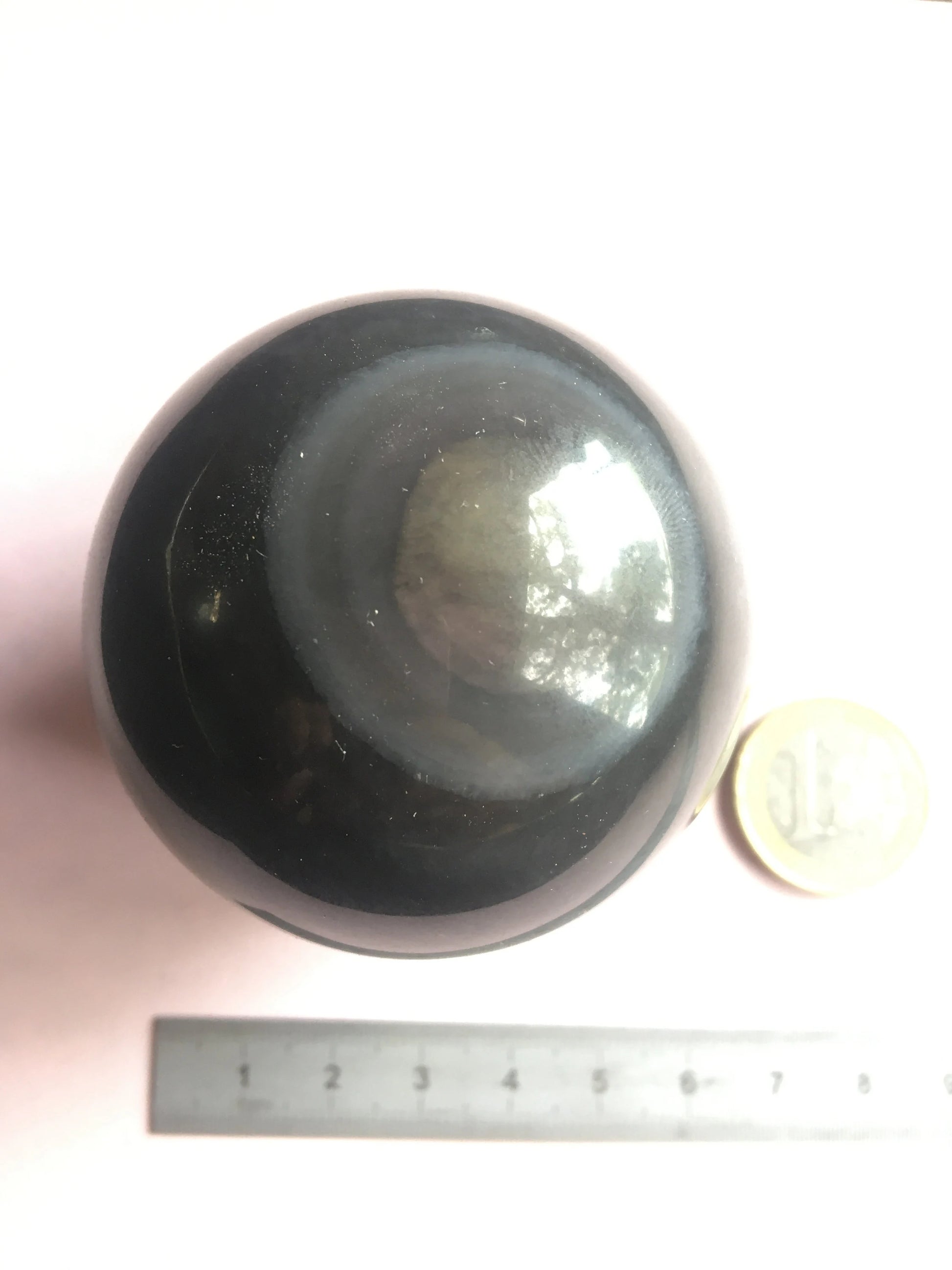 Sphère en Obsidienne 'Oeil Céleste', pièce unique de 48 millimètres - 150 grammes. Parfait pour la lithothérapie, collection, exposition...