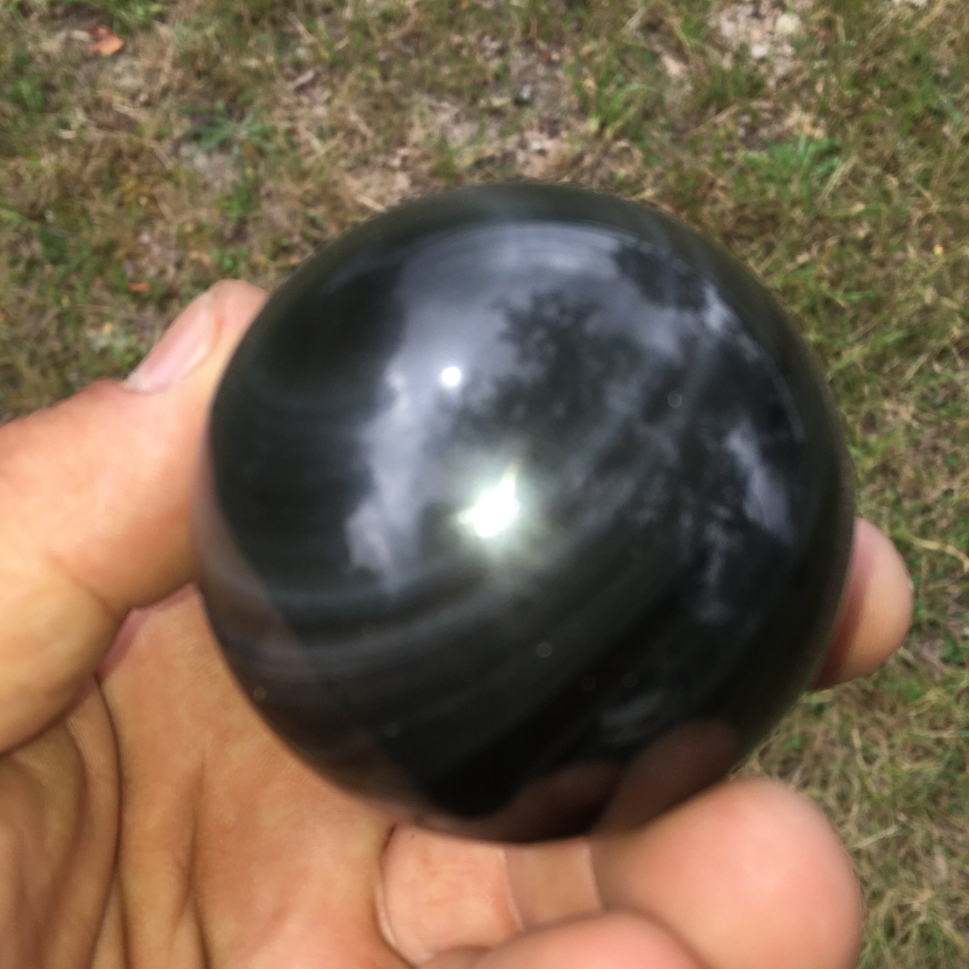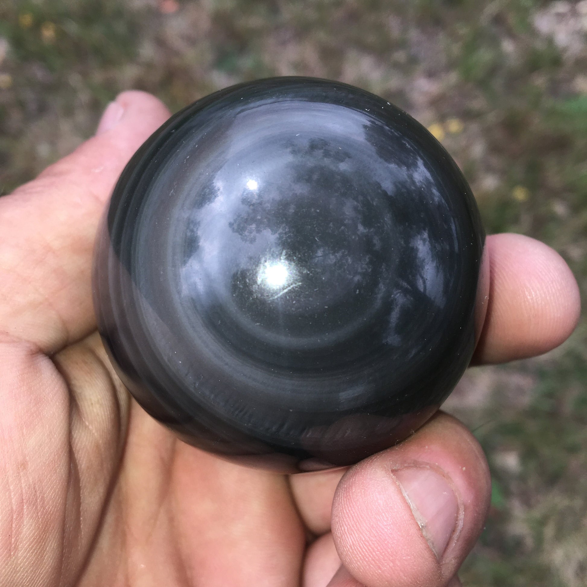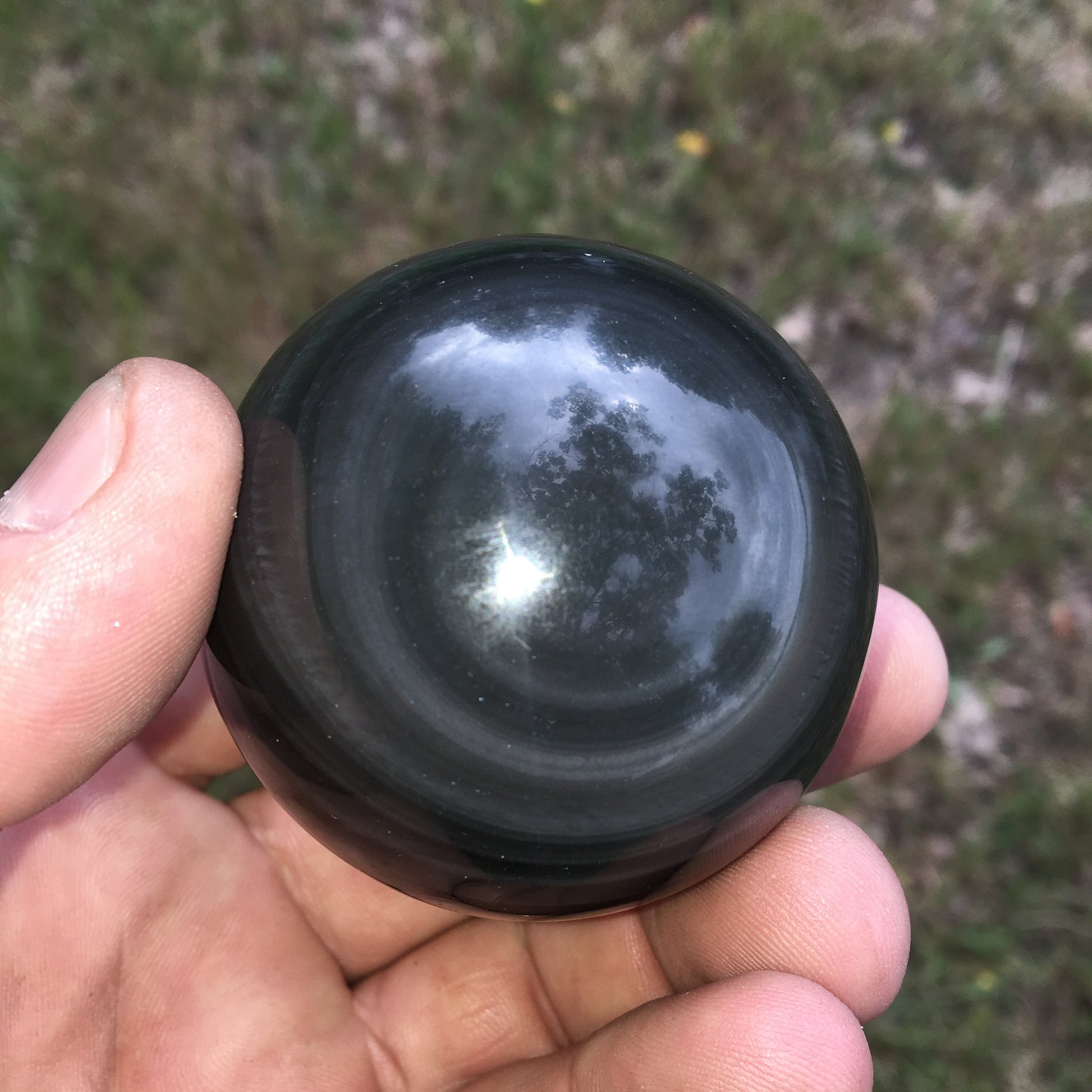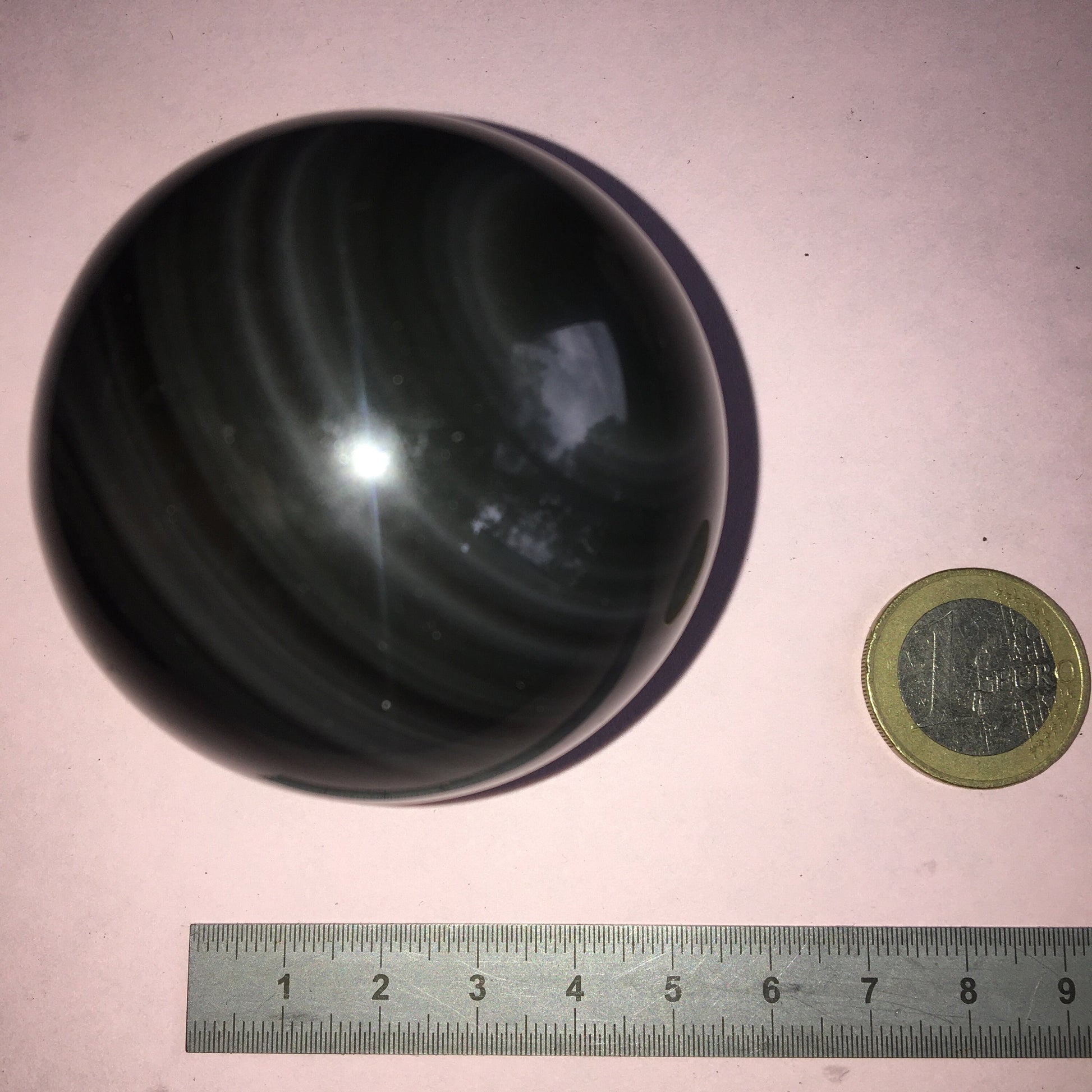 Sphère en Obsidienne 'Oeil Céleste', pièce unique de 65 millimètres - 232 grammes. La pierre des Mayas, hypnotisant et envoûtant ! Parfait pour la lithothérapie, collection, exposition...!