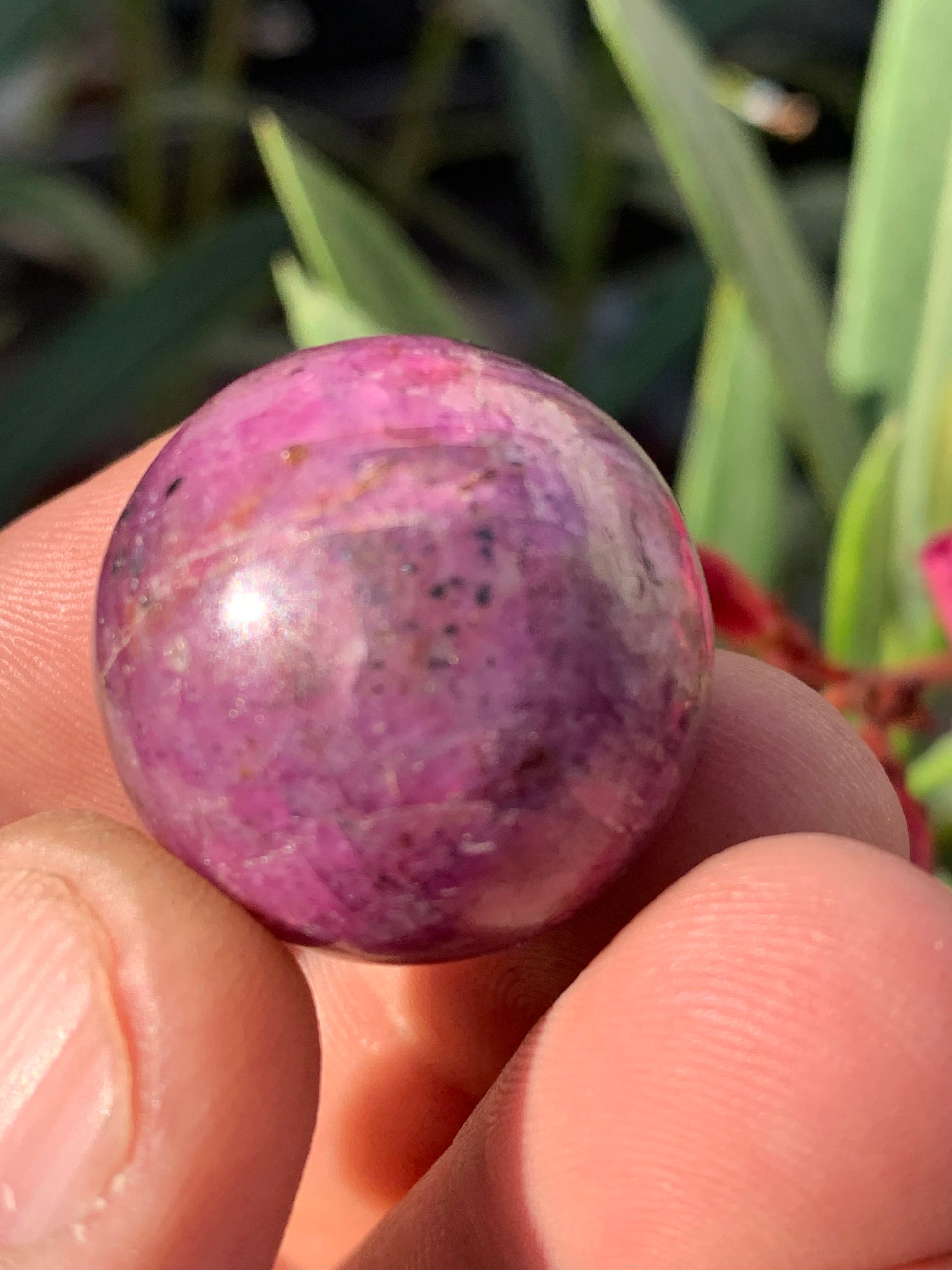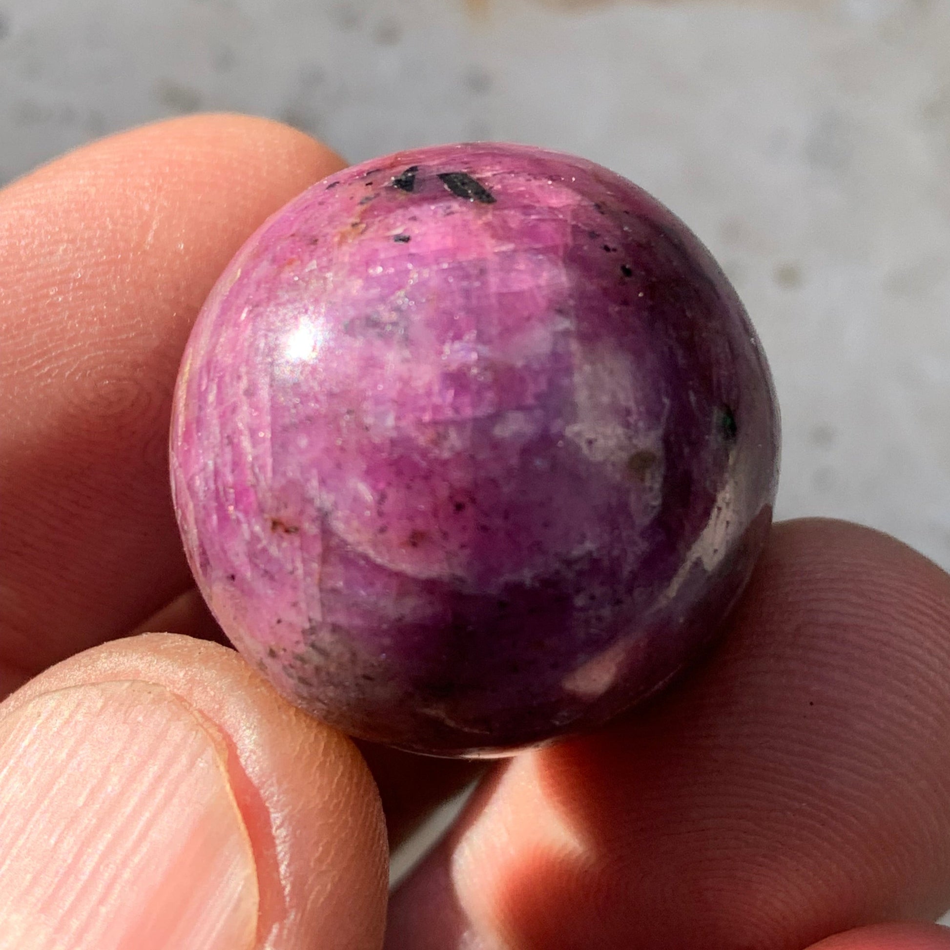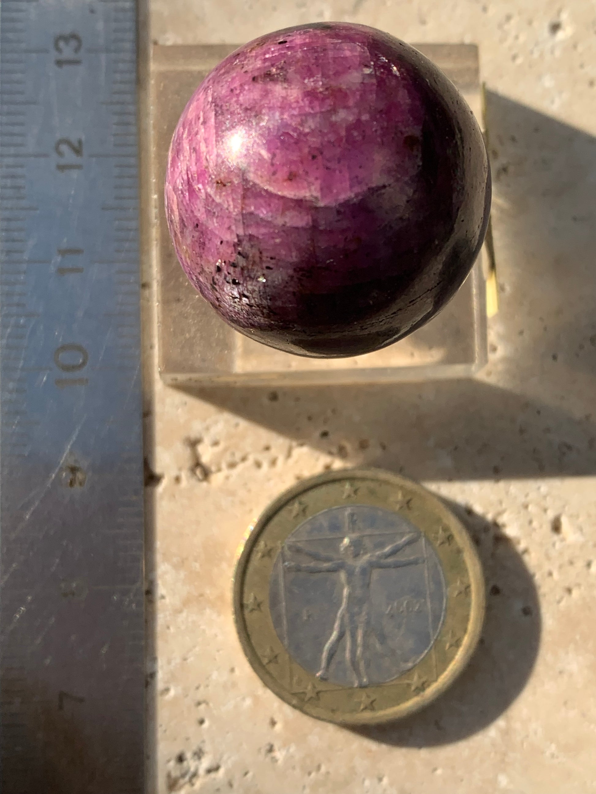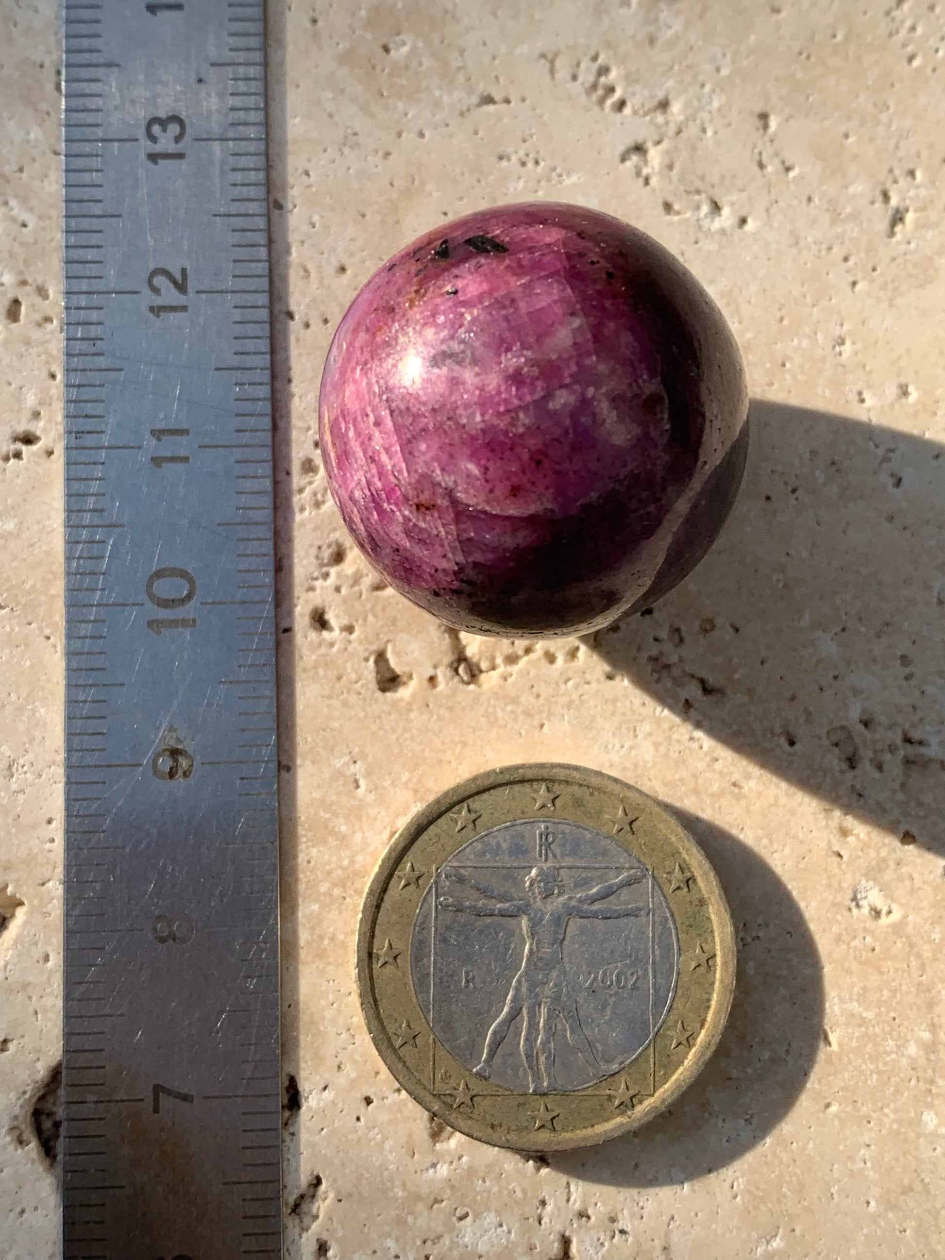 Sphère en rubis de 25 millimètres - 32 grammes, magnifique qualité ! Parfait en lithothérapie, collection, exposition...!