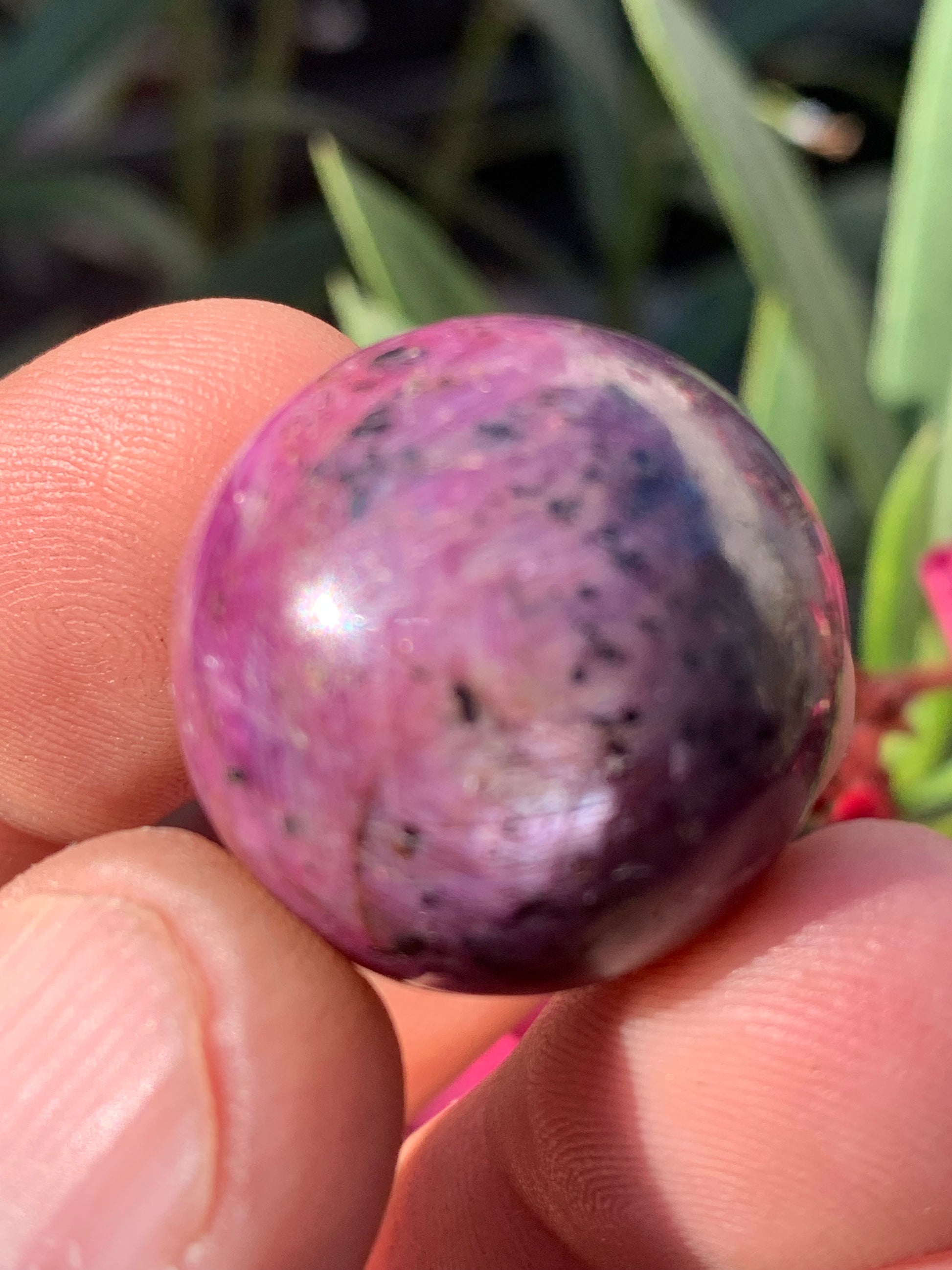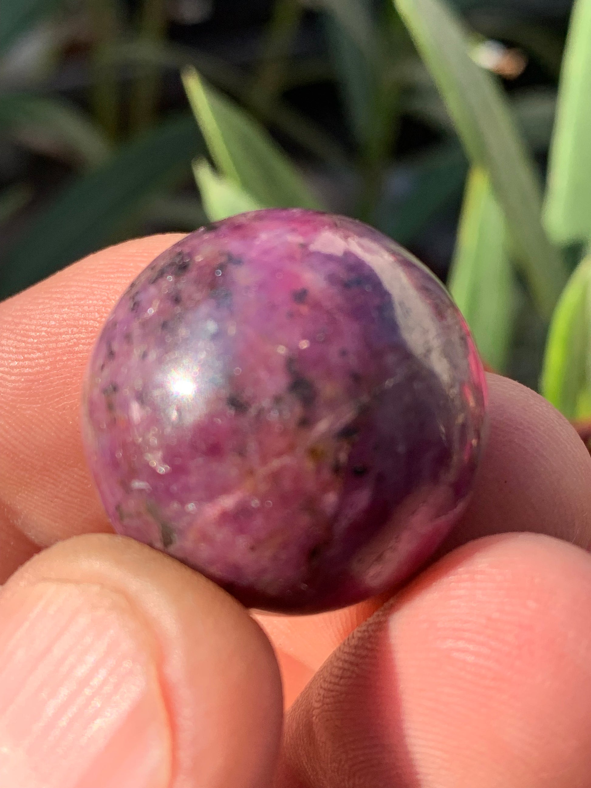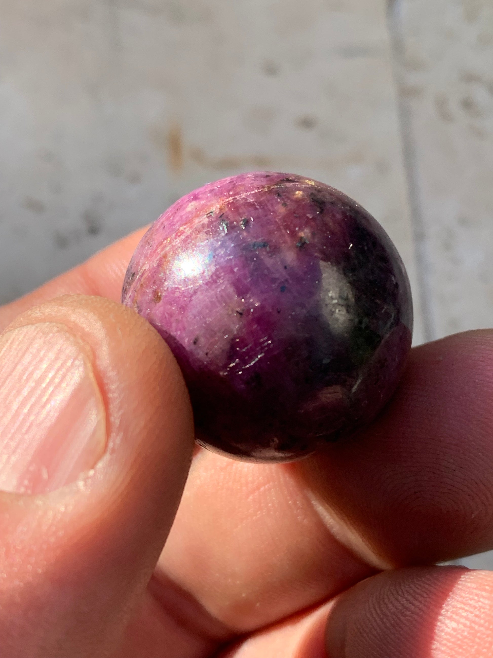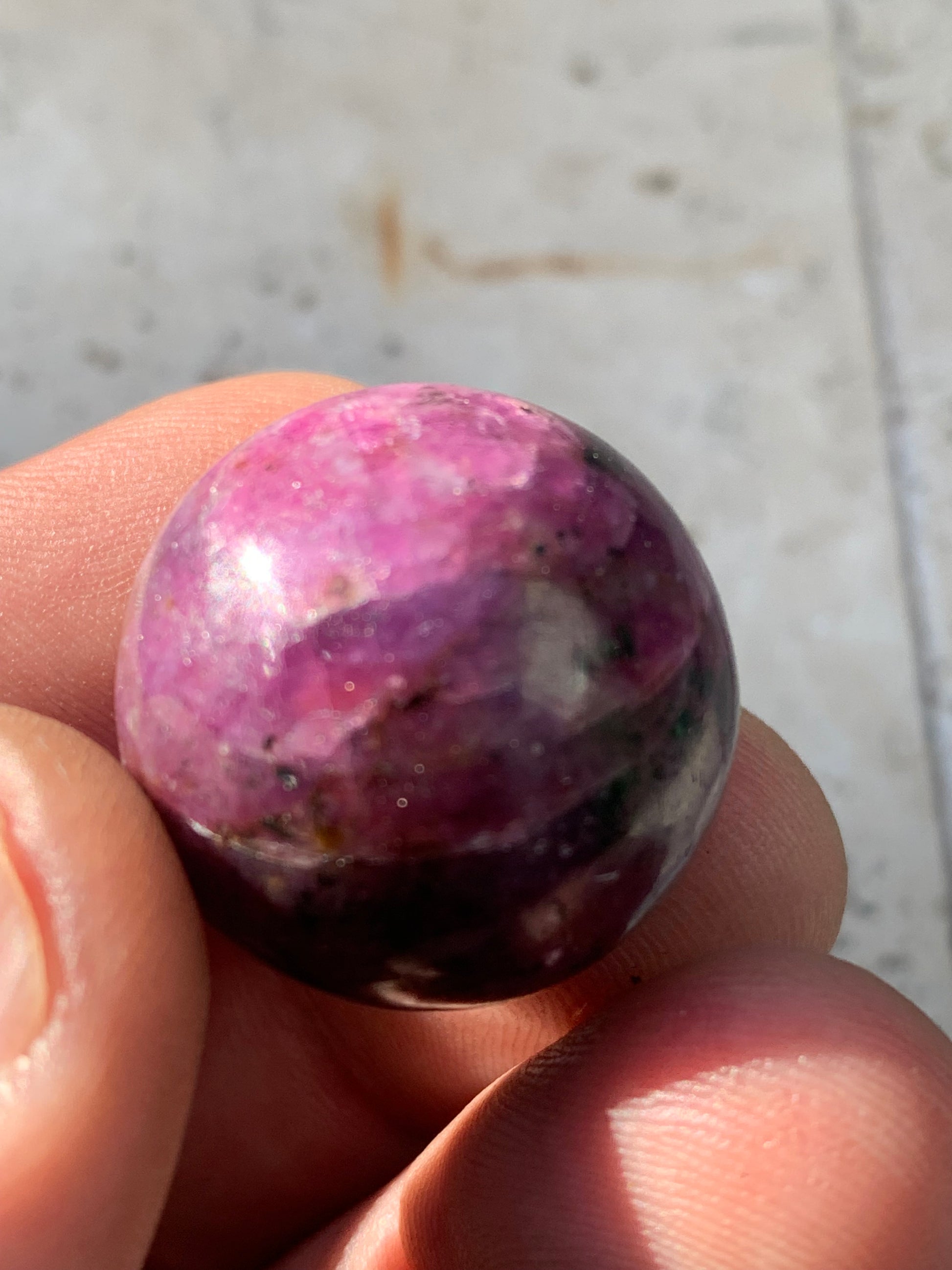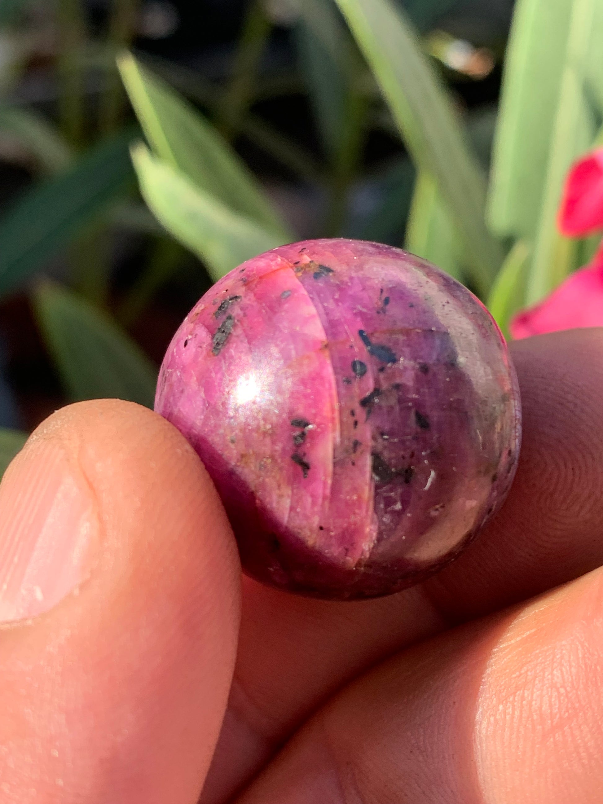 Sphère en rubis de 25 millimètres - 32 grammes, magnifique qualité ! Parfait en lithothérapie, collection, exposition...!