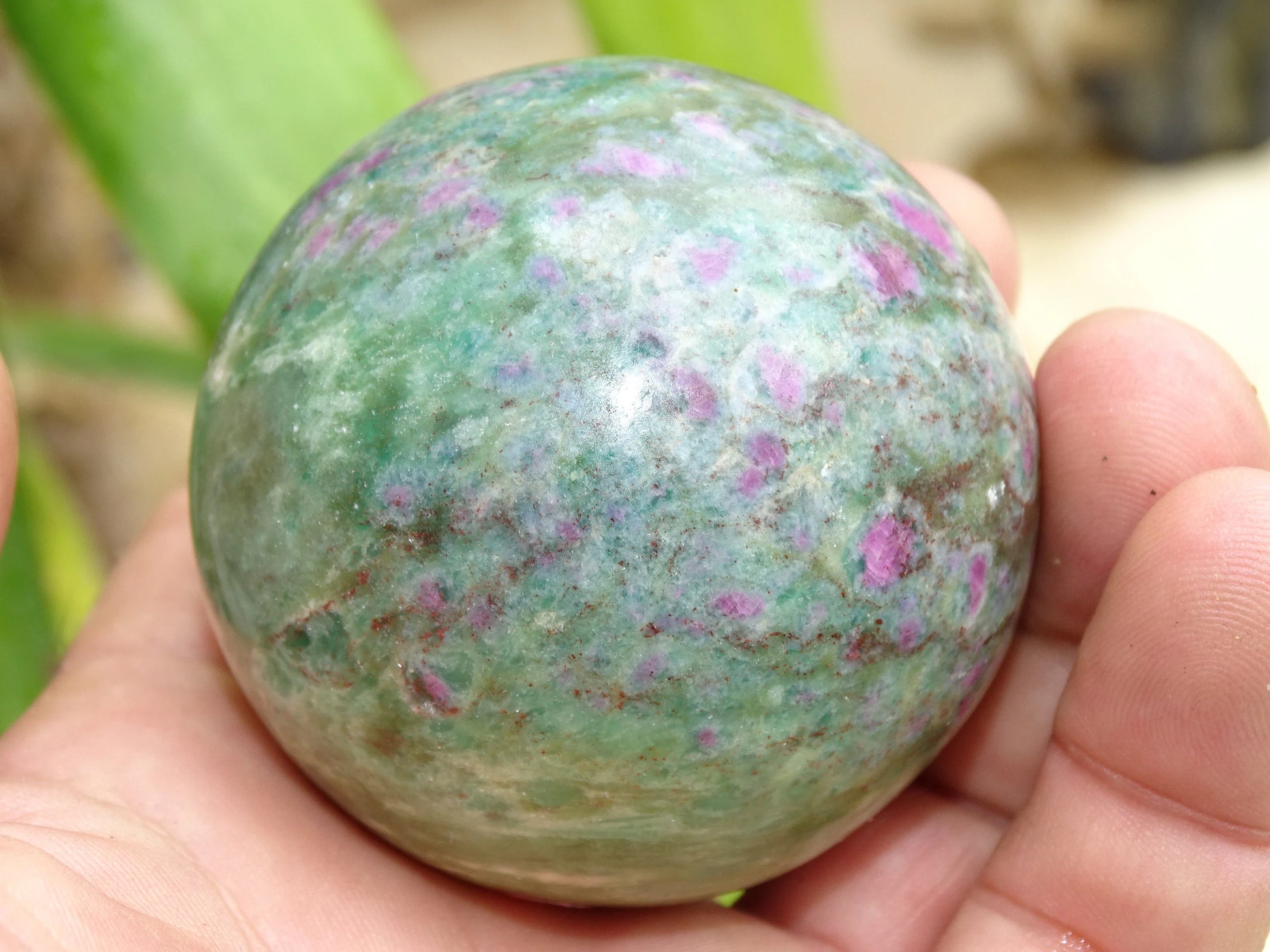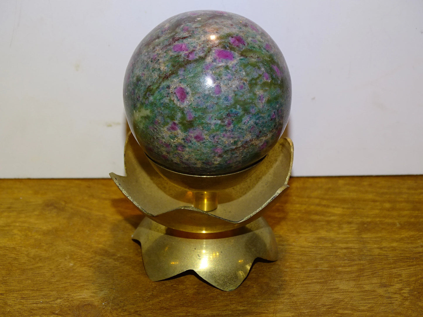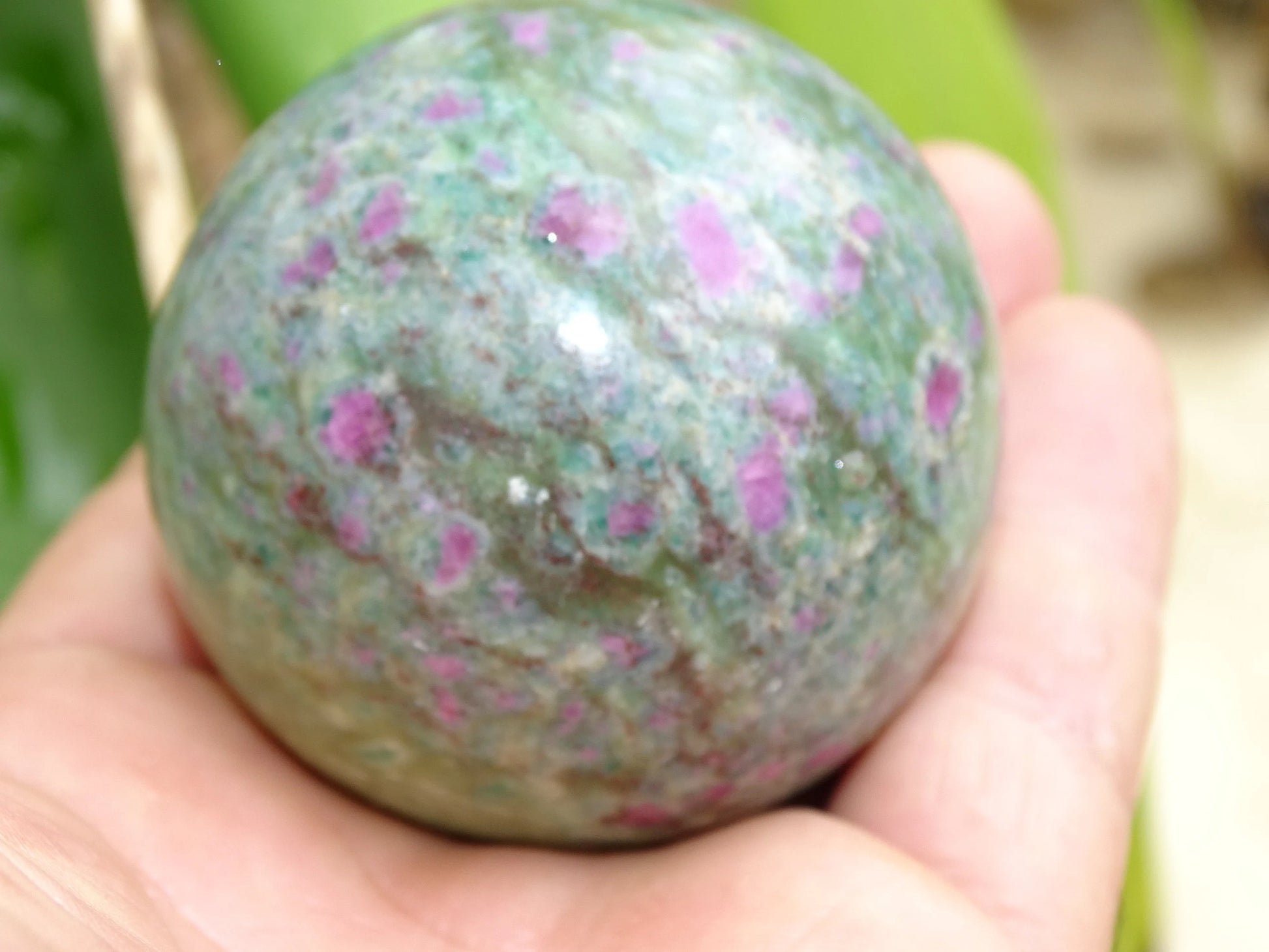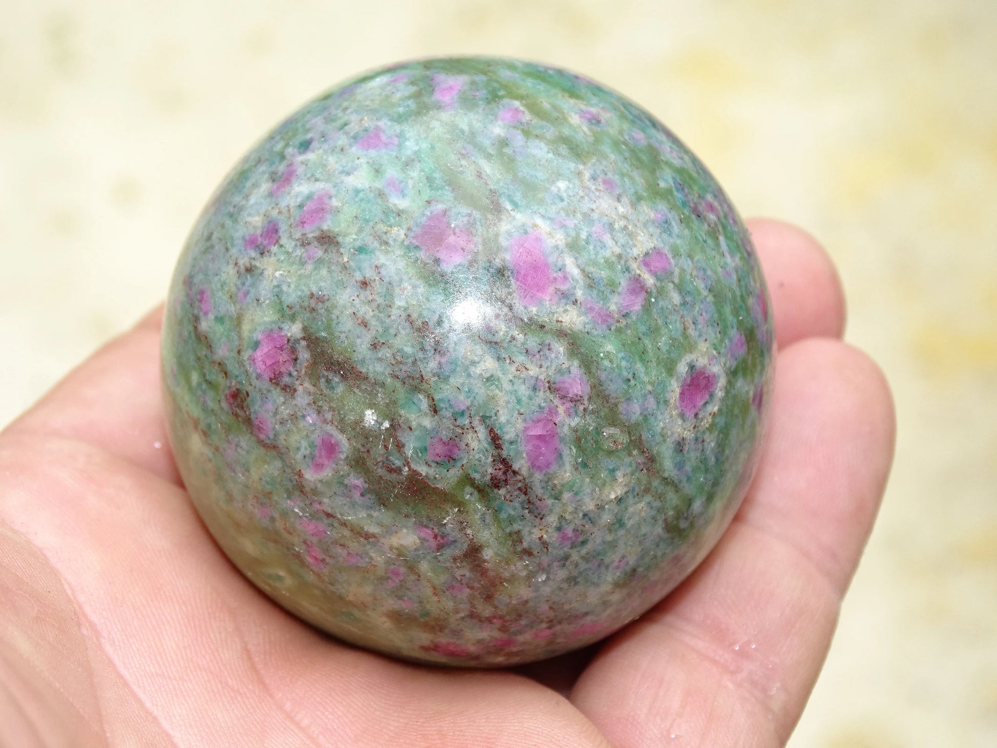 Sphère en rubis fuchsite, pièce unique de 60 millimètres, de 325 grammes. Magnifique qualité ! Parfait pour la lithothérapie, collection, exposition...!