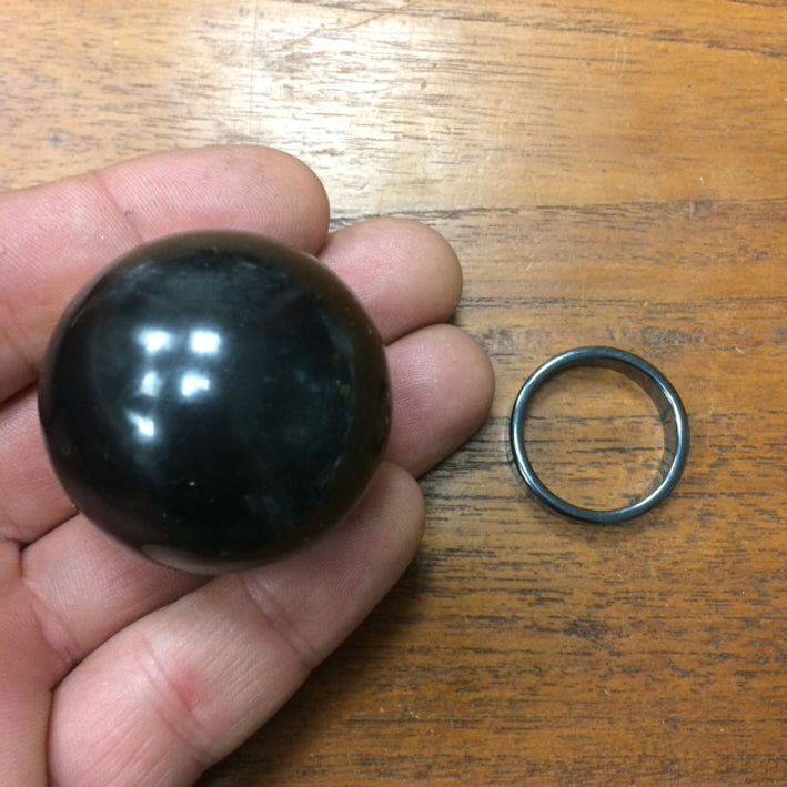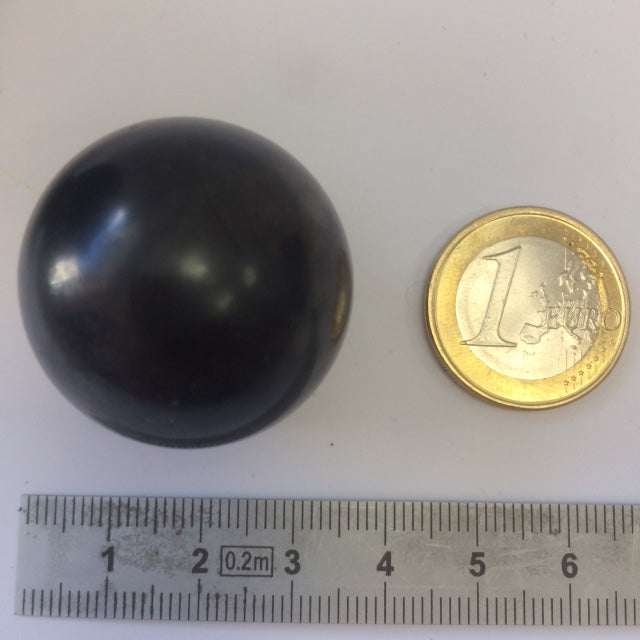 Sphère en Shungite, de 30, 40 ou 50 millimètres, de 60 à 120 grammes. Magnifique qualité ! Parfait pour la lithothérapie, collection, exposition...!