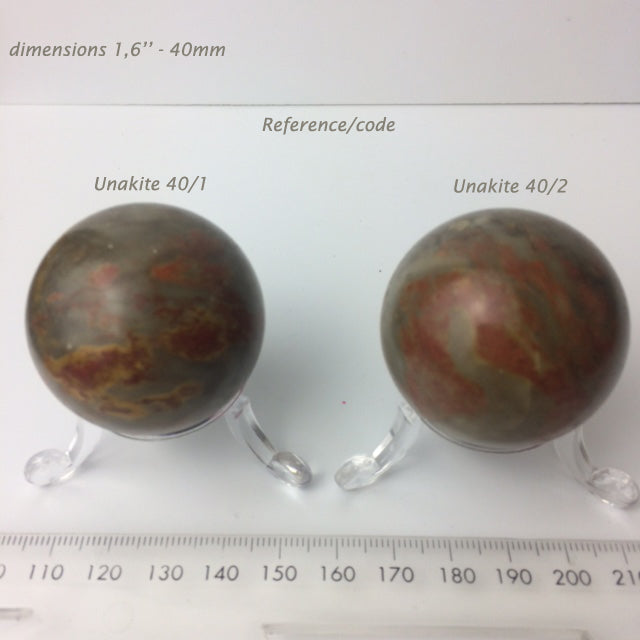 Sphères en Jaspe Unakite, sélection de 2 pièces d'environ 40 millimètres, +/- 65 grammes. Parfait pour la lithothérapie, collection, exposition...!