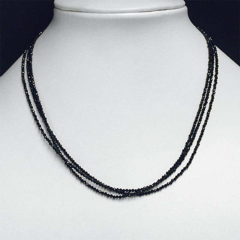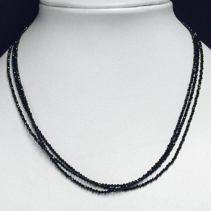 Spinelle, collier 3 rangs en perles facettées de 2/3 millimètres. Vendu en longueur de 46 centimètres. Finition en Argent 0.925 ou plaqué Or. Qualité AA à AAA !