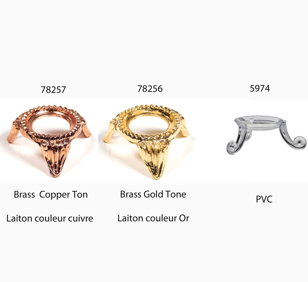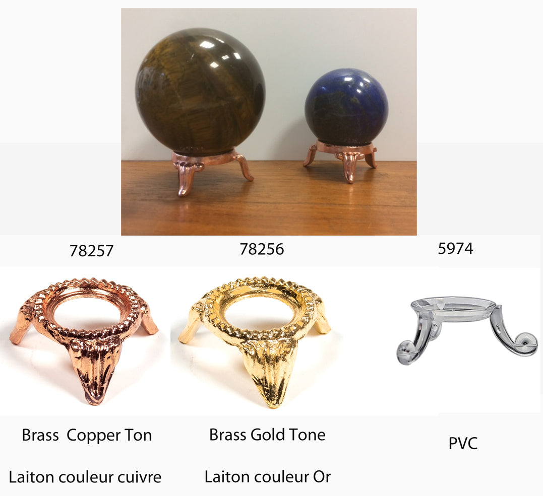 Supports/ Stands pour stabiliser les sphère en pierres... 3 finitions : cuivre, laiton ou pvc. Ø 5 x 2 centimètres !