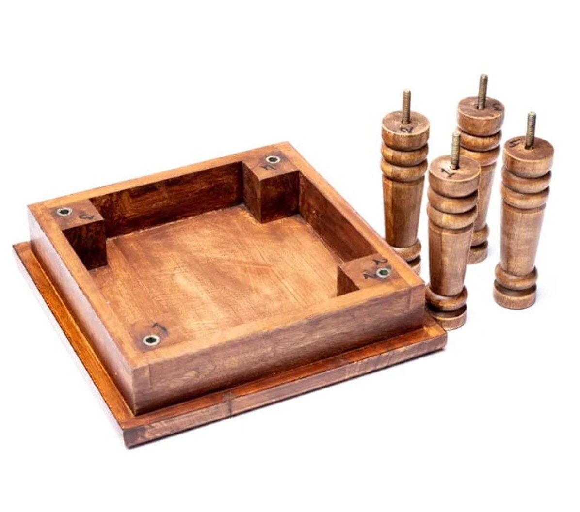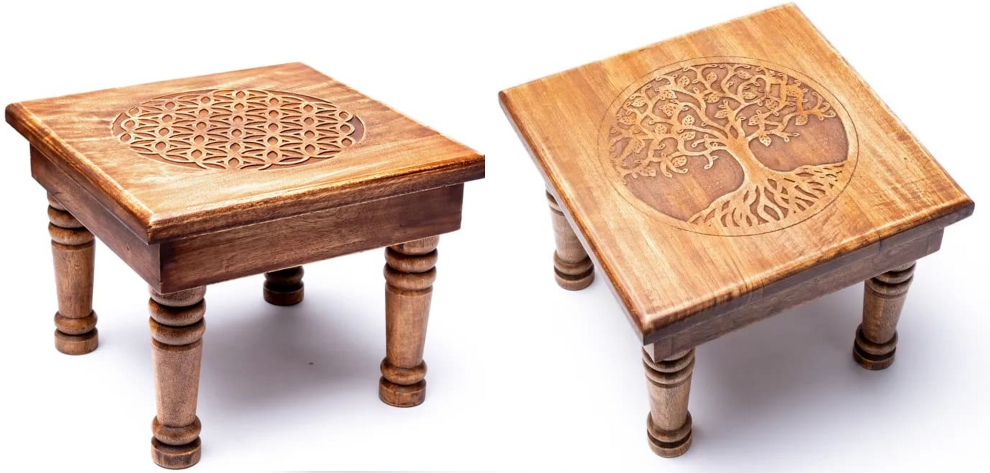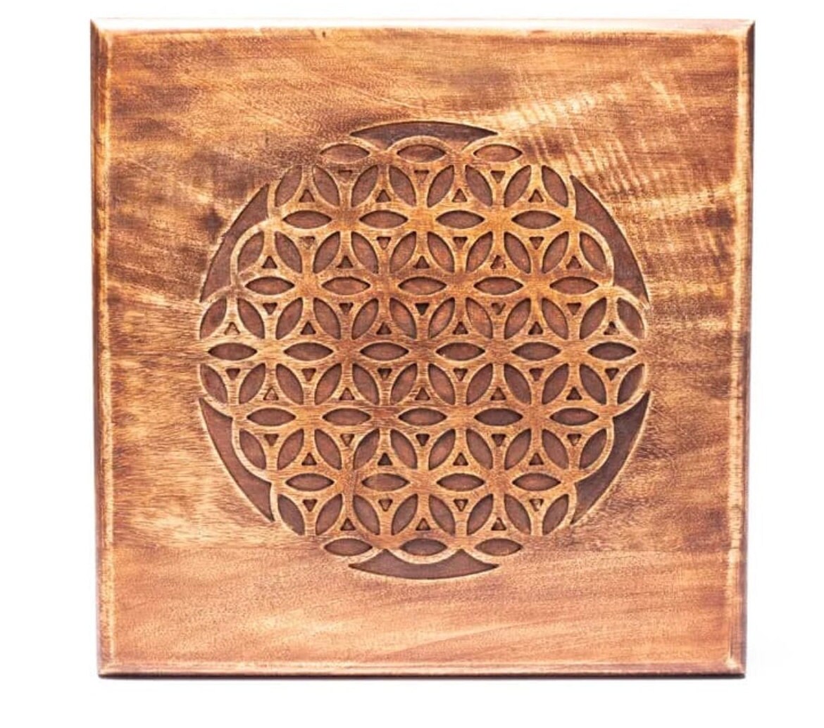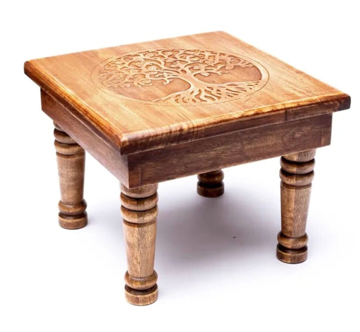 Table d'appoint/ Autel, en bois d'acacia avec motifs 'Fleur ou Arbre de vie', 30x30x23 cm/ 2250gr. - Haute qualité des garvures de symboles !