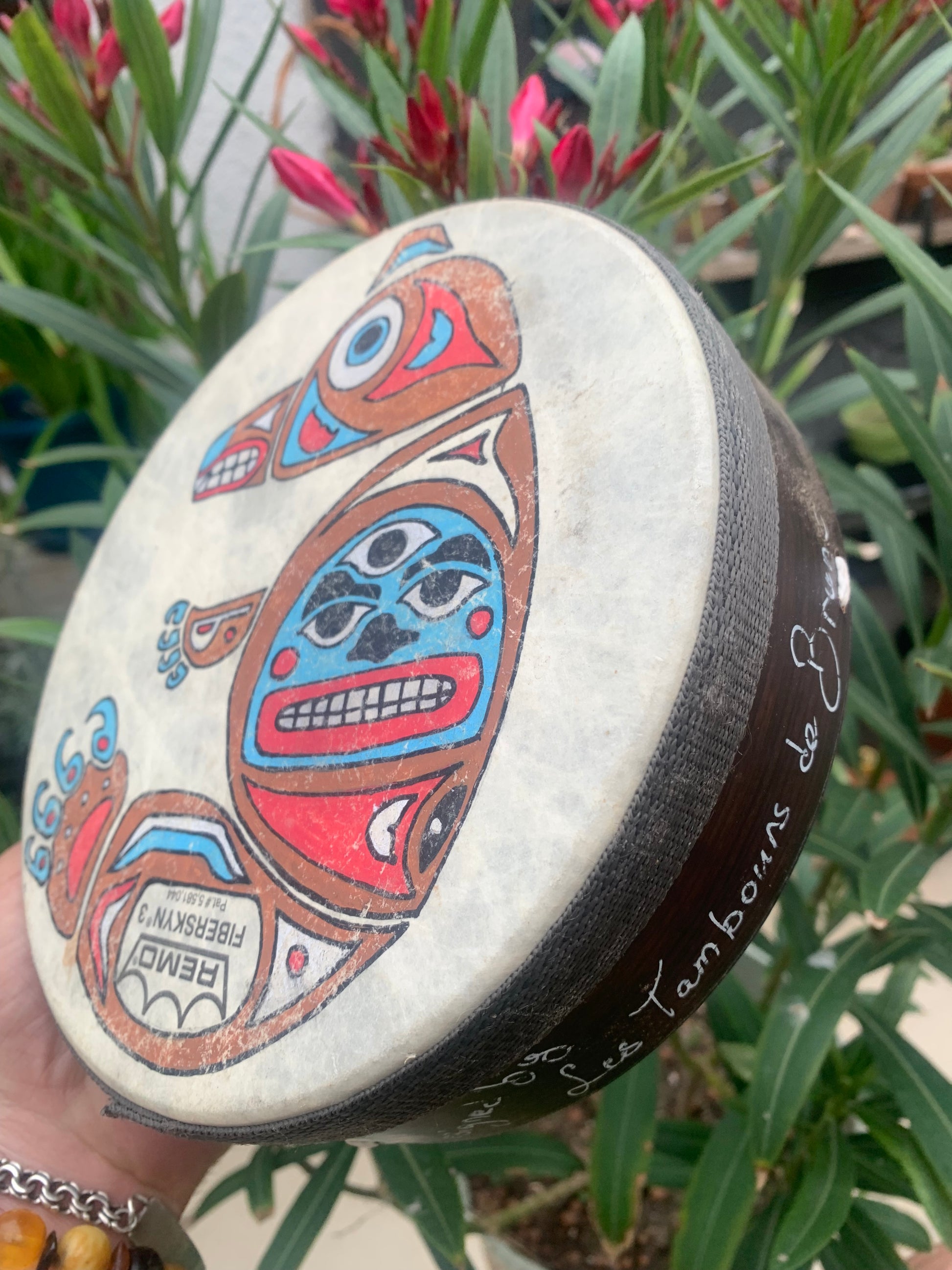 Petite histoire / particularité | Les tambours chamaniques décorés sont considérés comme sacrés. Le dessin renforce l’intention du tambour, sert de guide spirituel et favorise la connexion avec les esprits, les animaux totems et les forces de la nature. Chaque tambour est unique, fabriqué à la main pour refléter l’énergie et la vision de son créateur. |