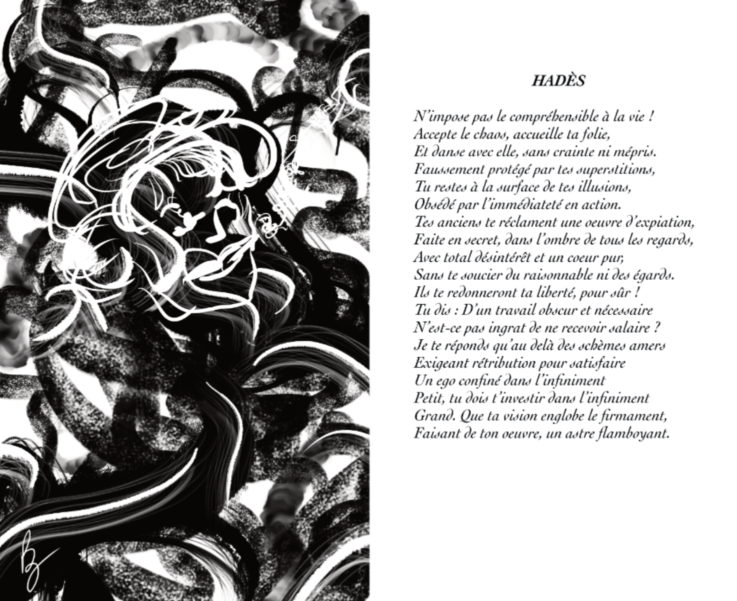 « L’Oracle du Livre des Tables », reprendra les mêmes illustrations que le livre, en les accompagnant de poèmes inspirés des textes de cette œuvre.