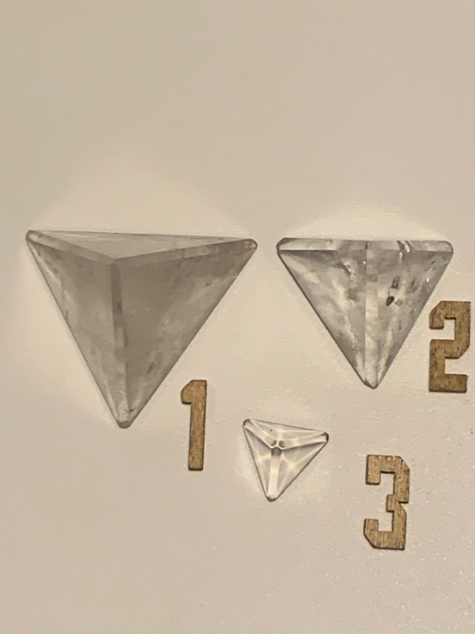💎 Type/ Nom : Tétraèdre en cristal de roche (quartz) faisant partit des Solides de Platon - Parfait pour l'étude de la géométrie sacré