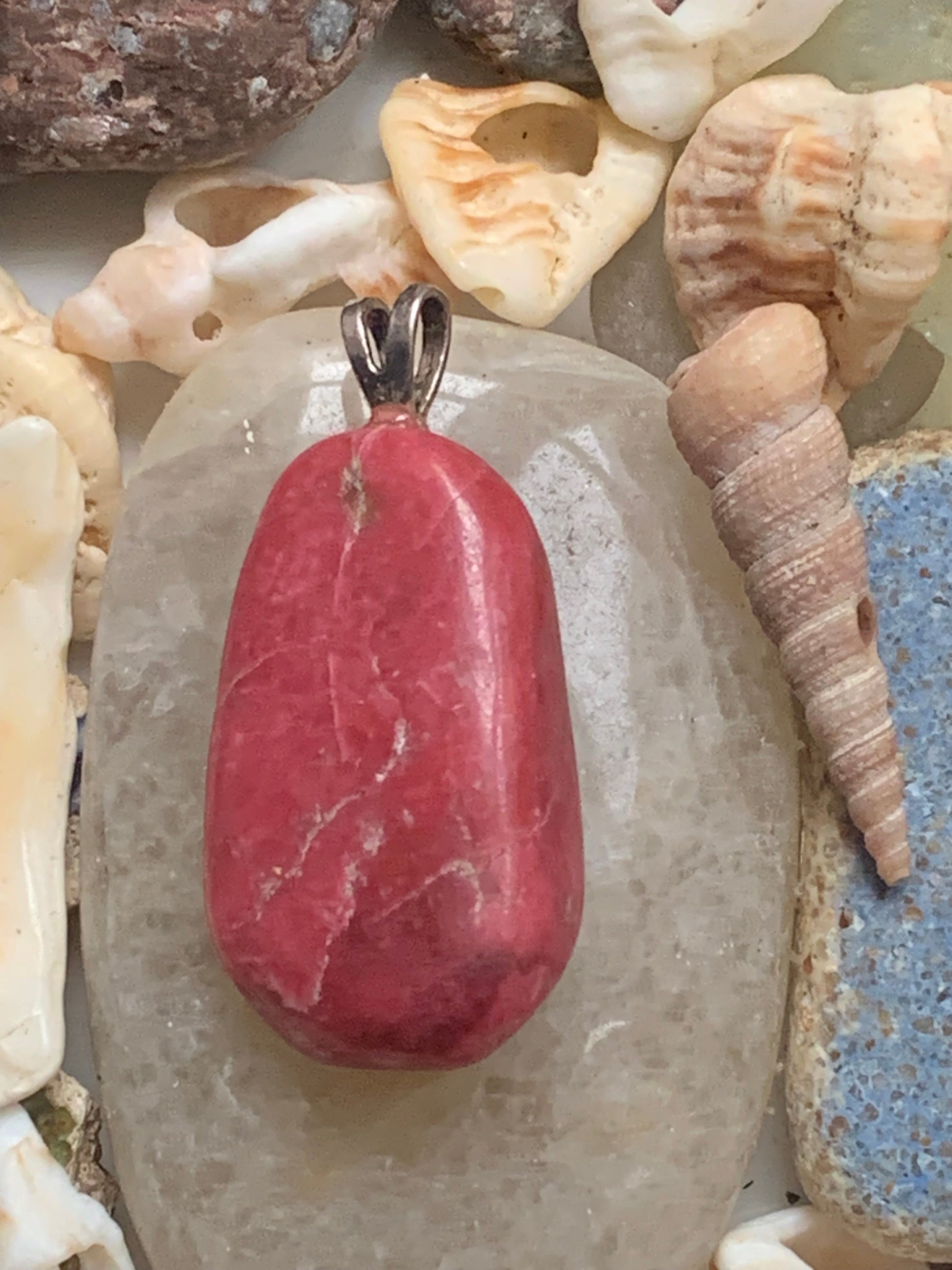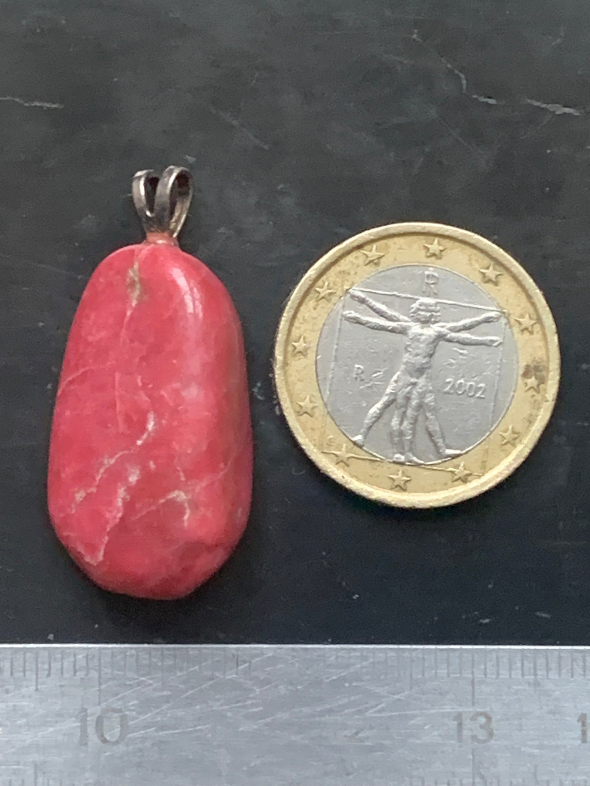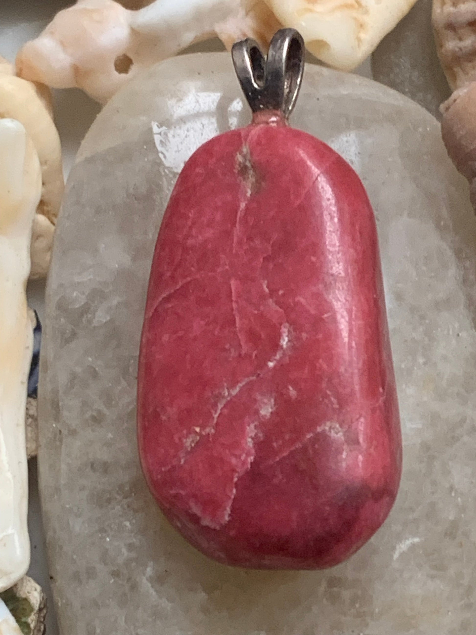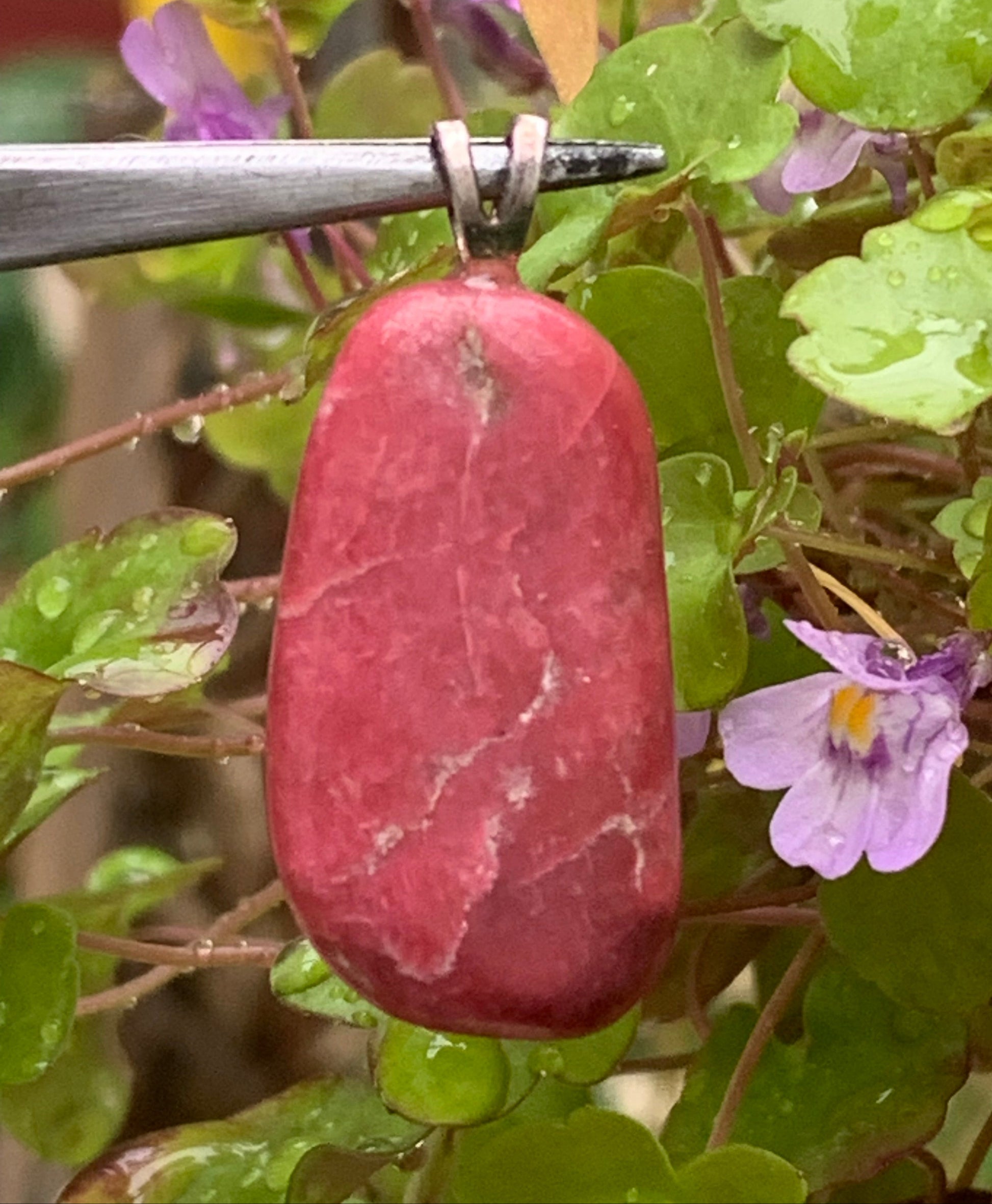 Thulite ! Pendentif en Argent 925 de 35mm de hauteur x 17 de largeur x 10 d'épaisseur. Vendu avec cordon réglable de couleur noire !