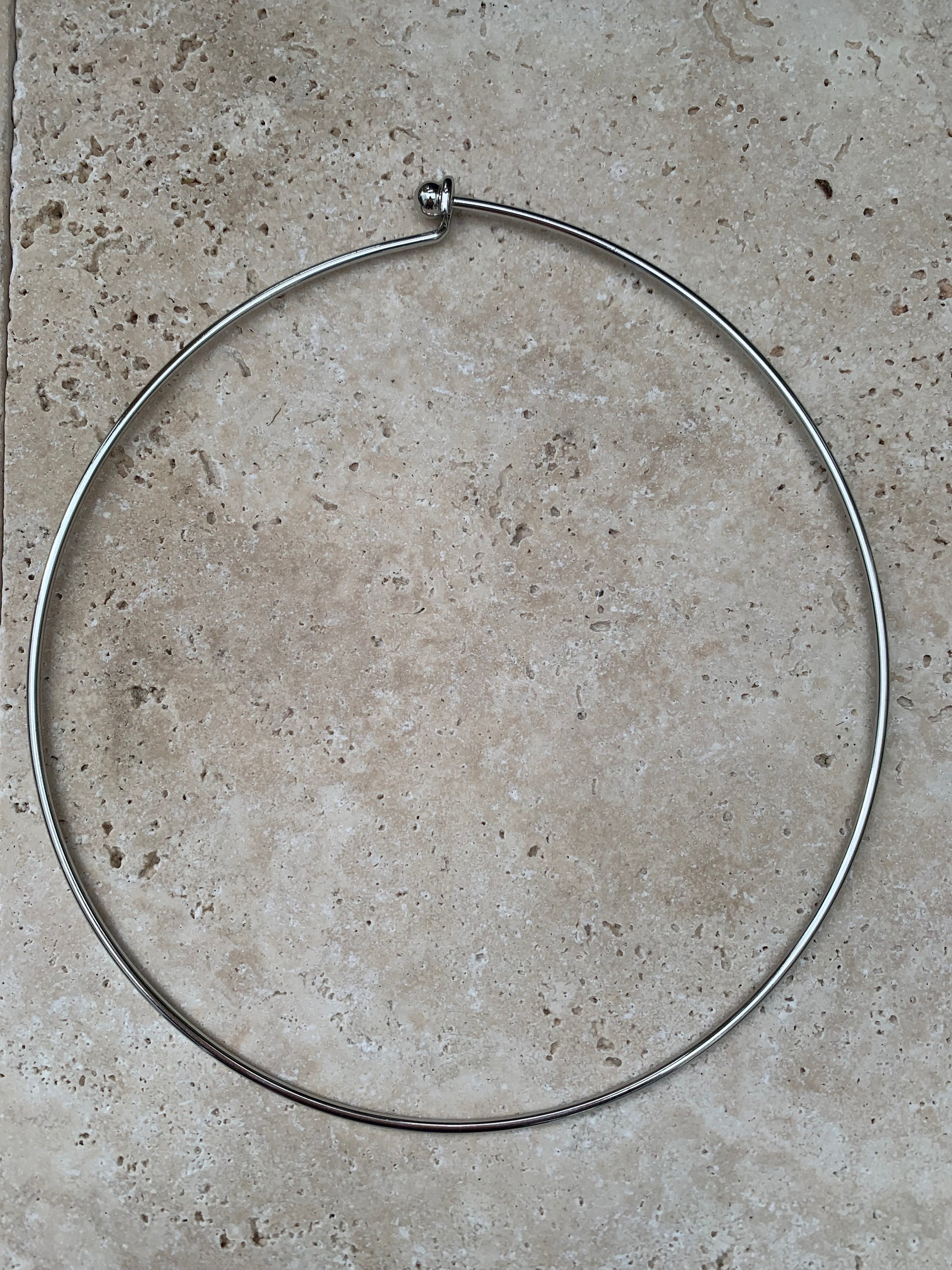 Tour de cou rigide de 2 millimètres de diamètre. 35 centimètres de longueur environ ! Fait en laiton couleur Argent ou Doré, au choix !