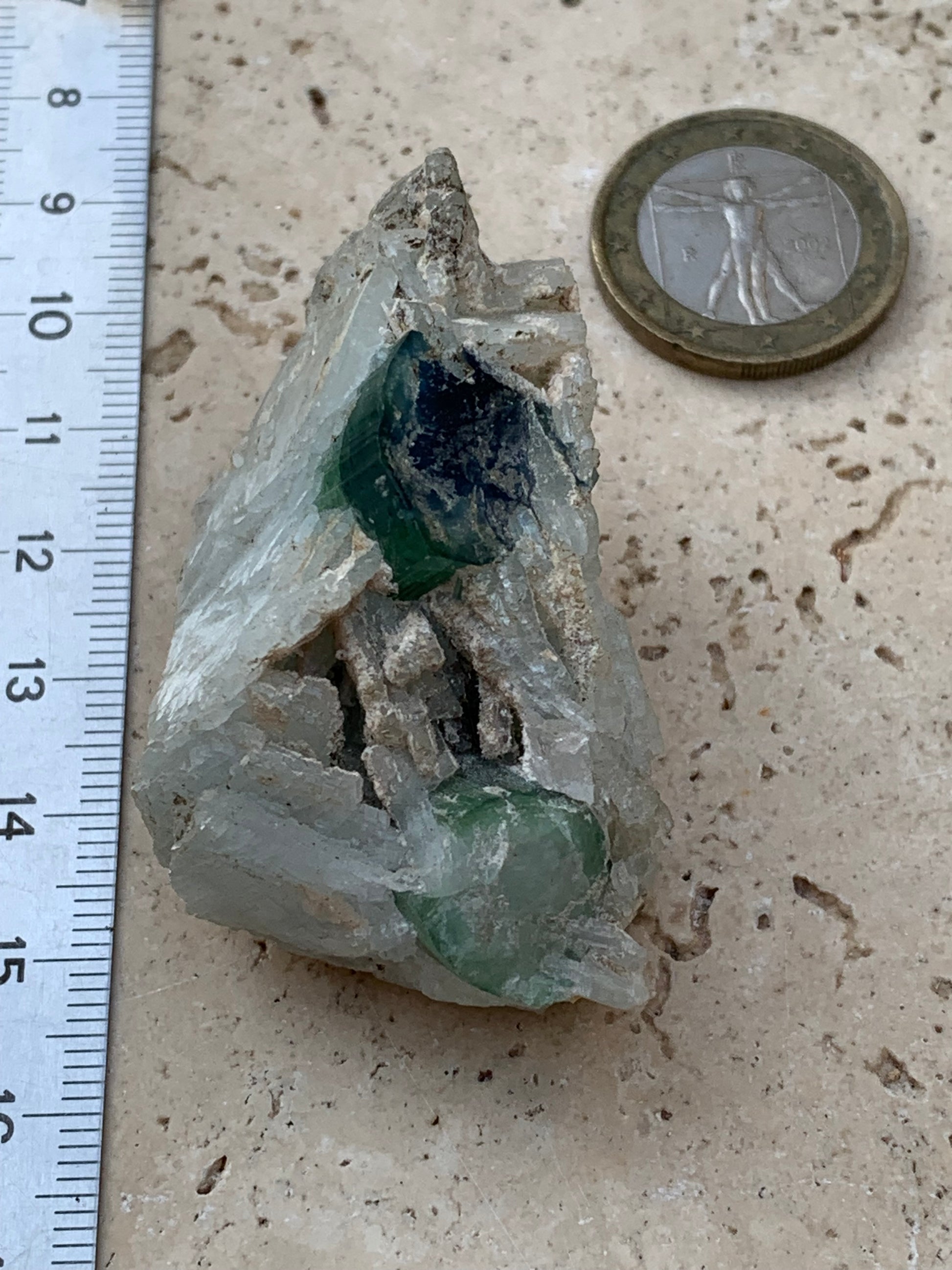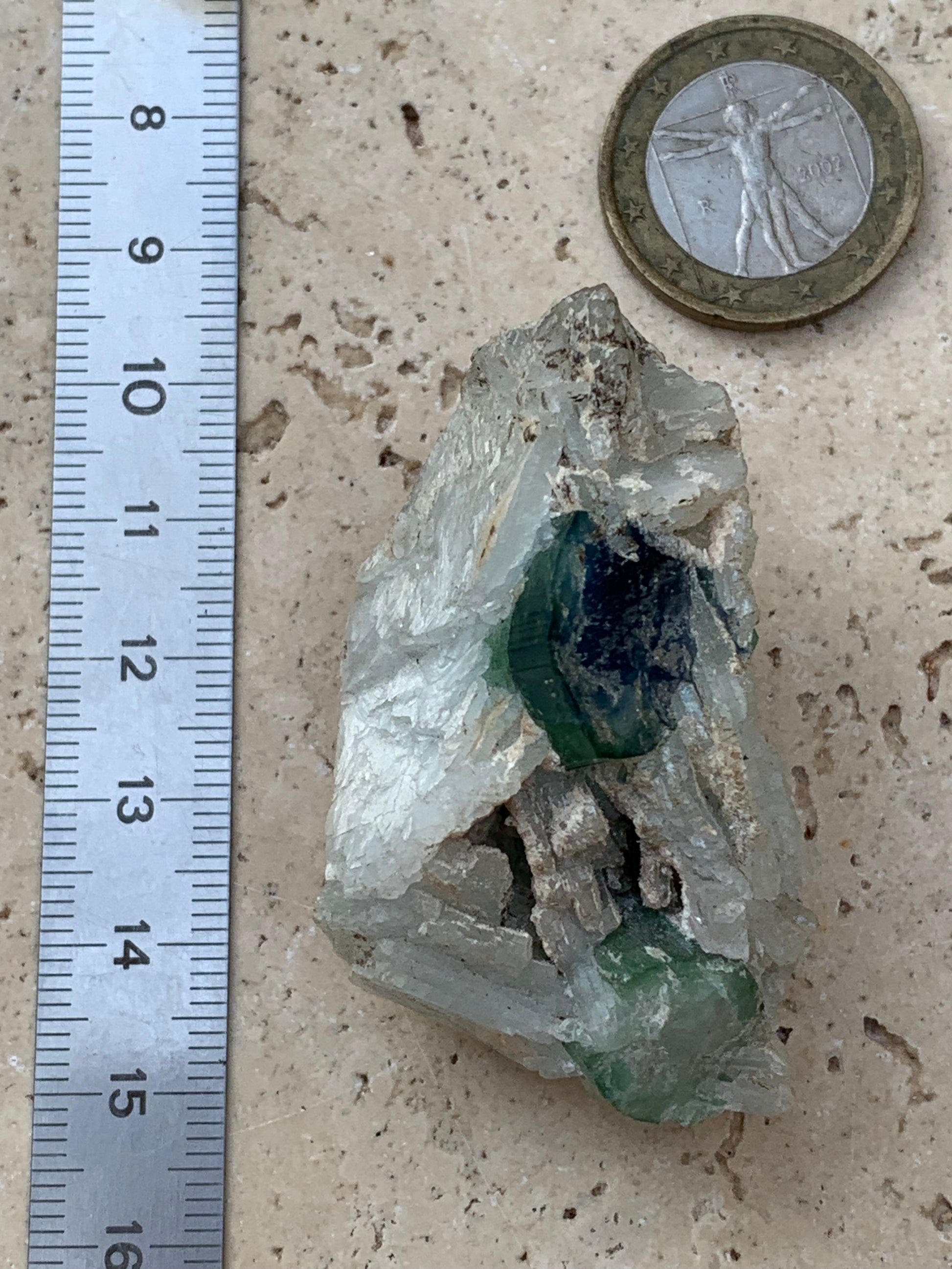 Tourmaline bleue/ Indicolite et Aigue-Marine , spécimen naturel de 52 x 32 x 30 mm - 47,9 grammes !