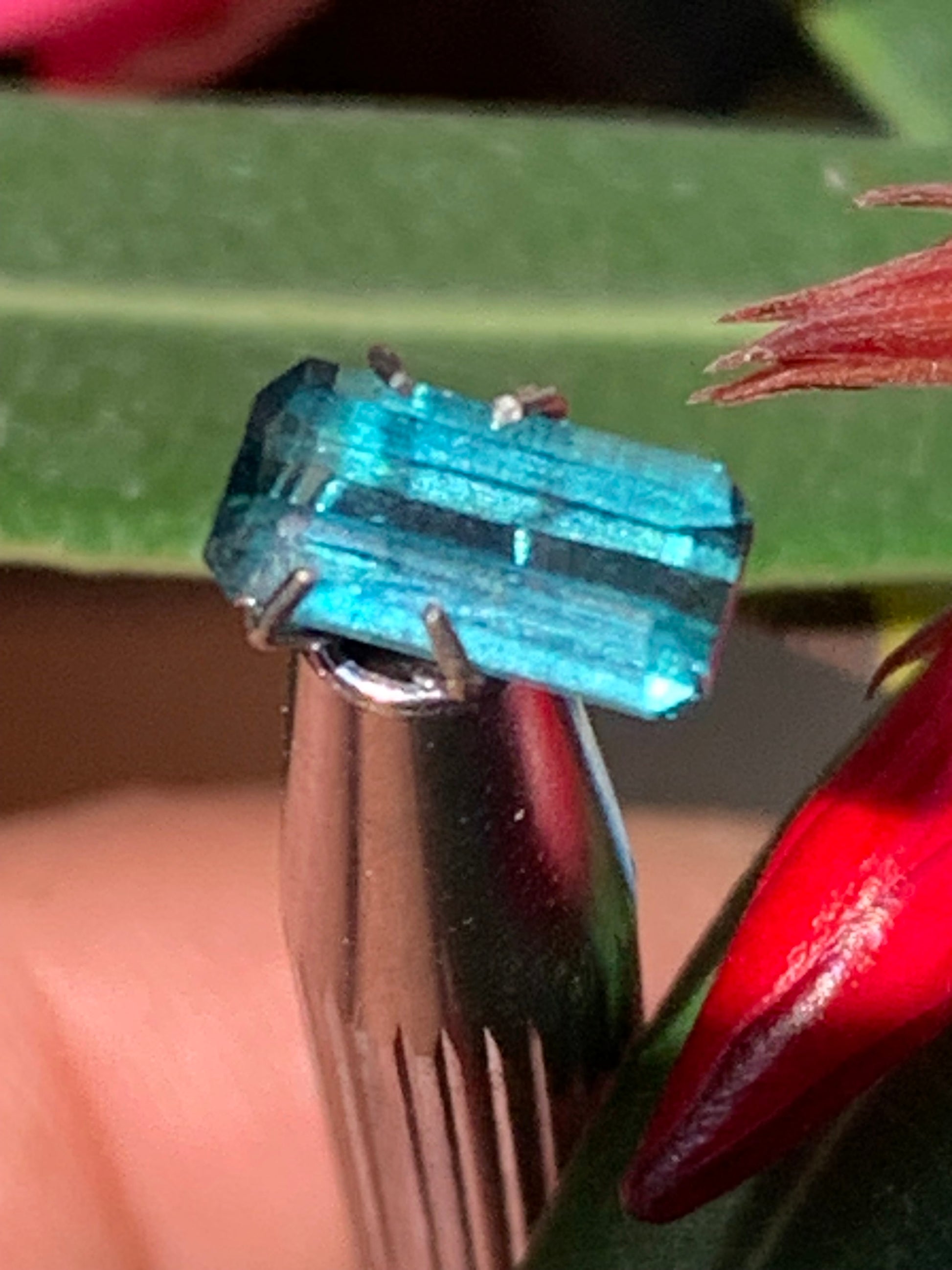 Tourmaline bleue/ Indicolite, pierre taillée de 10mm x 5 x 4 - 1,5 carat. Parfait en bijouterie, collection ,exposition...