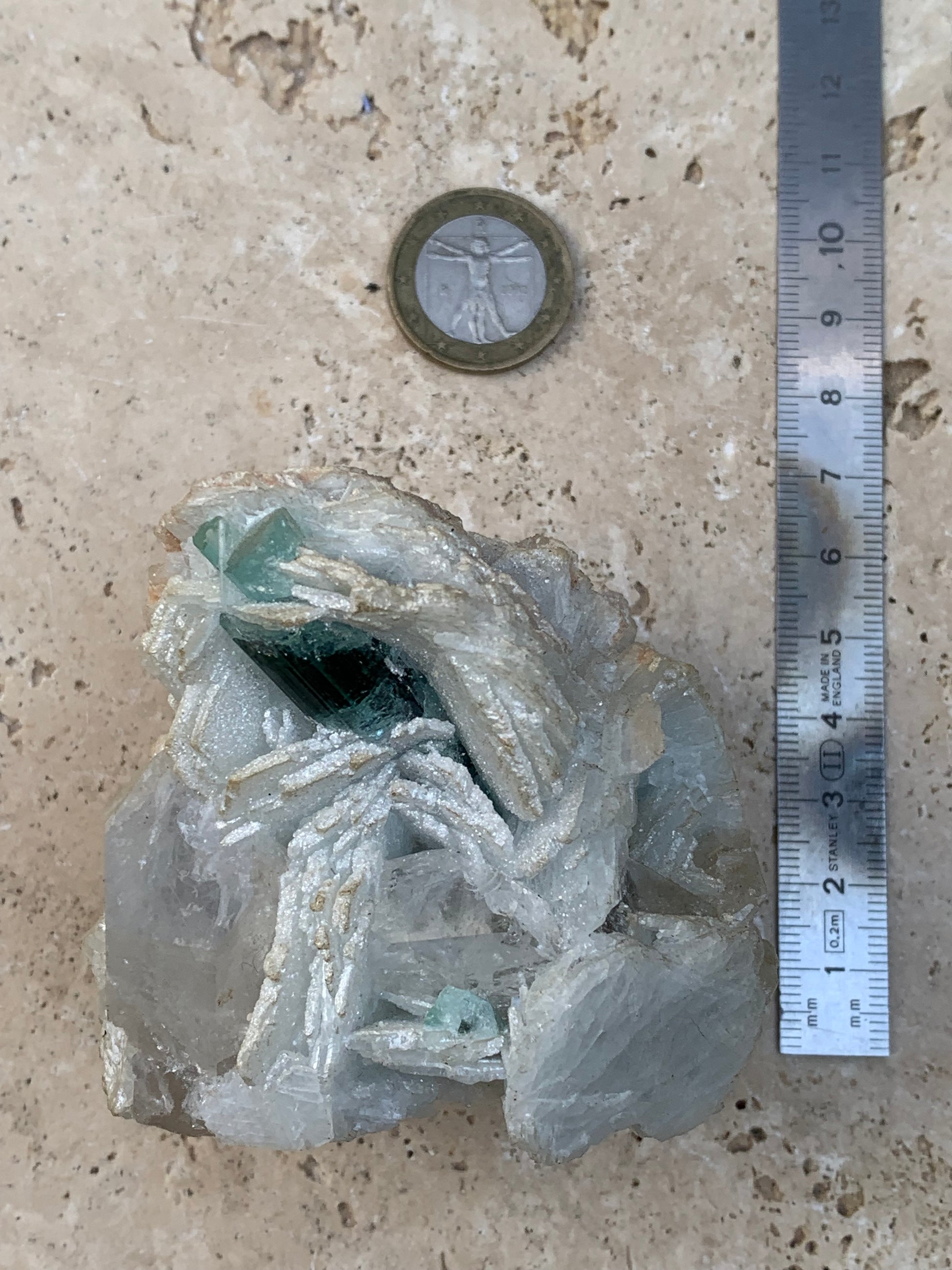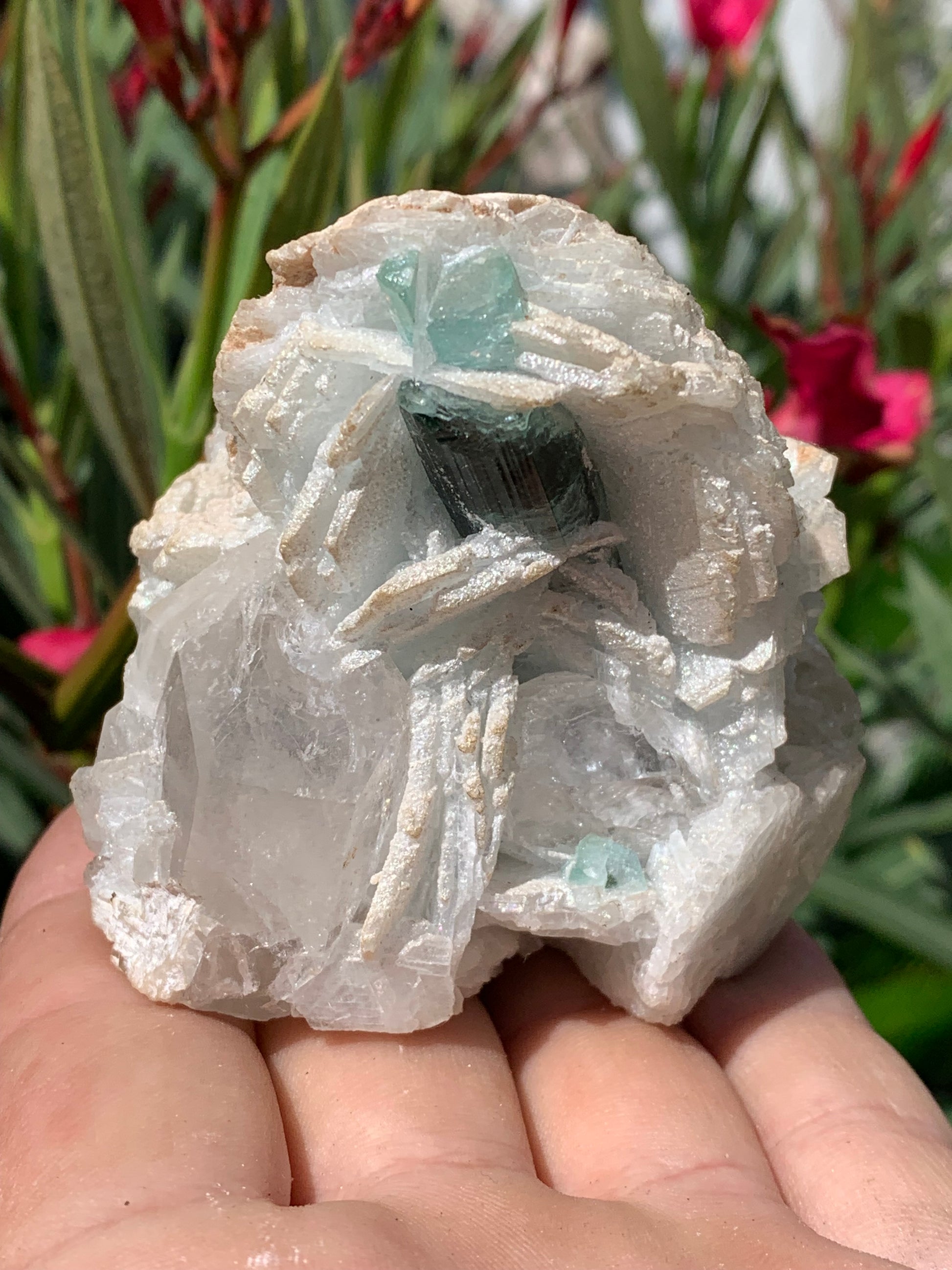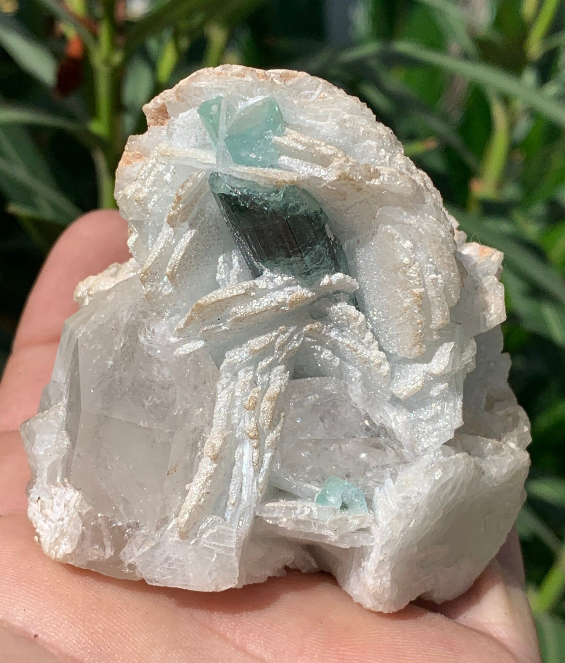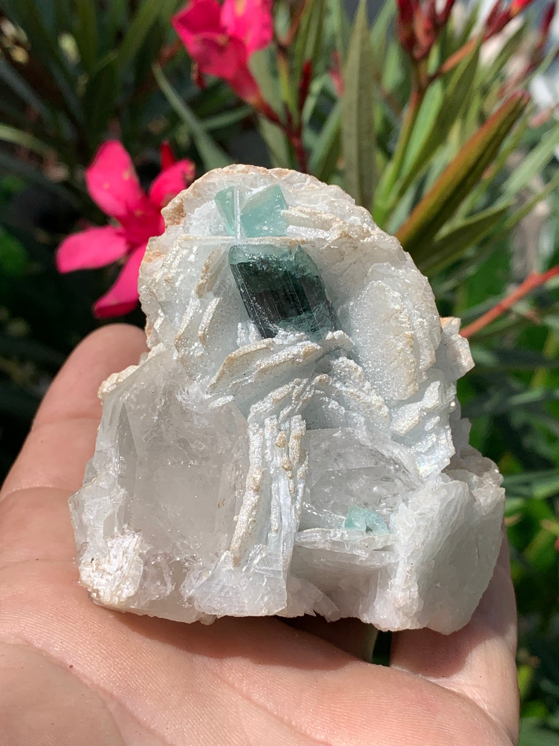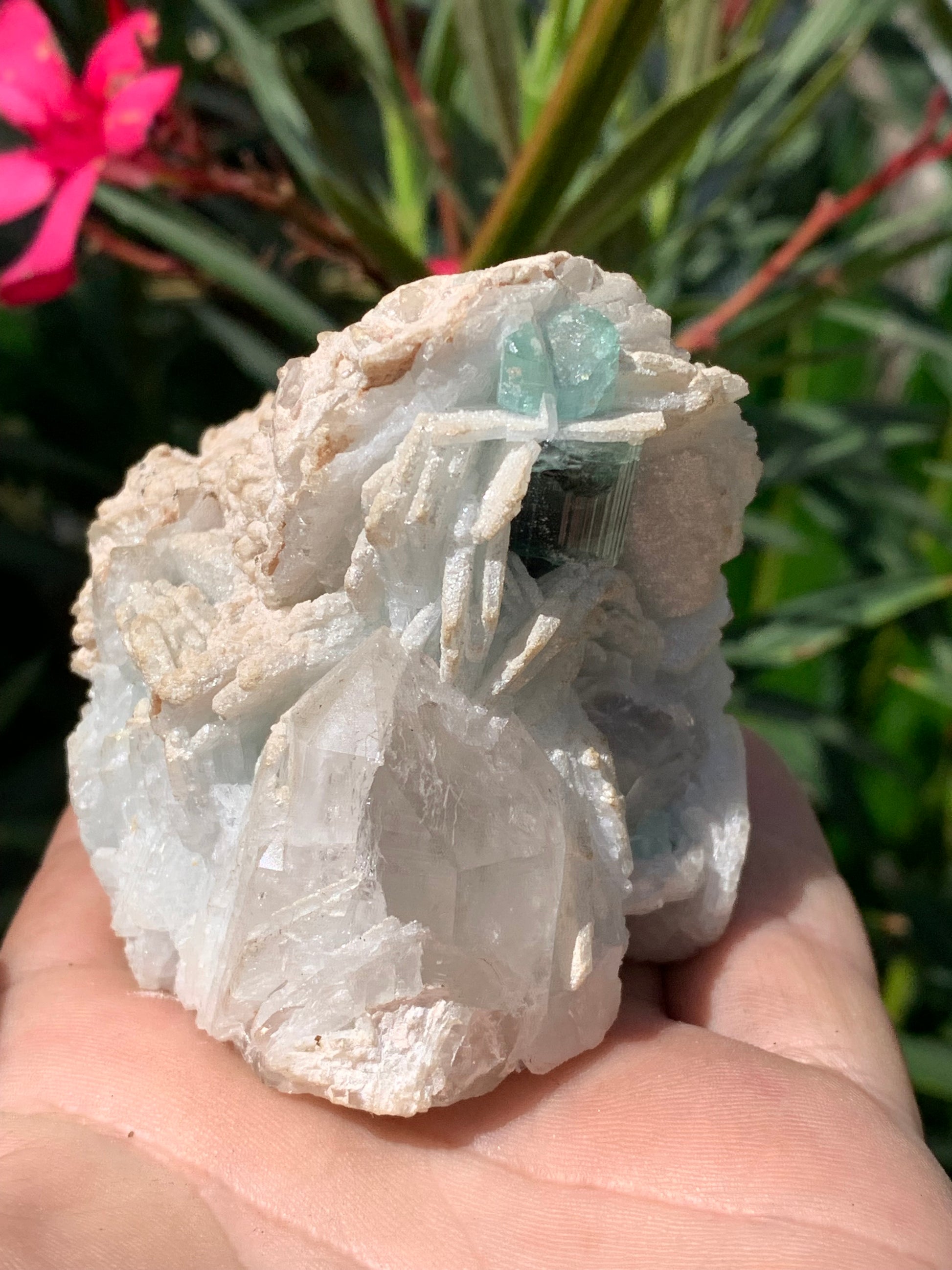 🪨 Type de minéral : Tourmaline bleue/ Indicolite sur cristaux de Quartz facettés et