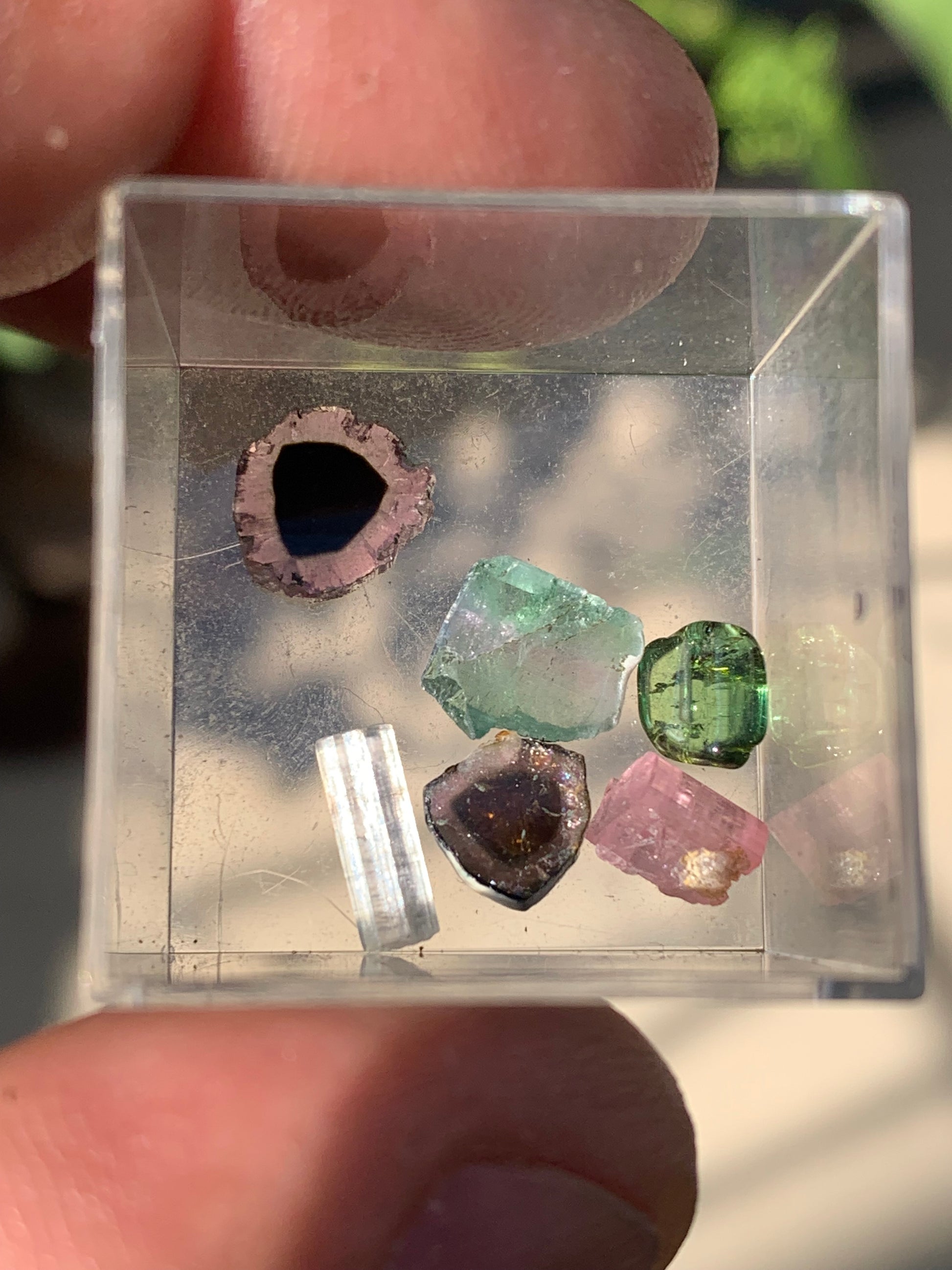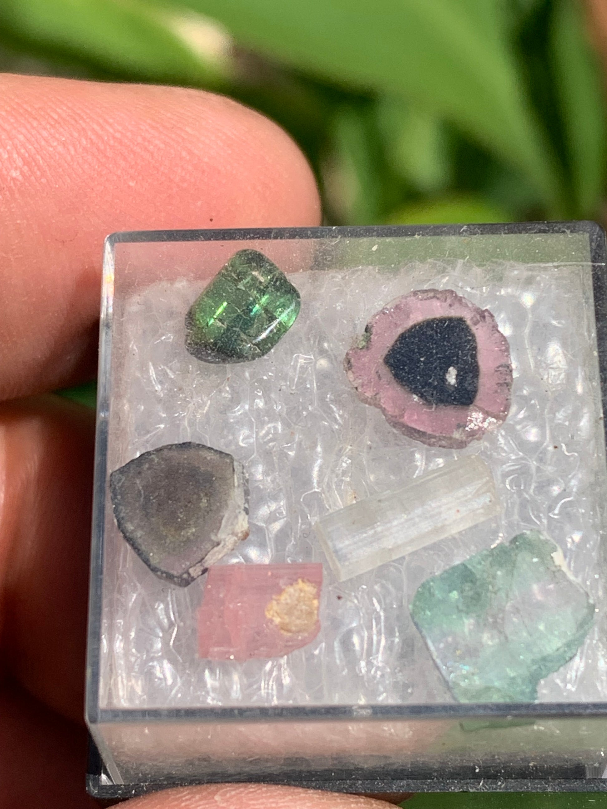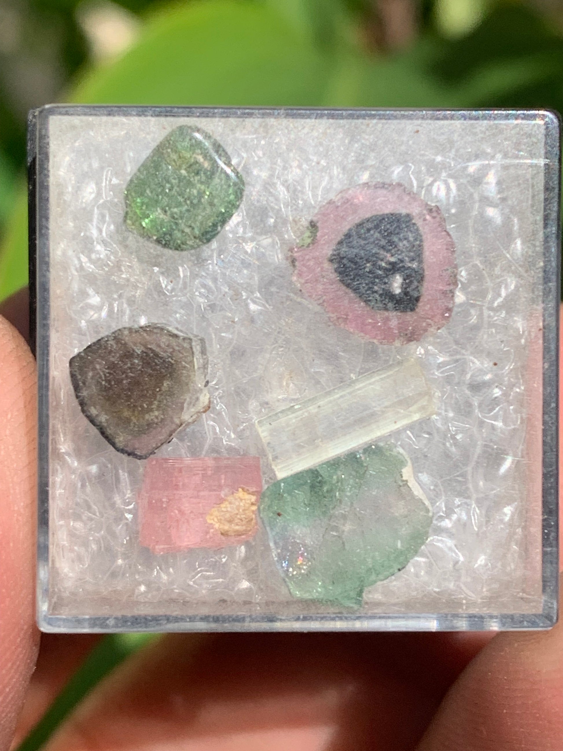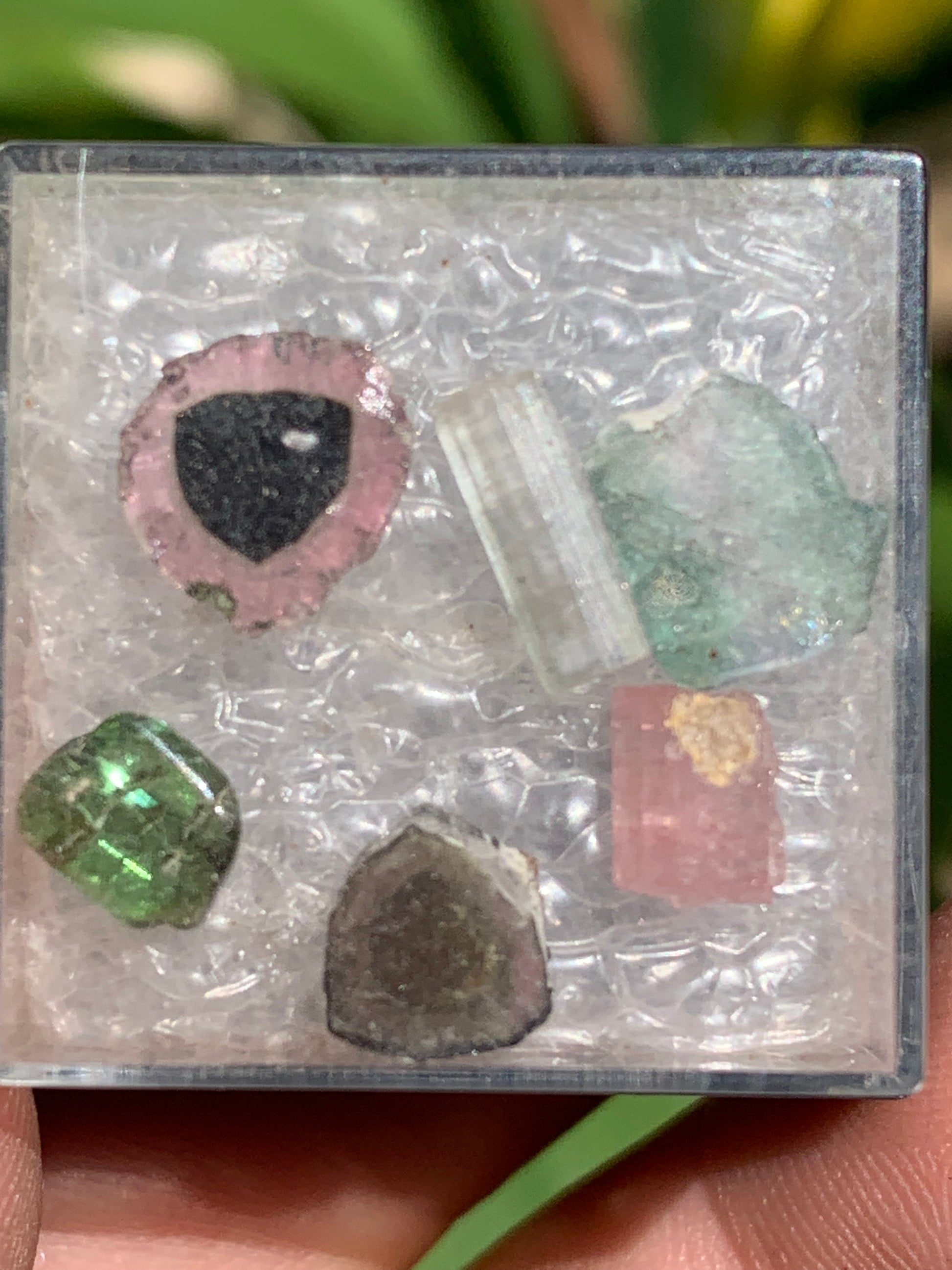💎 Type de minéral / Gemme : Tourmaline, 1 gemme de chaque variété de tourmaline (Rubellite, Verdelite, indicolite, melon d'eau...)