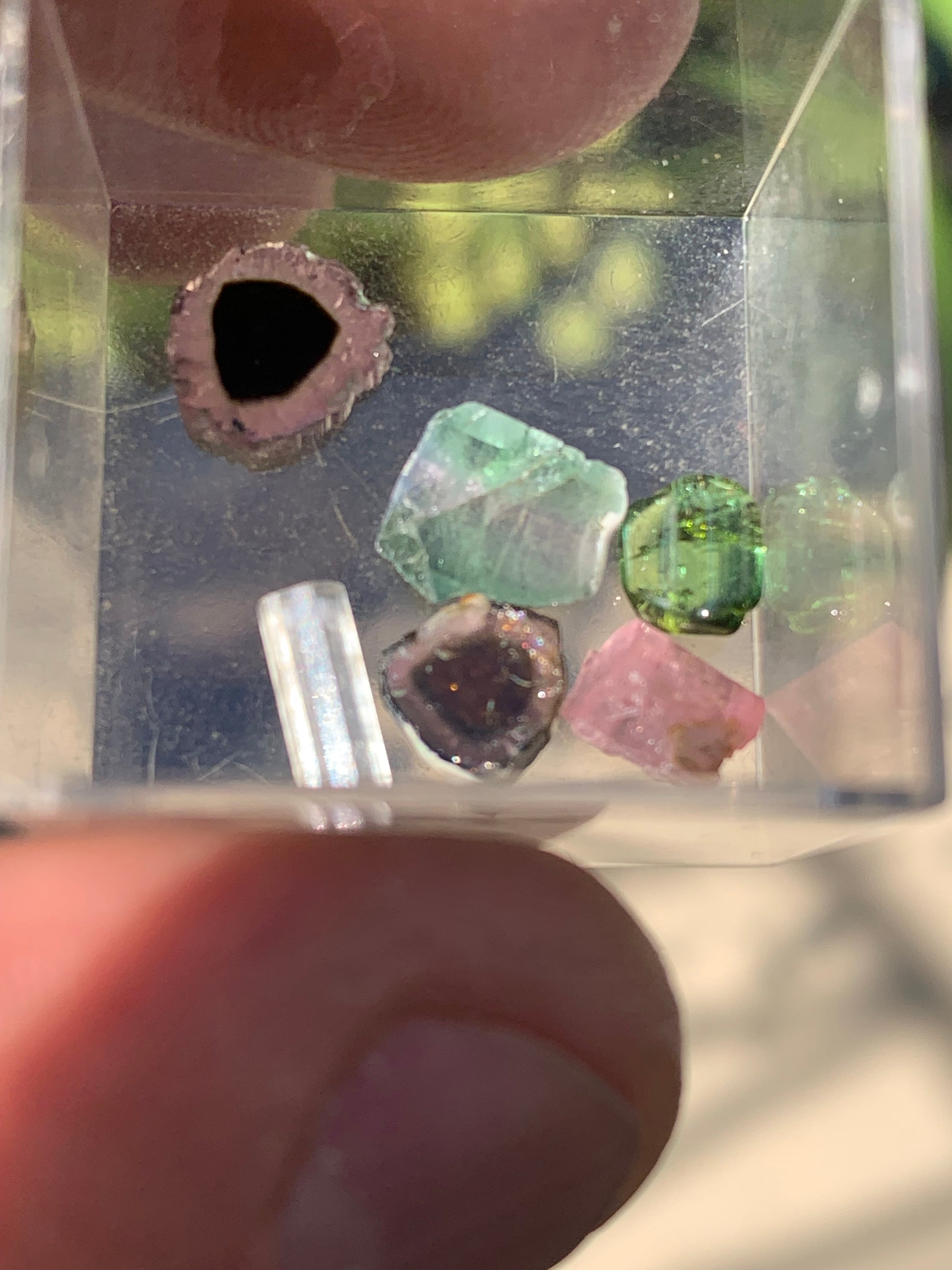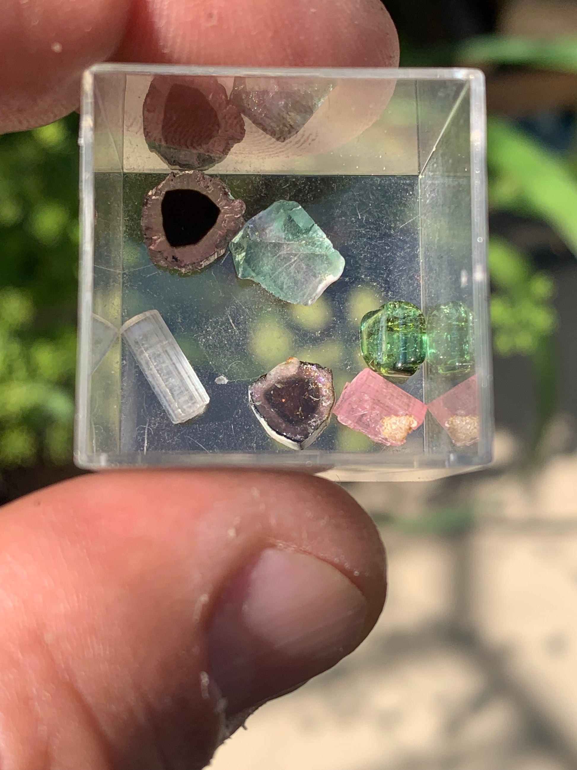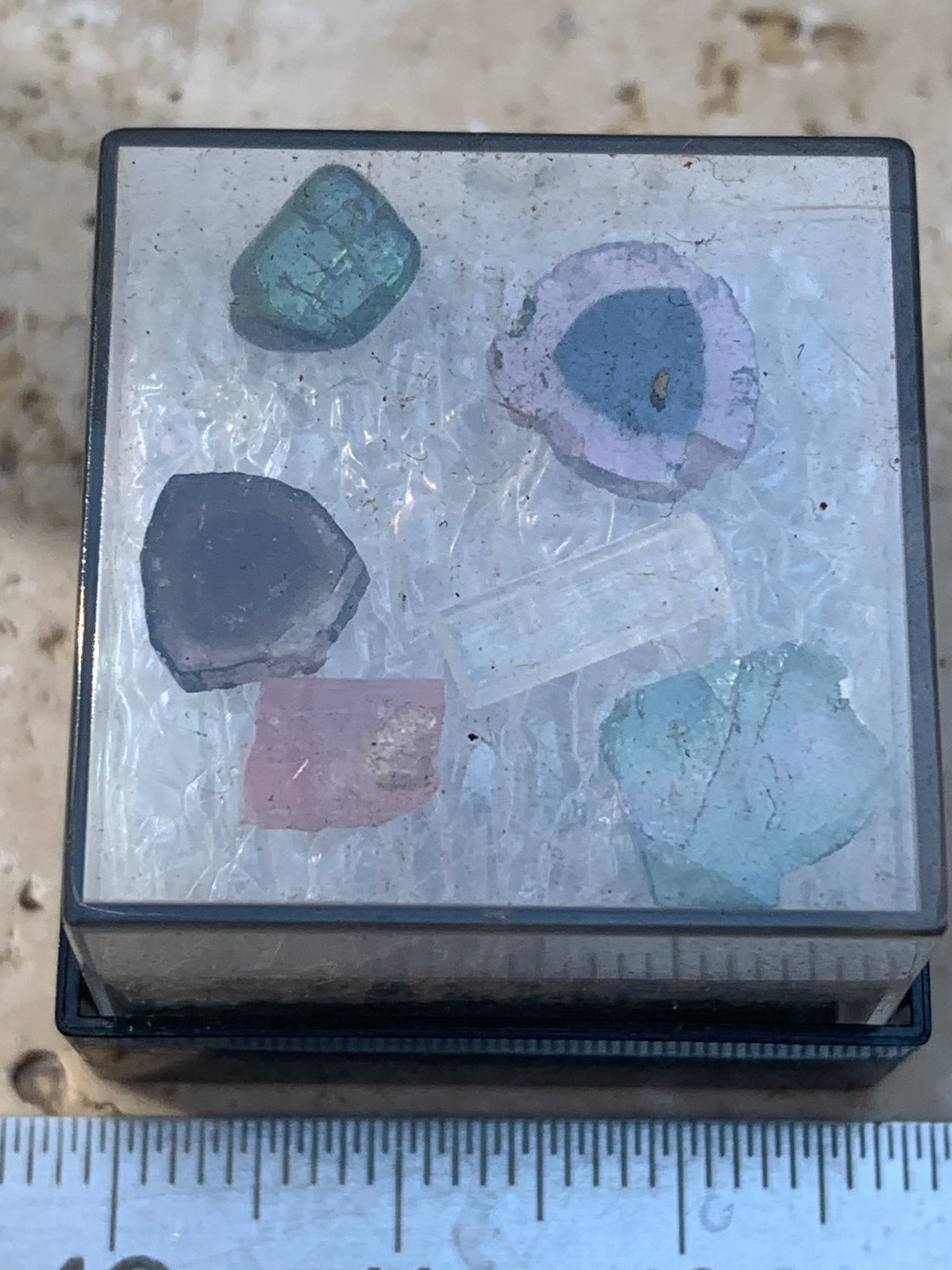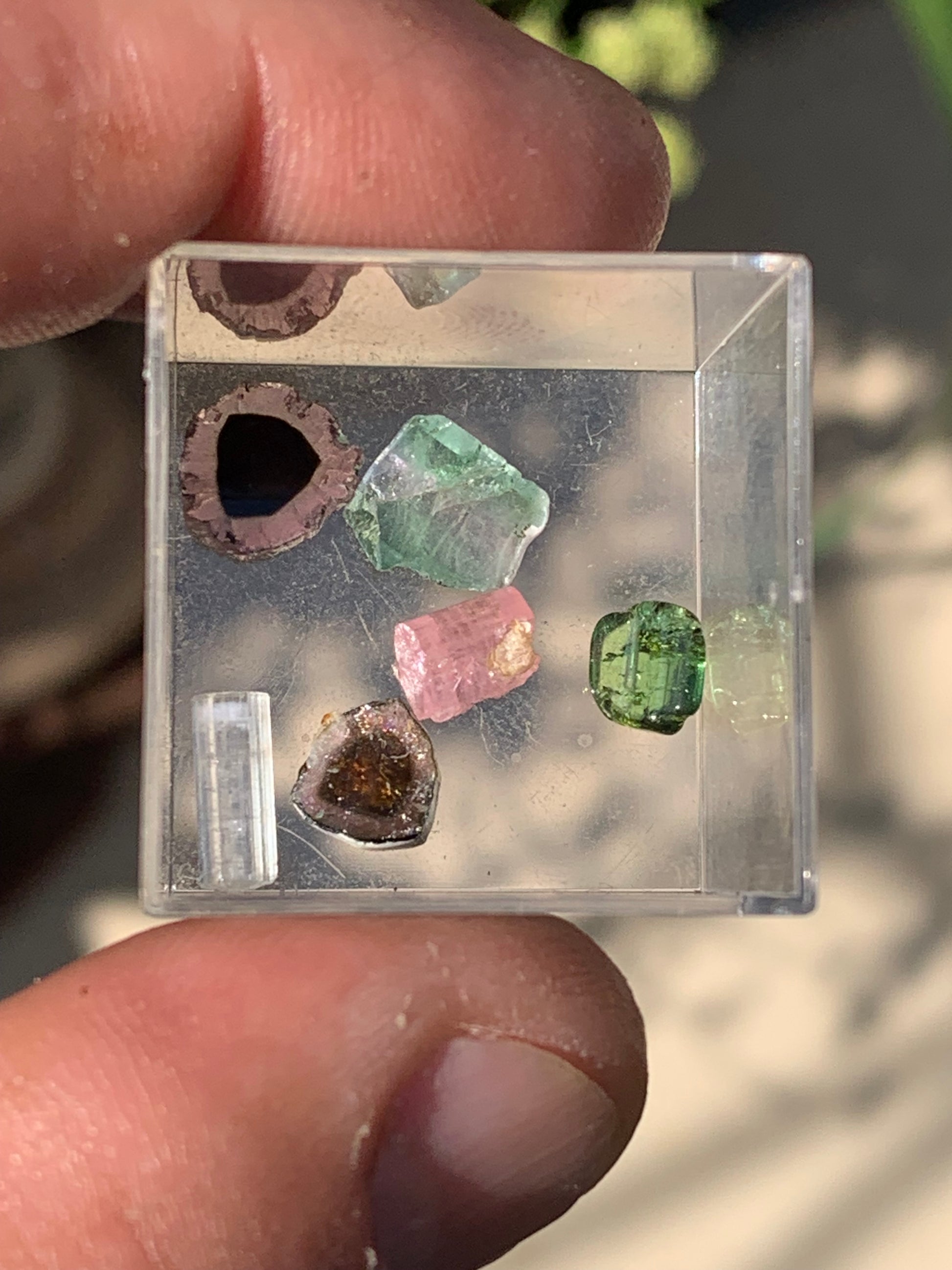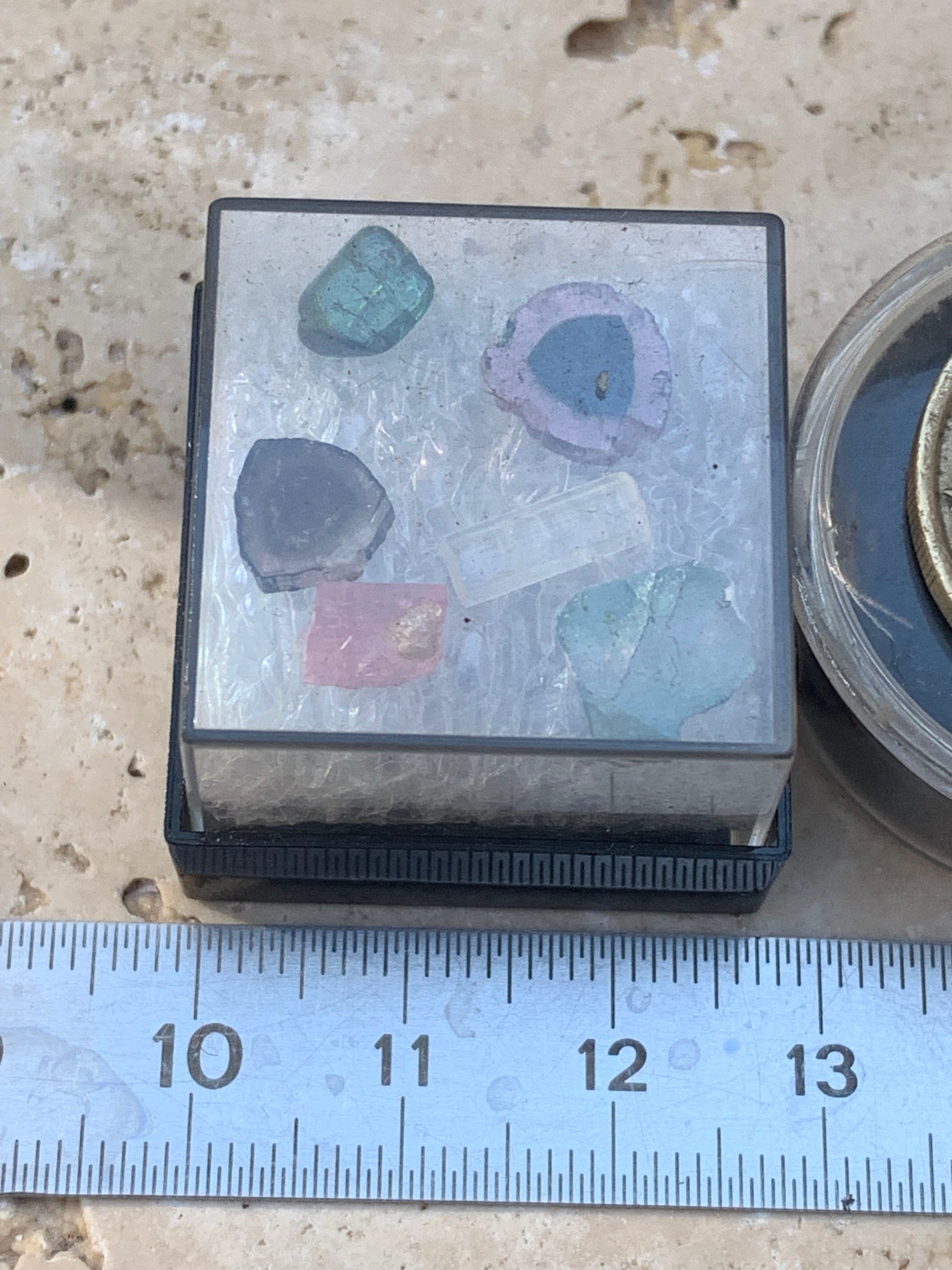 💎 Type de minéral / Gemme : Tourmaline, 1 gemme de chaque variété de tourmaline (Rubellite, Verdelite, indicolite, melon d'eau...)