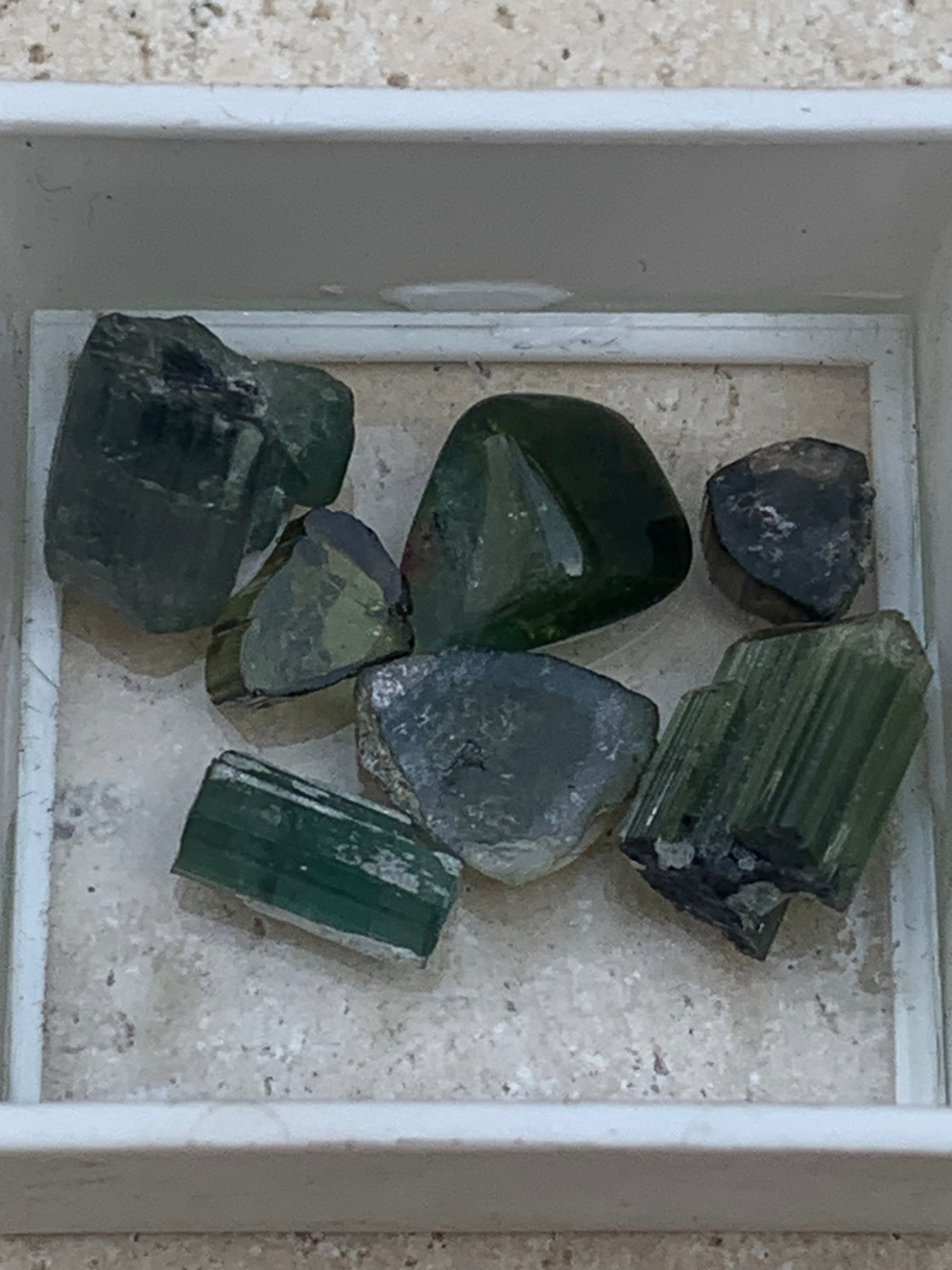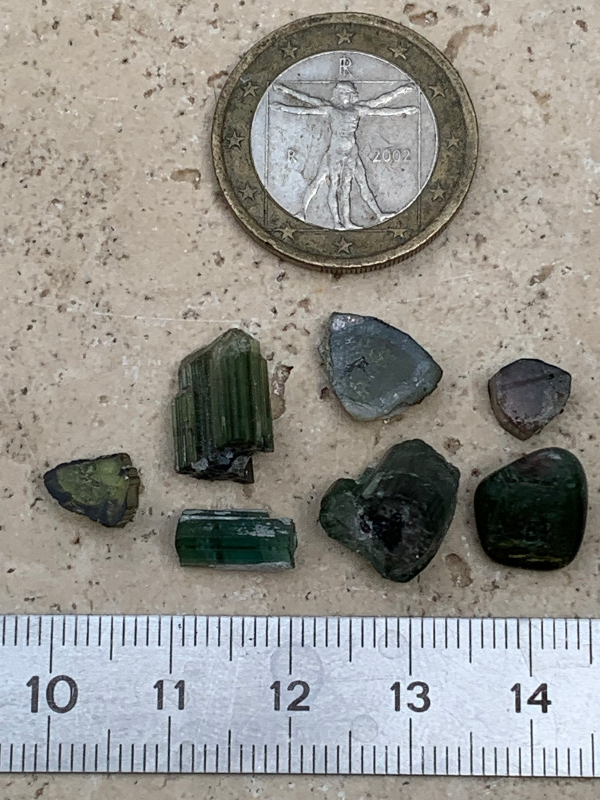 Tourmaline (Verdélite, Indicolite, Melon d'eau), lot de 7 pièces de 5 à 10 mm - 4,7 grammes.
