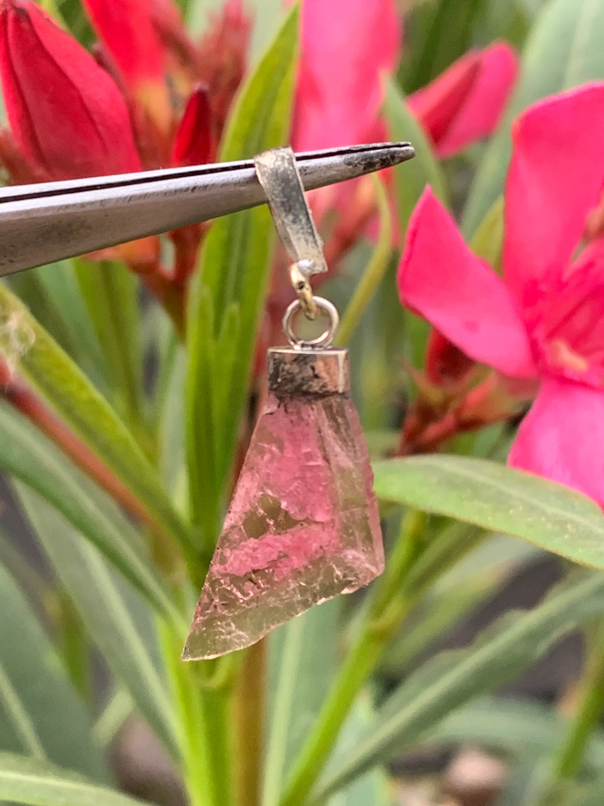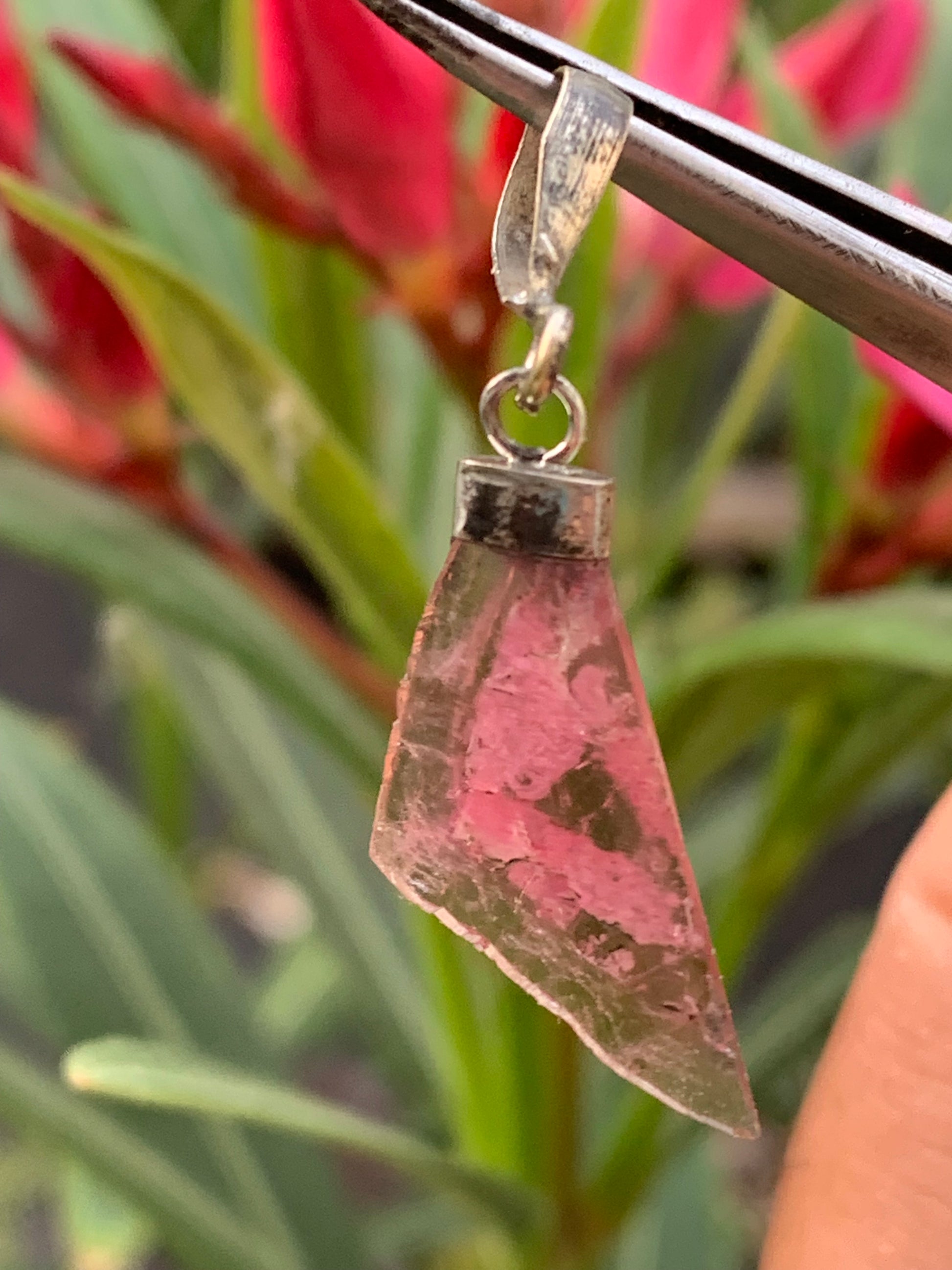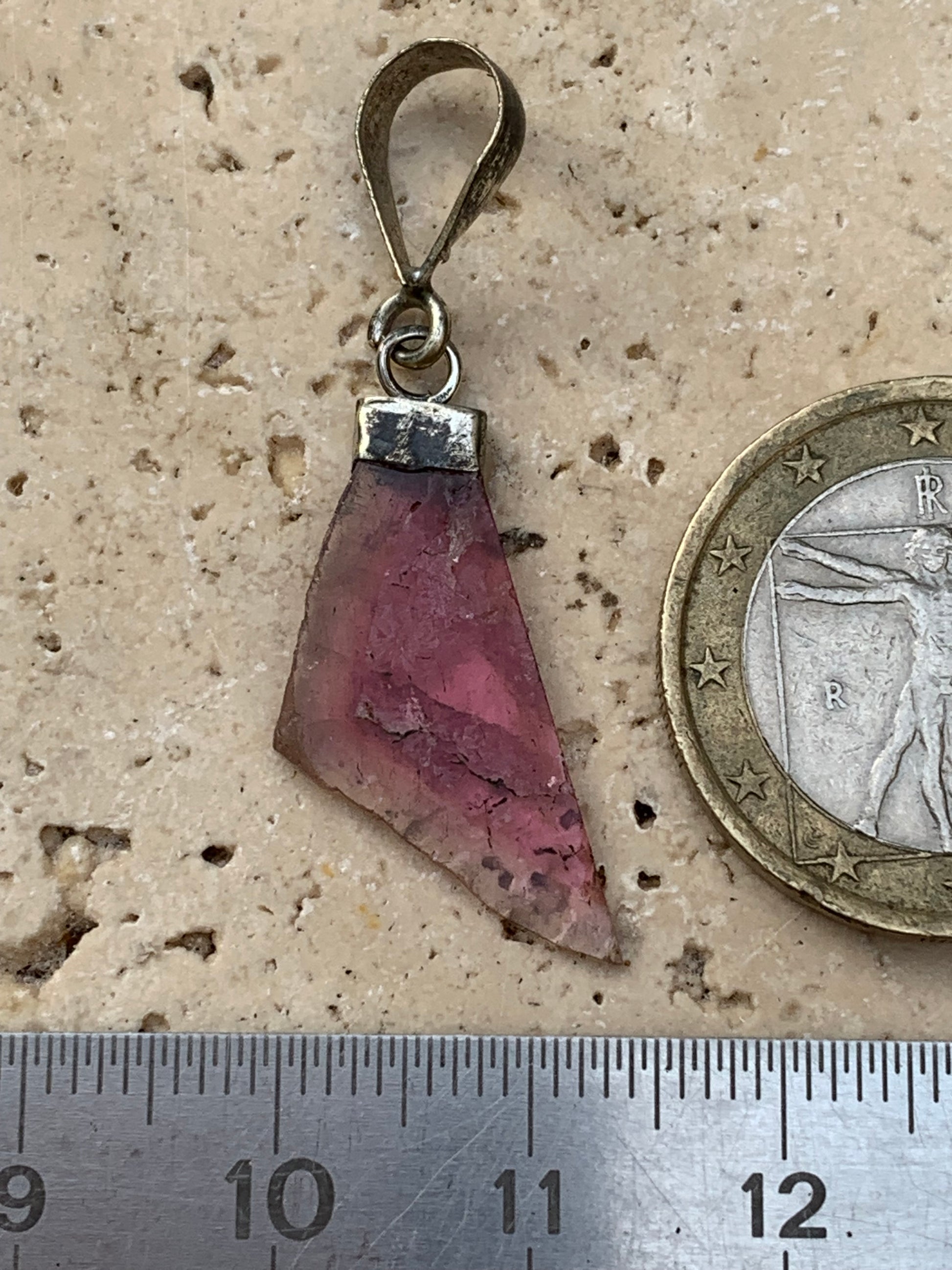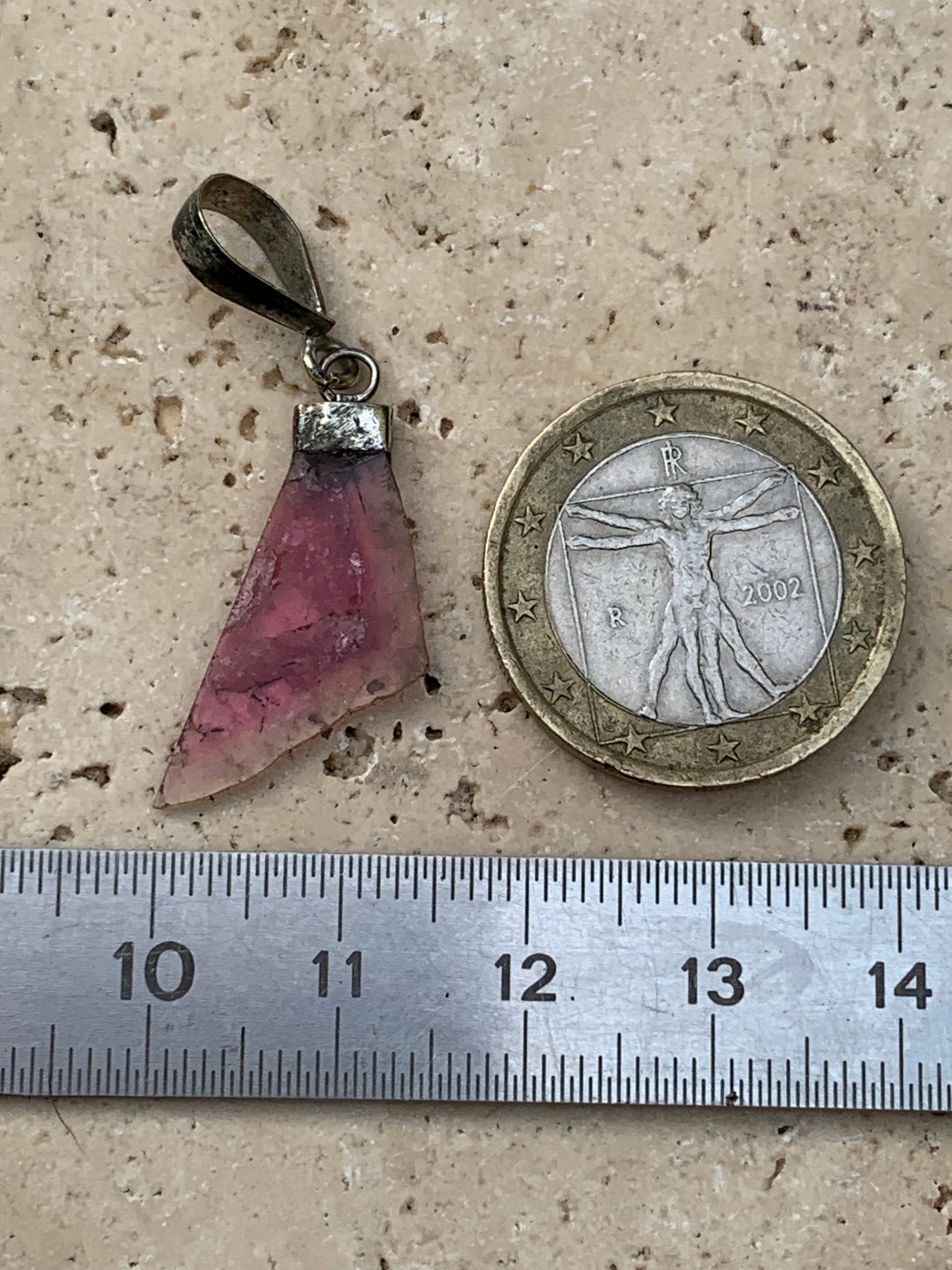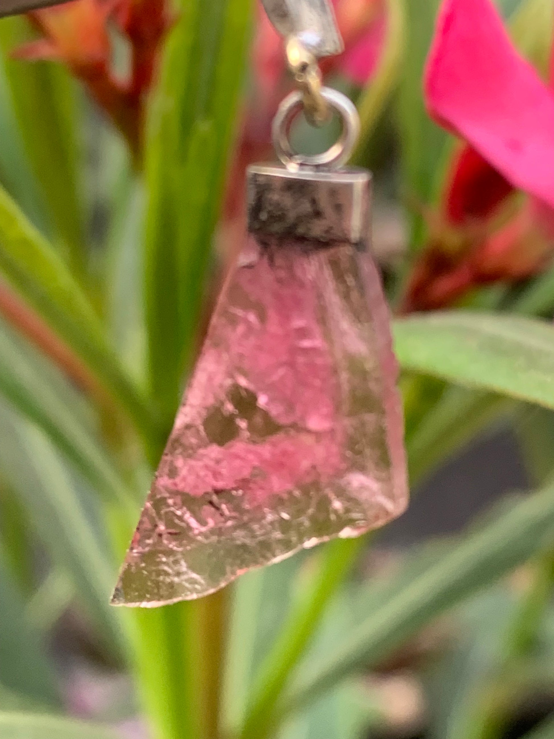 Tourmaline melon d'eau/ pastèque, pendentif en Argent de 38mm de hauteur x 13 de largeur x 2. Vendu avec cordon réglable de couleur noire !