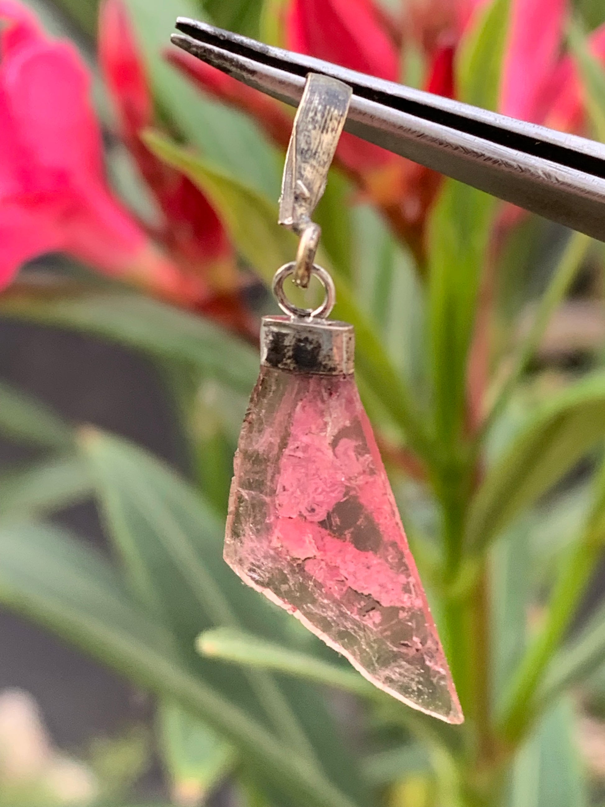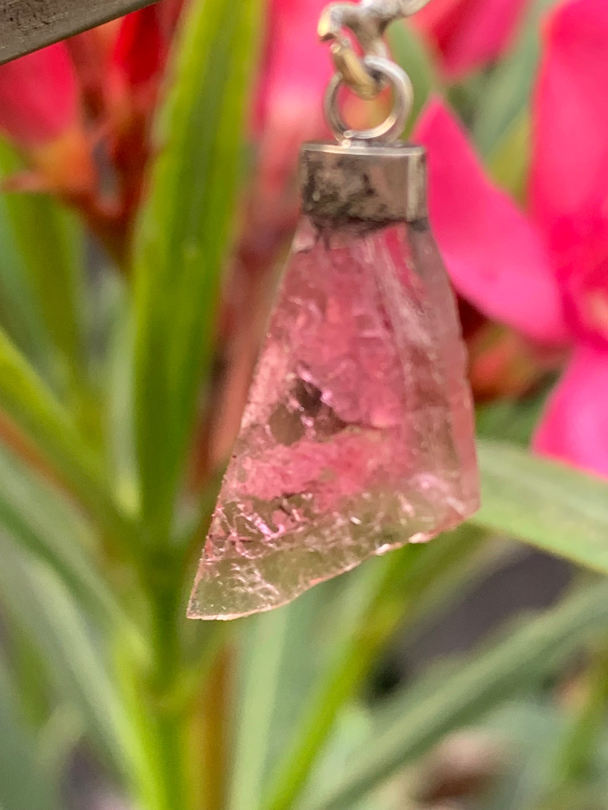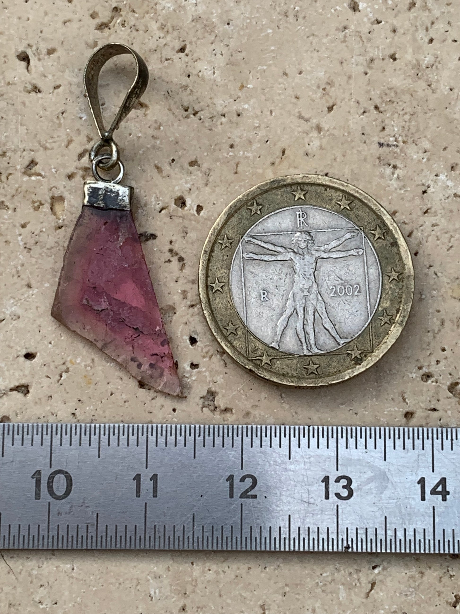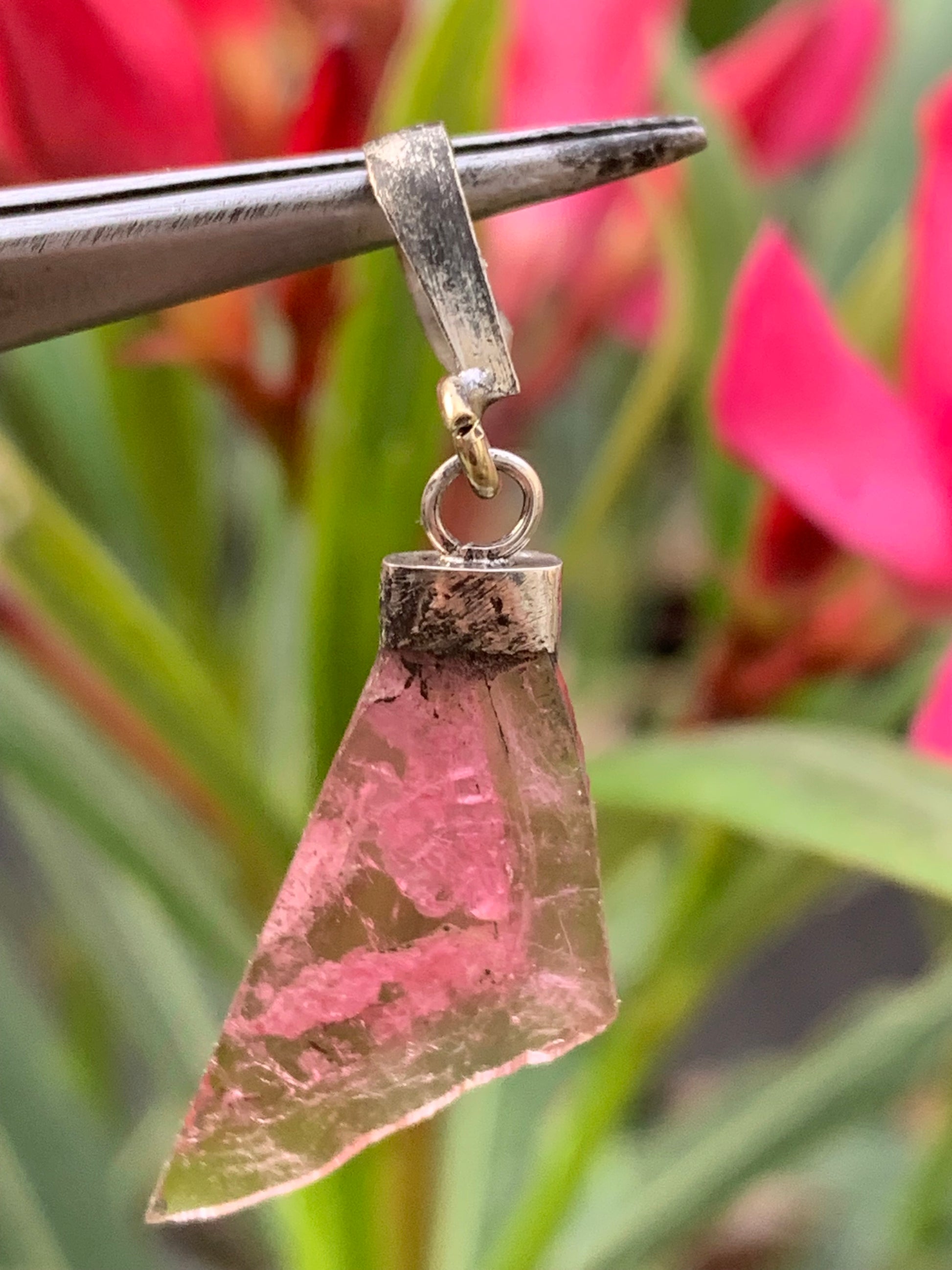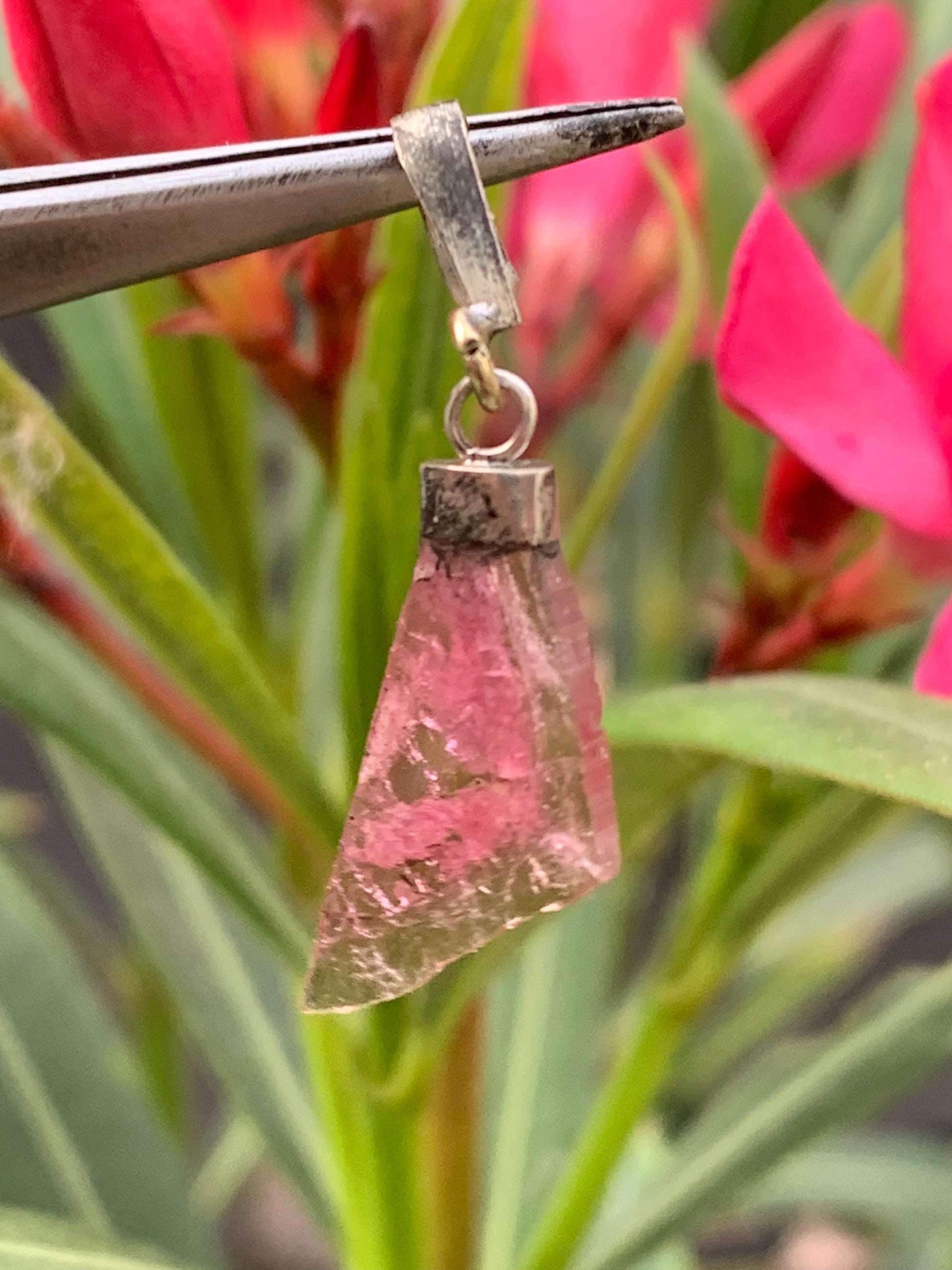 Tourmaline melon d'eau/ pastèque, pendentif en Argent de 38mm de hauteur x 13 de largeur x 2. Vendu avec cordon réglable de couleur noire !