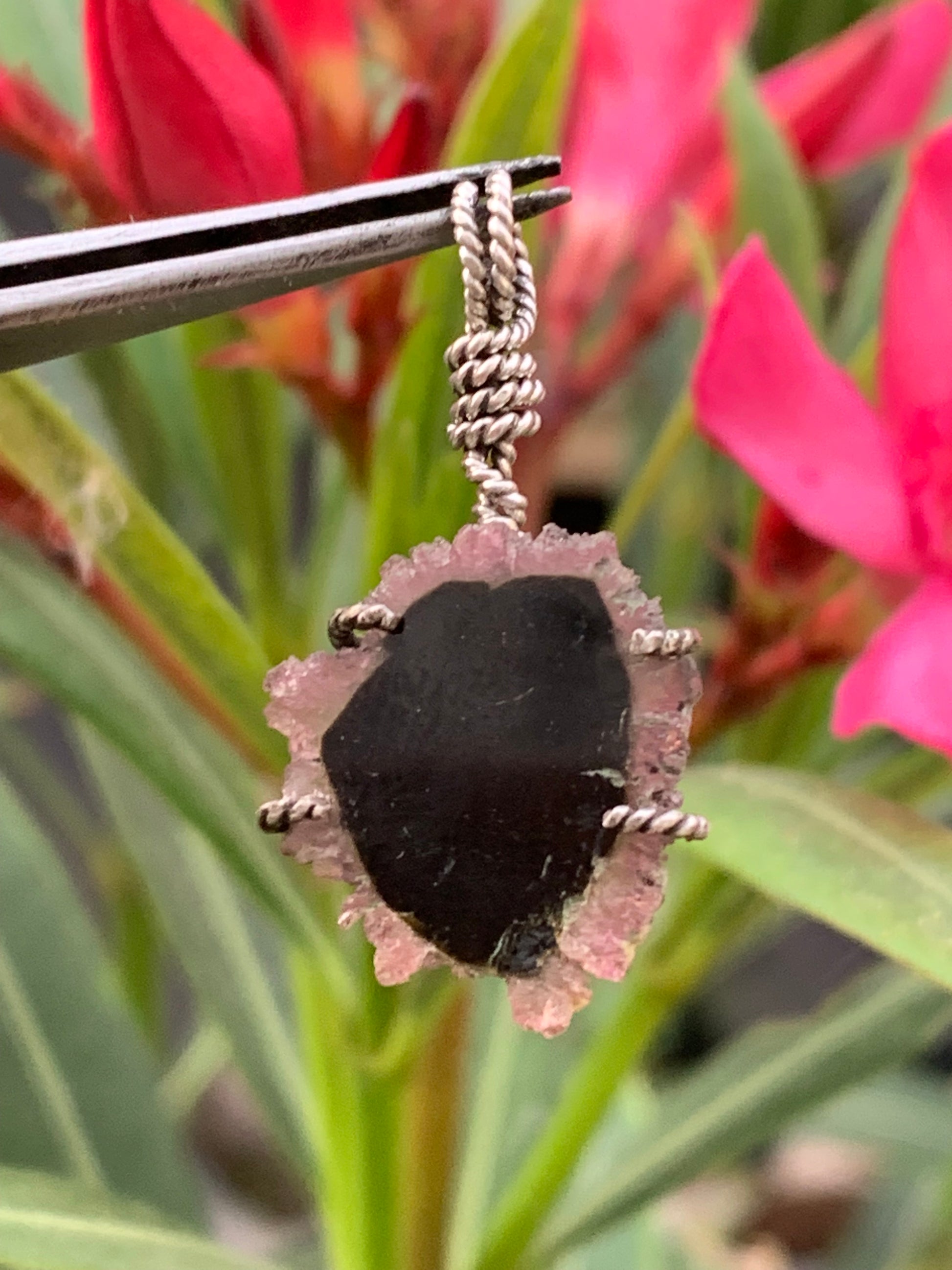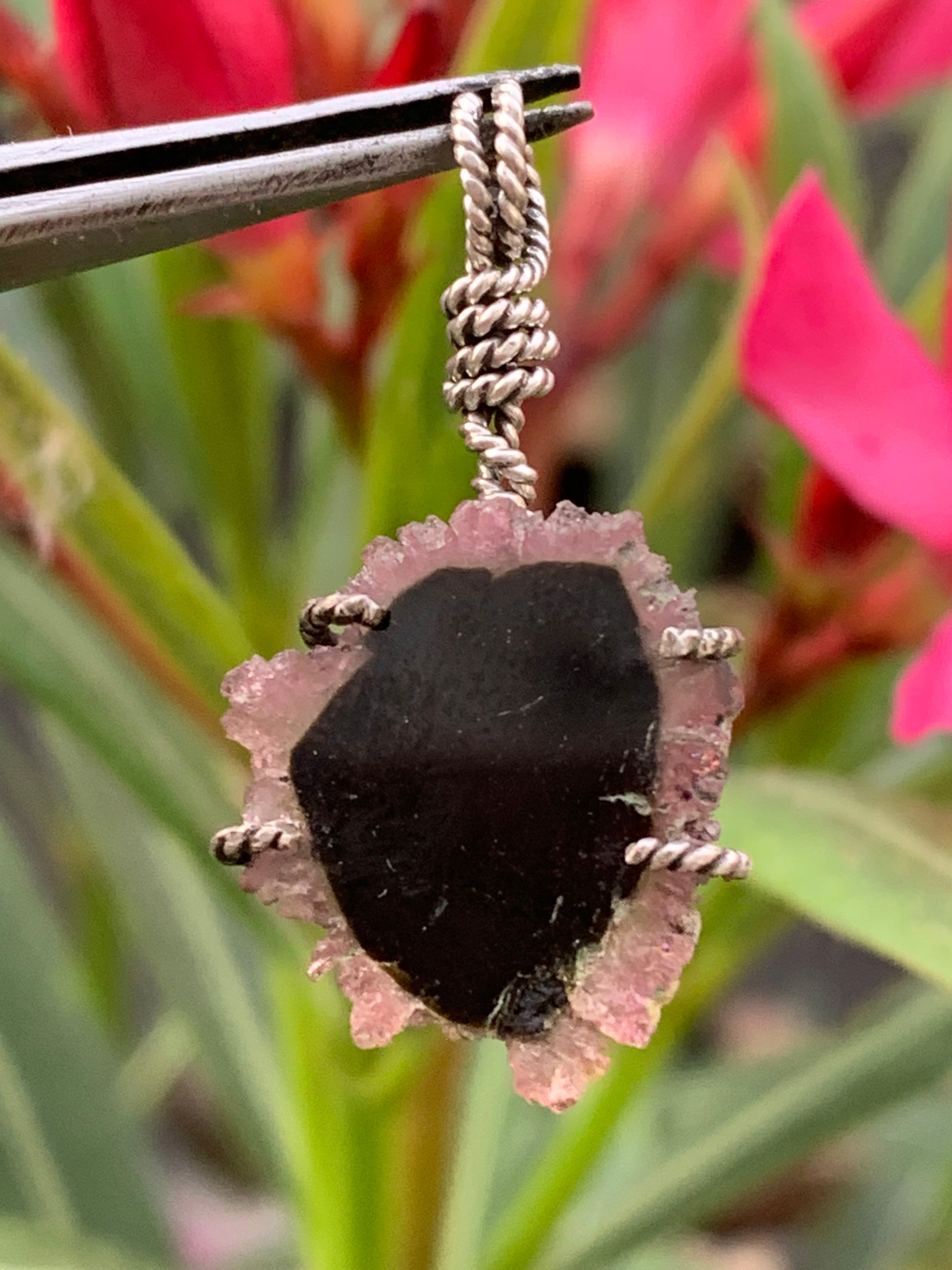 Tourmaline melon d'eau/ pastèque, pendentif en Argent fait par G & Z de 34 mm de hauteur x 18 de largeur x 6. Vendu avec cordon réglable de couleur noire !