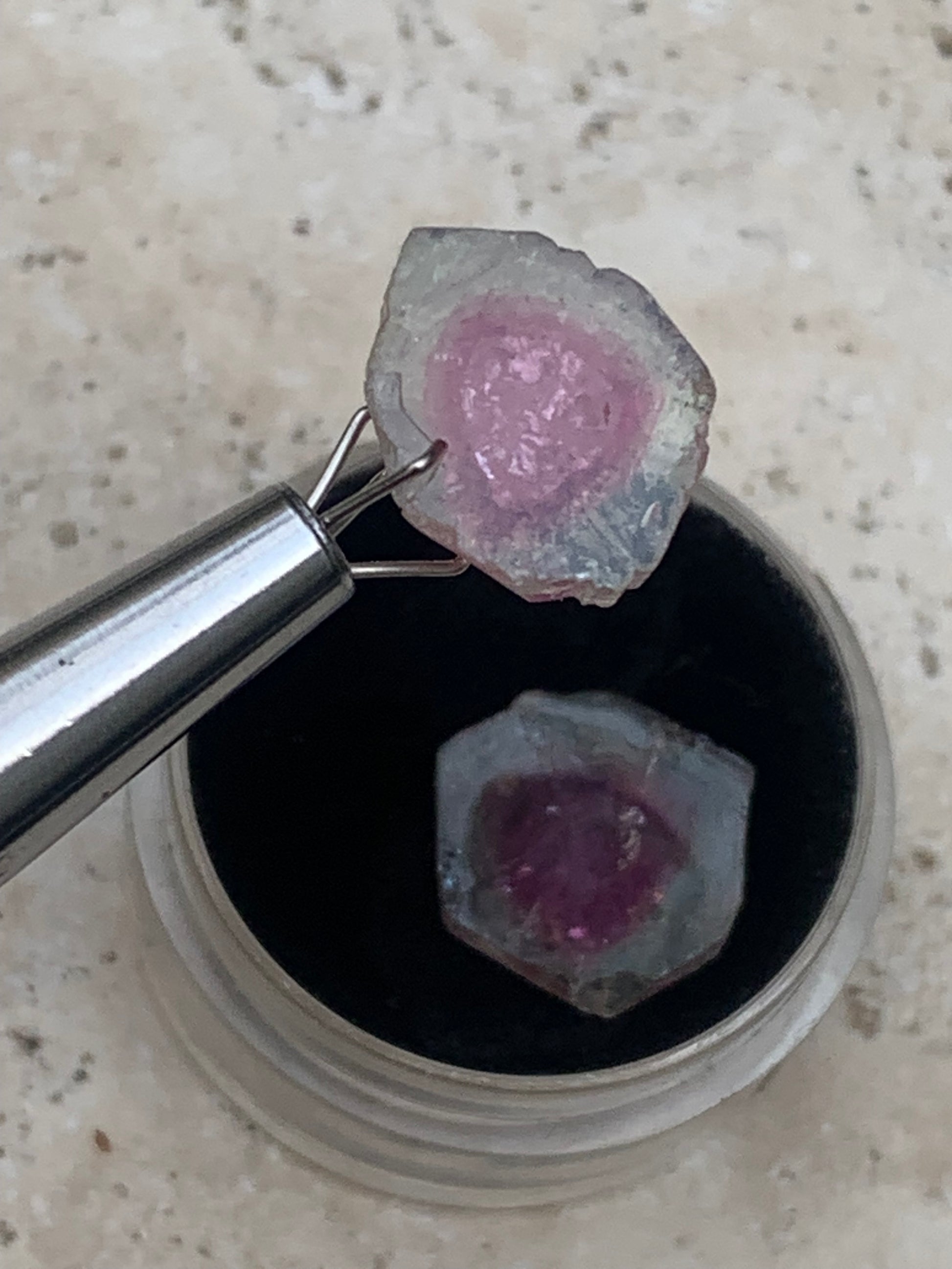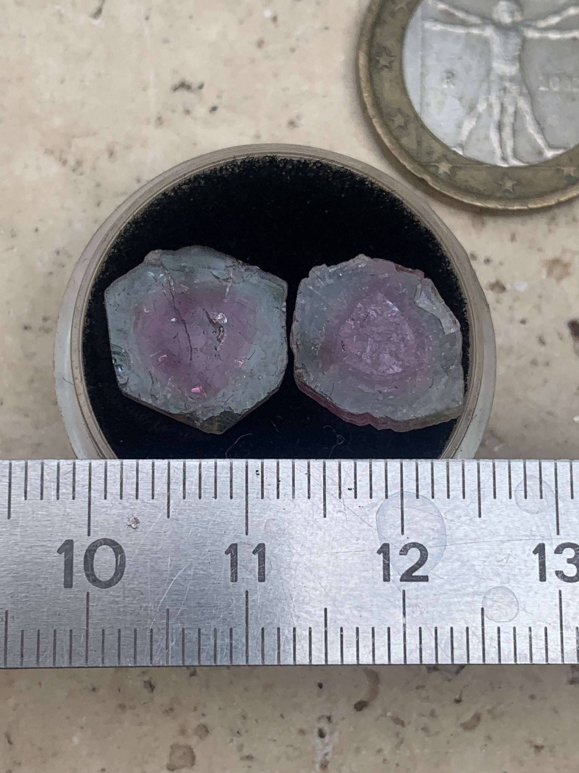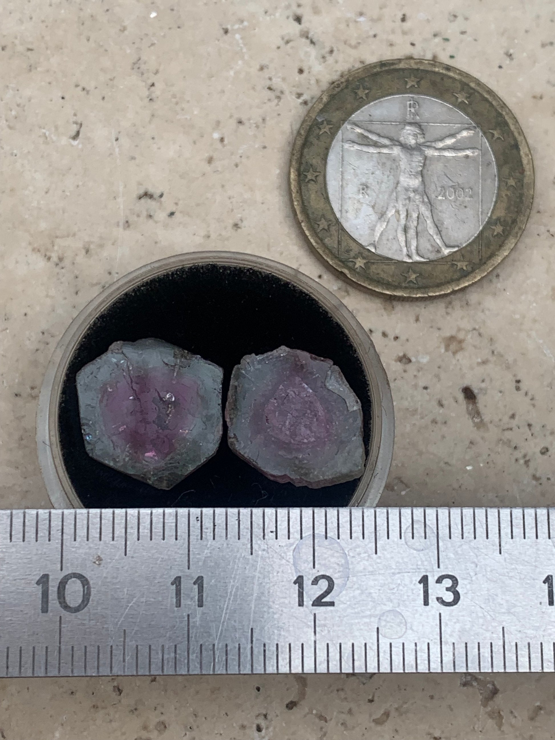 Tourmaline melon d'eau/ pastèque, vendu par paire, 14mm de diamètre x 2 - 8,5 carats. Parfait en bijouterie, collection ,exposition...