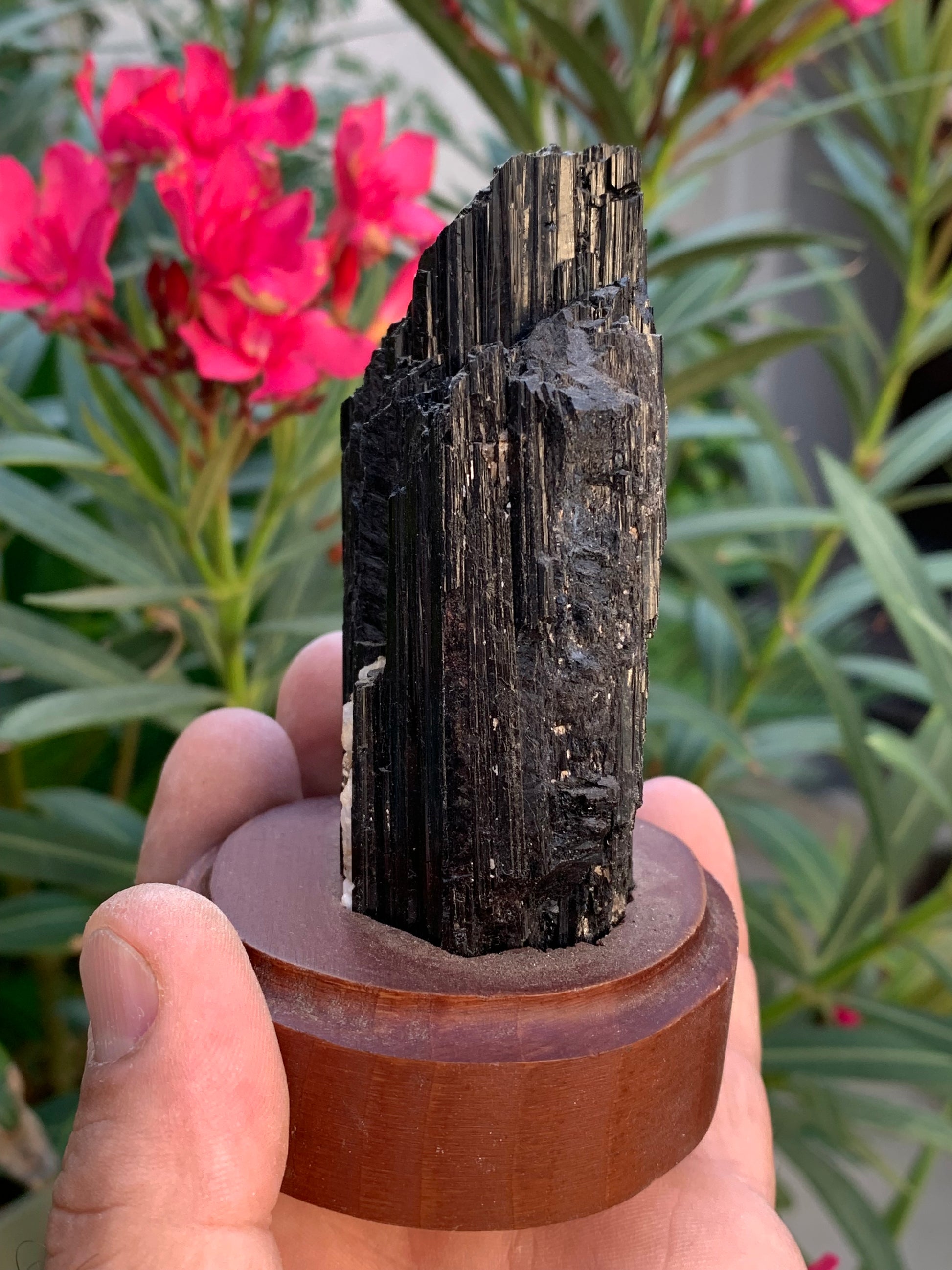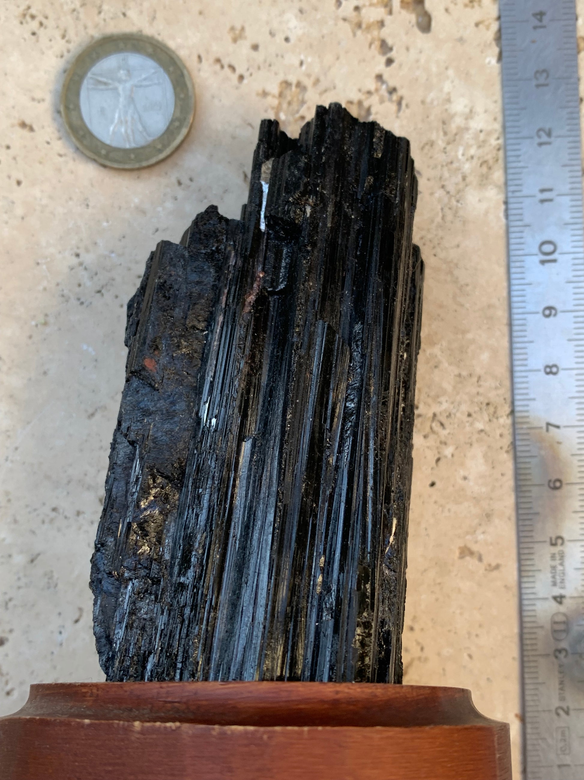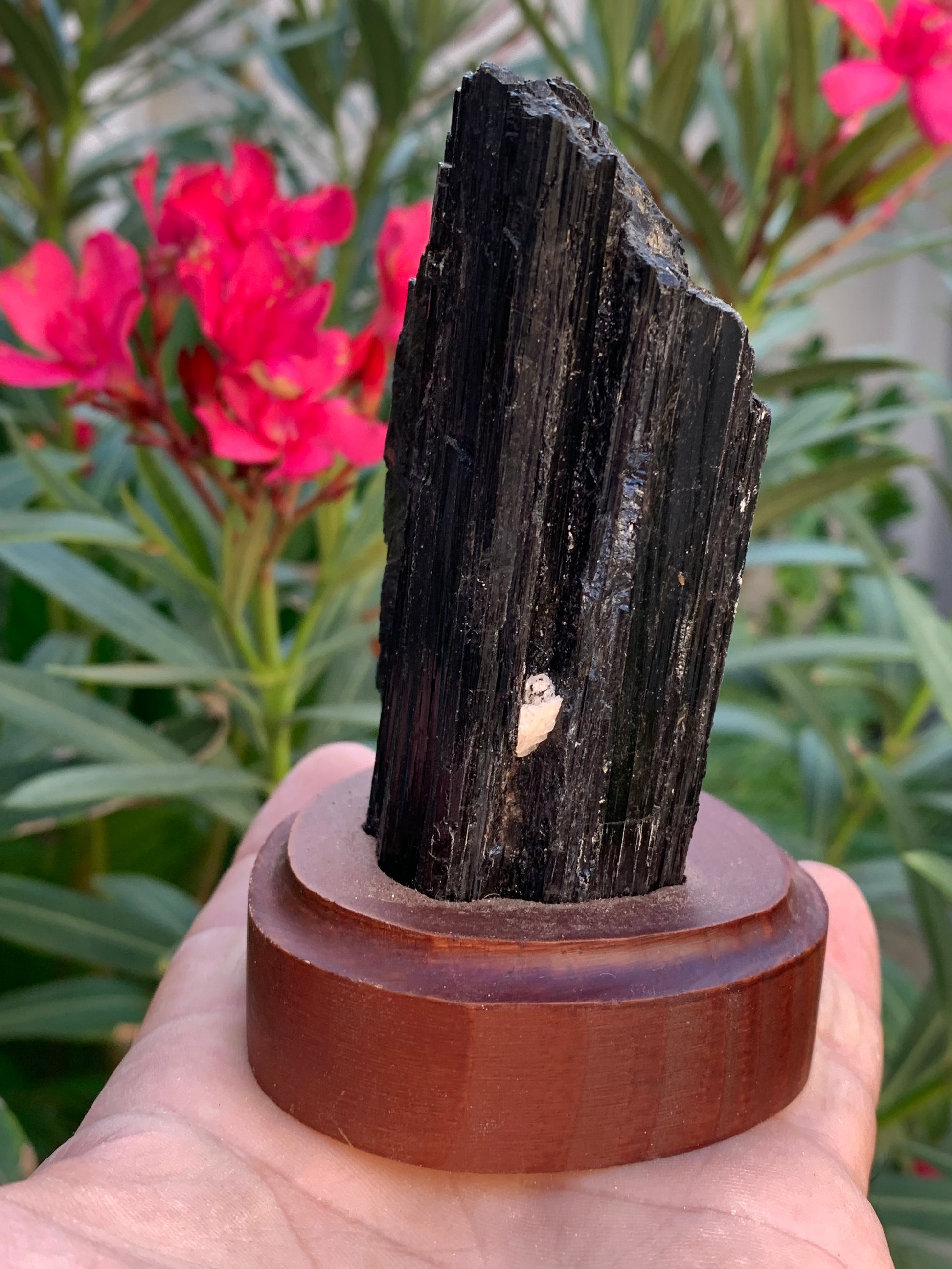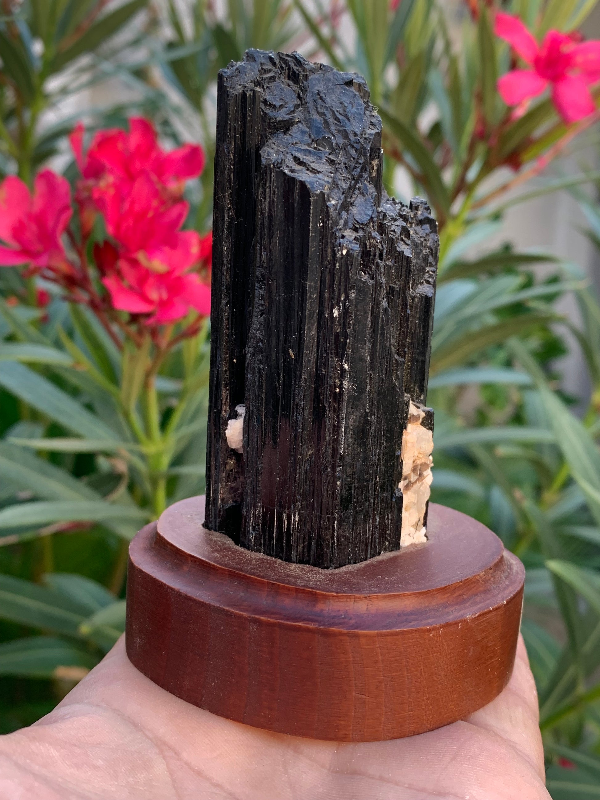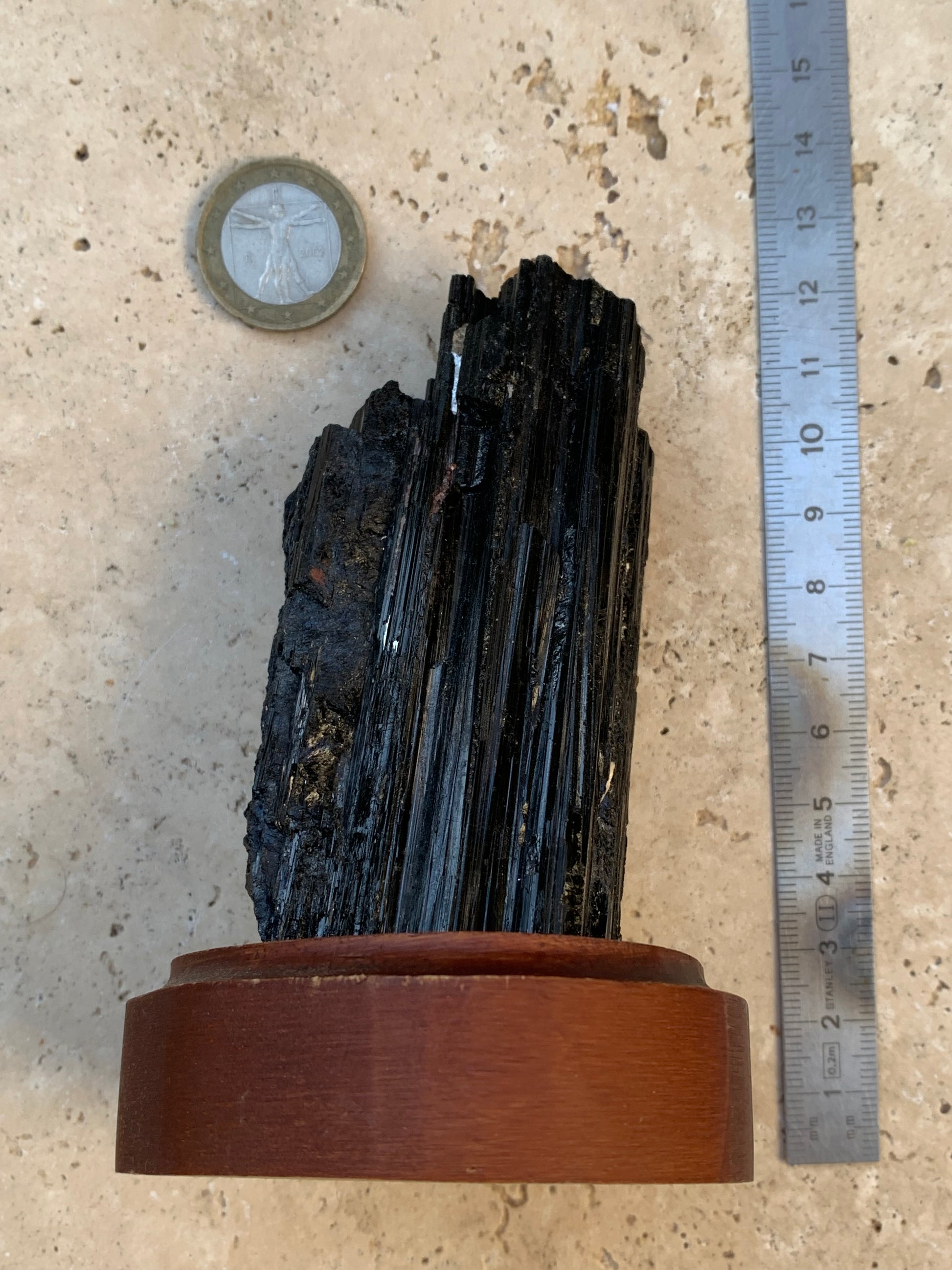 Tourmaline noire sur socle en bois, spécimen naturel de 110 x 74 x 69 mm - 330 grammes environ. Une merveille de la nature prêt à poser !