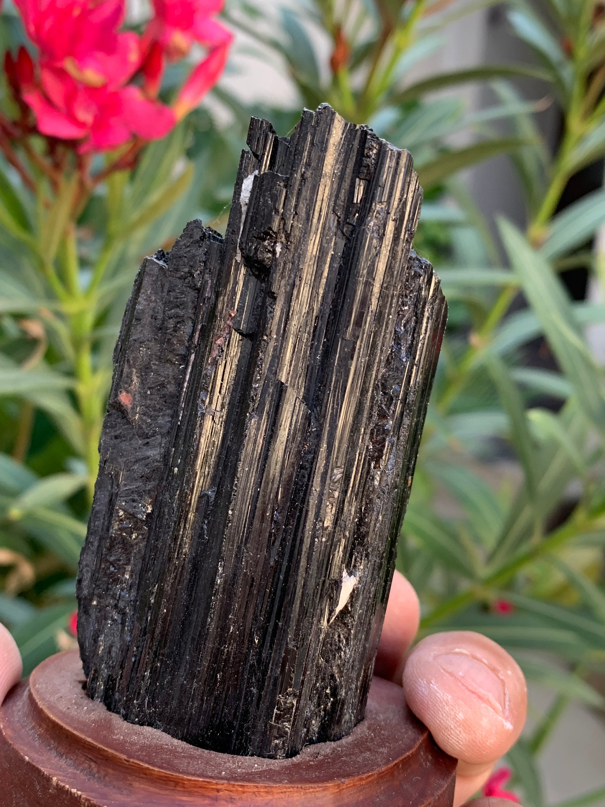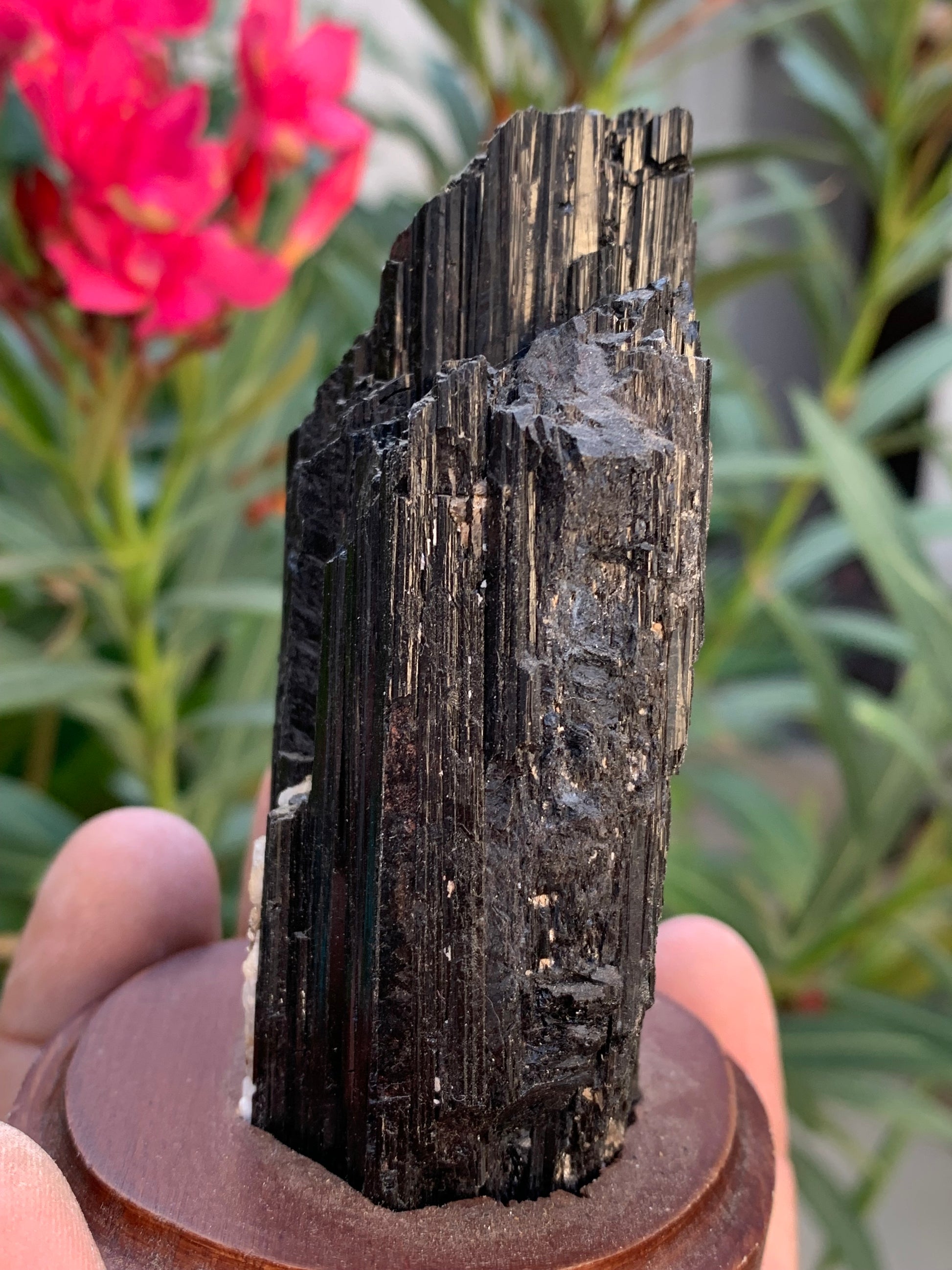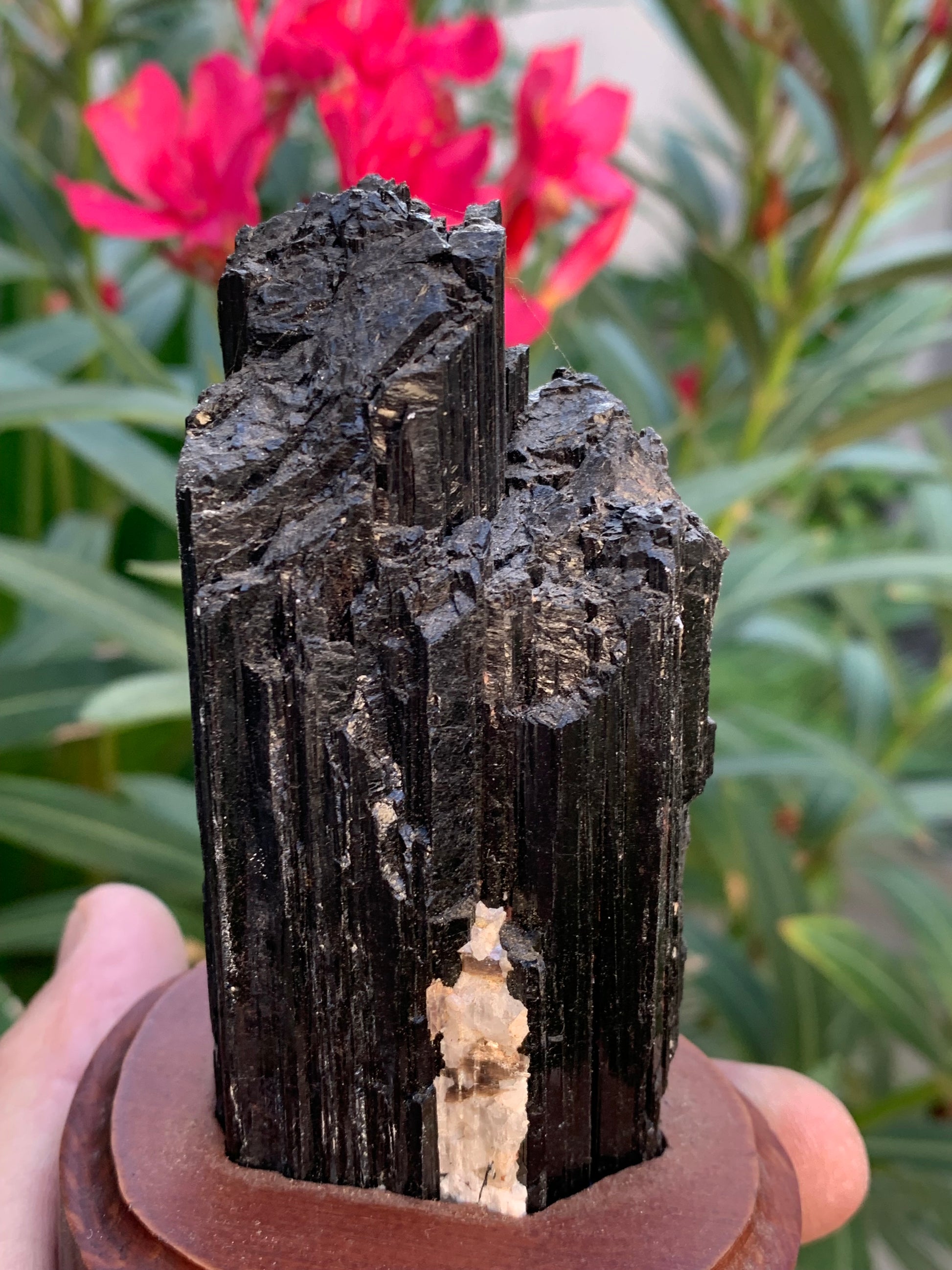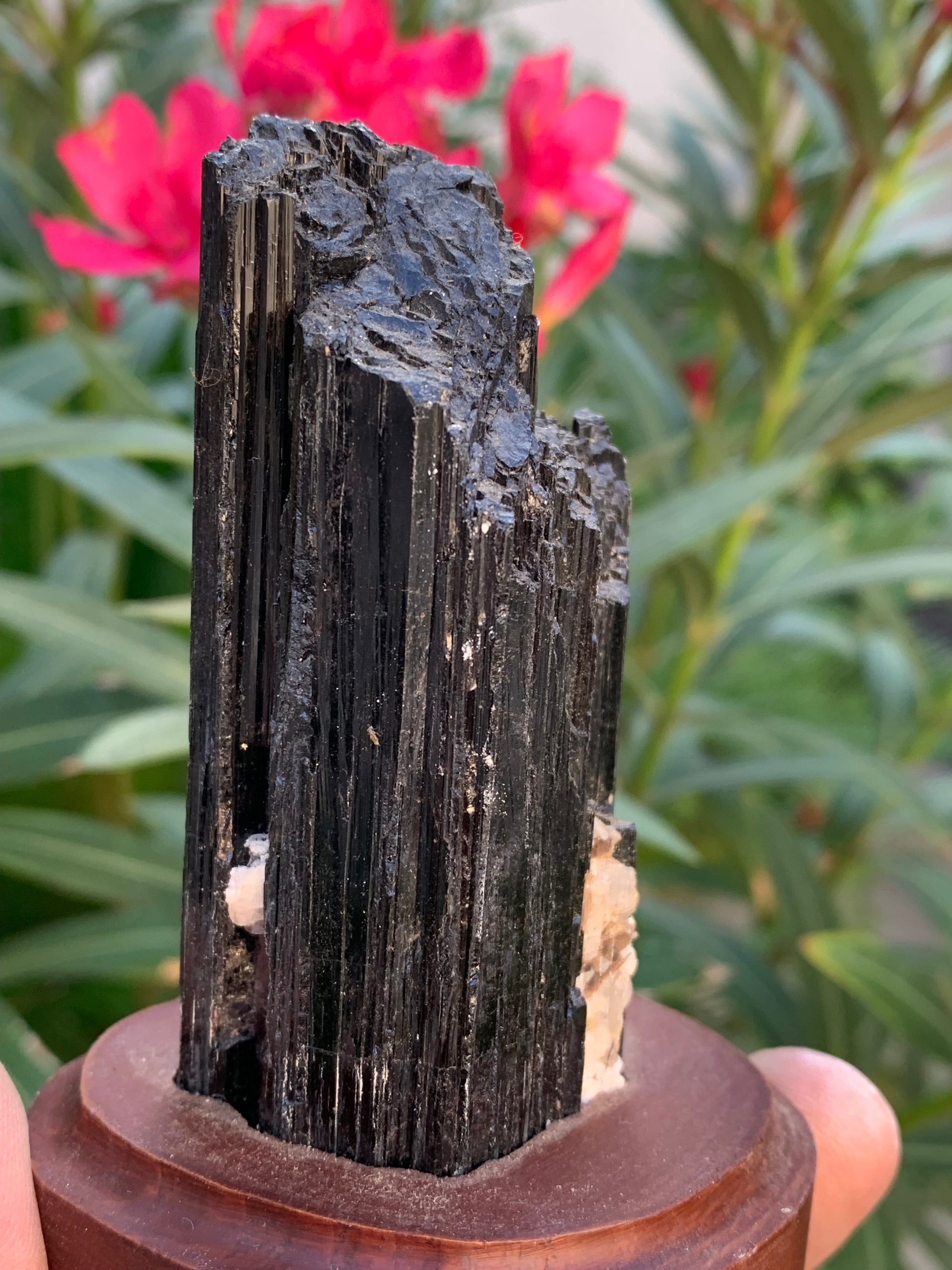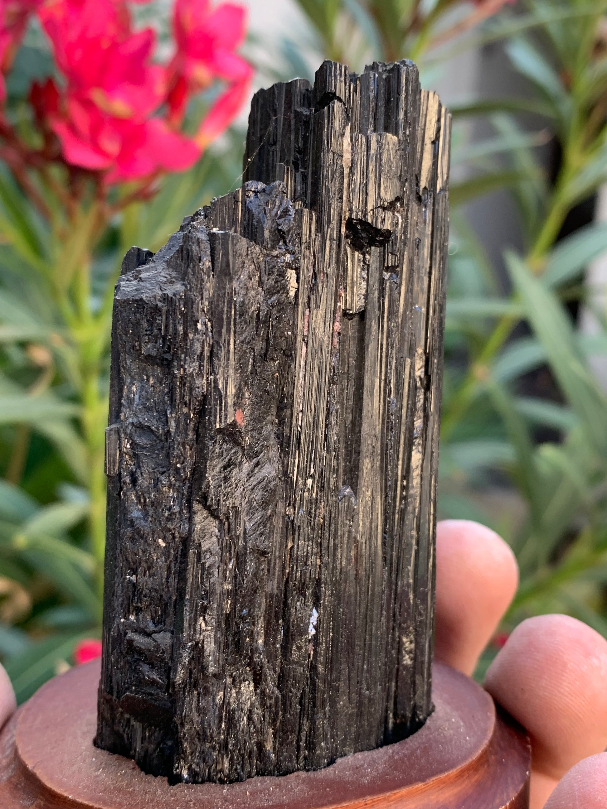 Tourmaline noire sur socle en bois, spécimen naturel de 110 x 74 x 69 mm - 330 grammes environ. Une merveille de la nature prêt à poser !