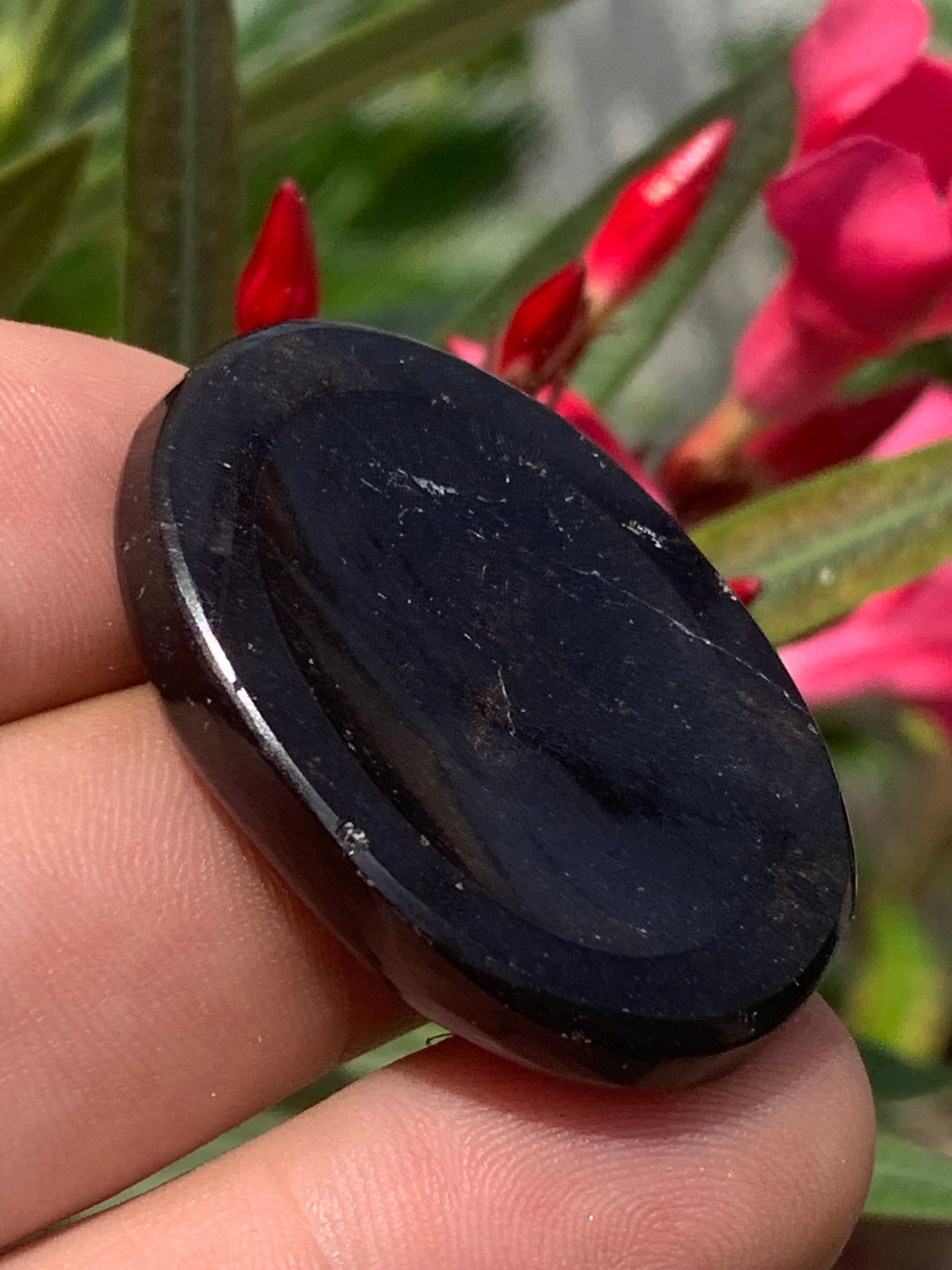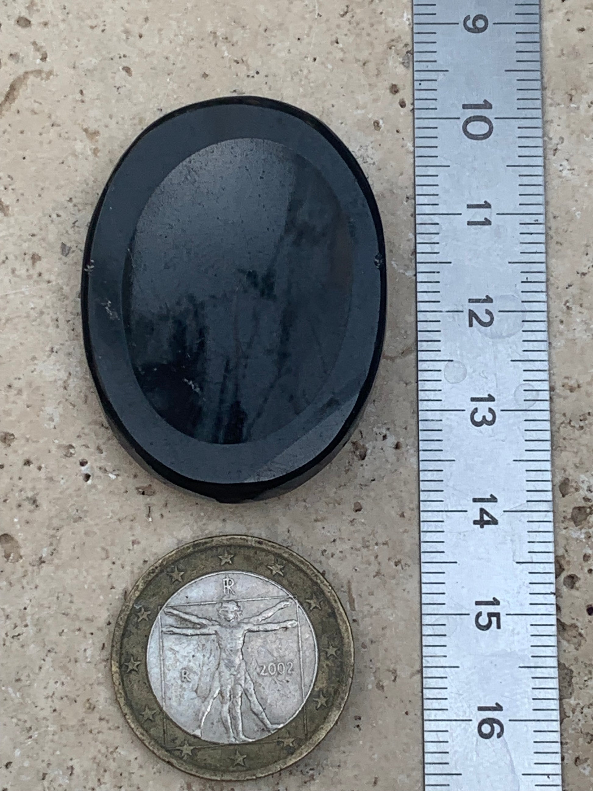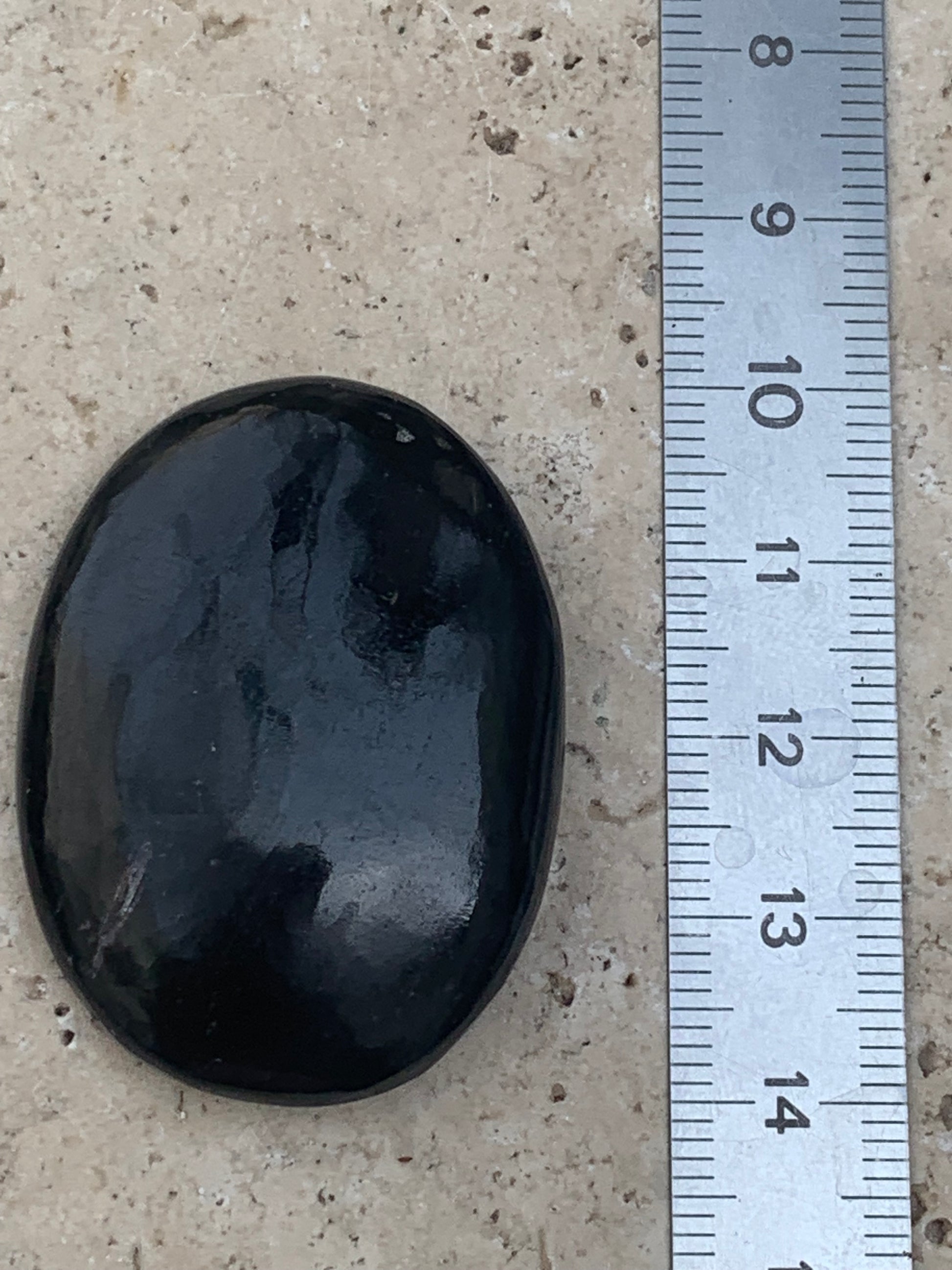 Tourmaline noire, galet de massage de 40 x 30 x 10 mm - 18,5 grammes. Beau galet incurvé pour massage ou pour la poche !