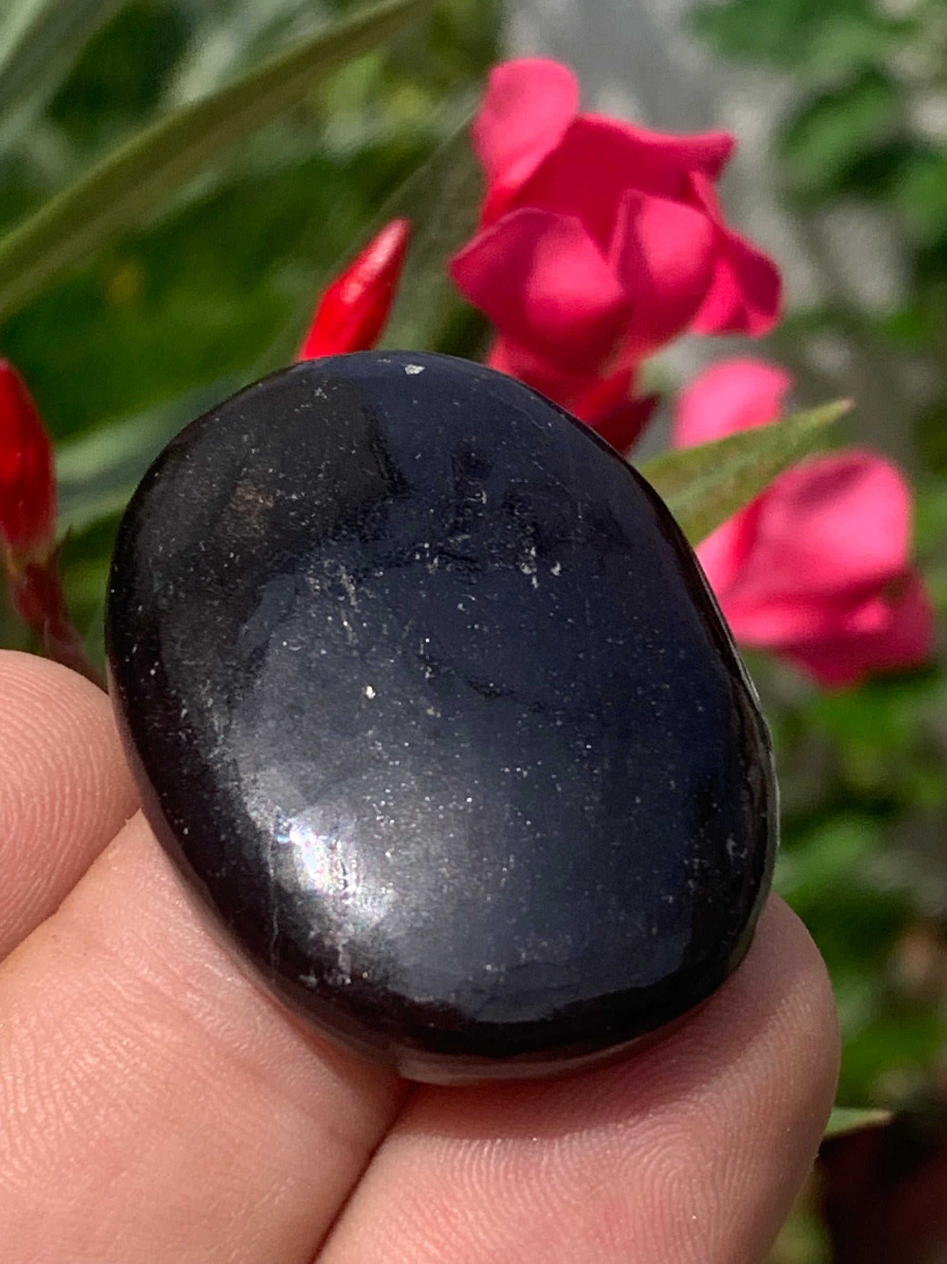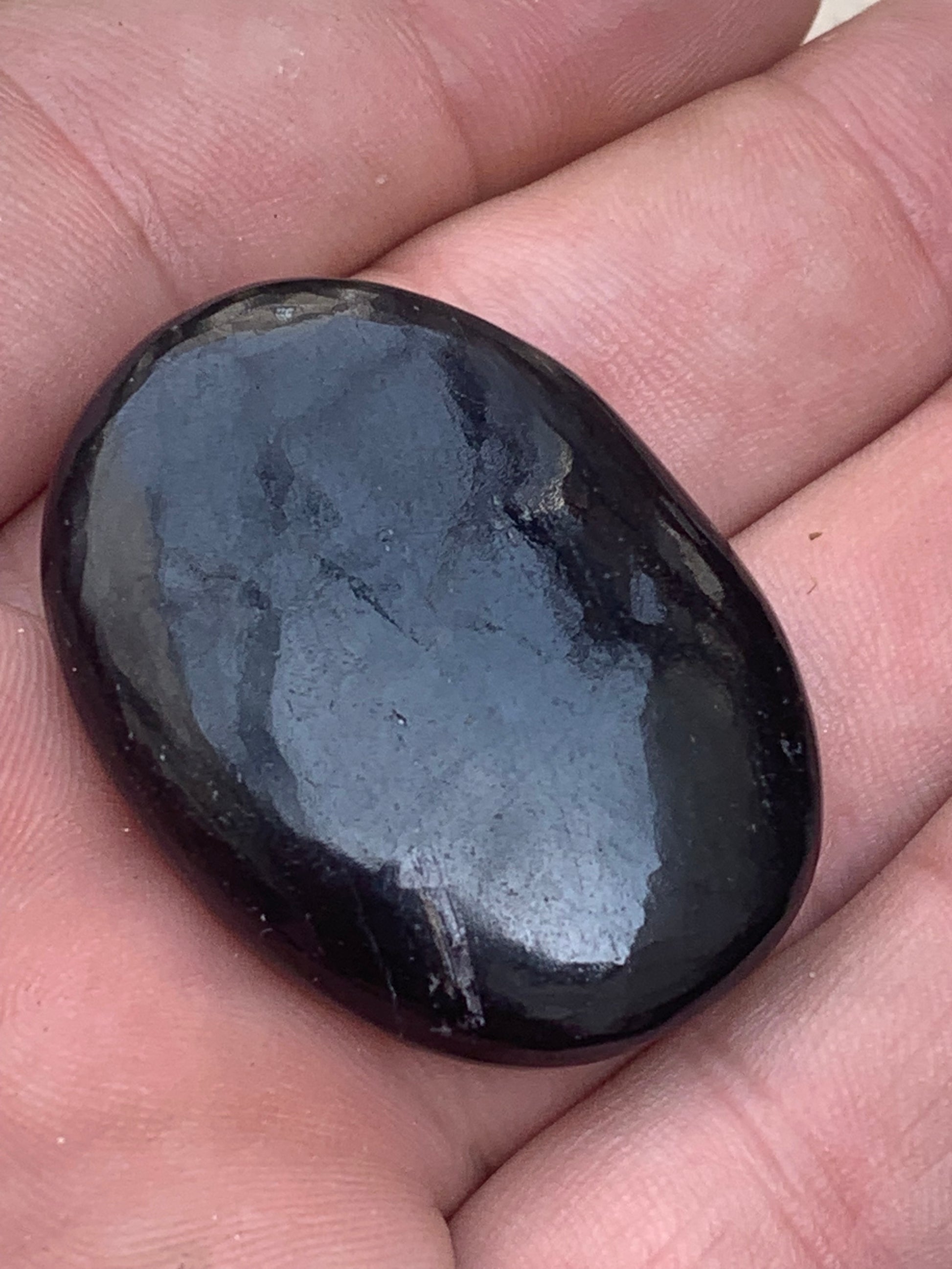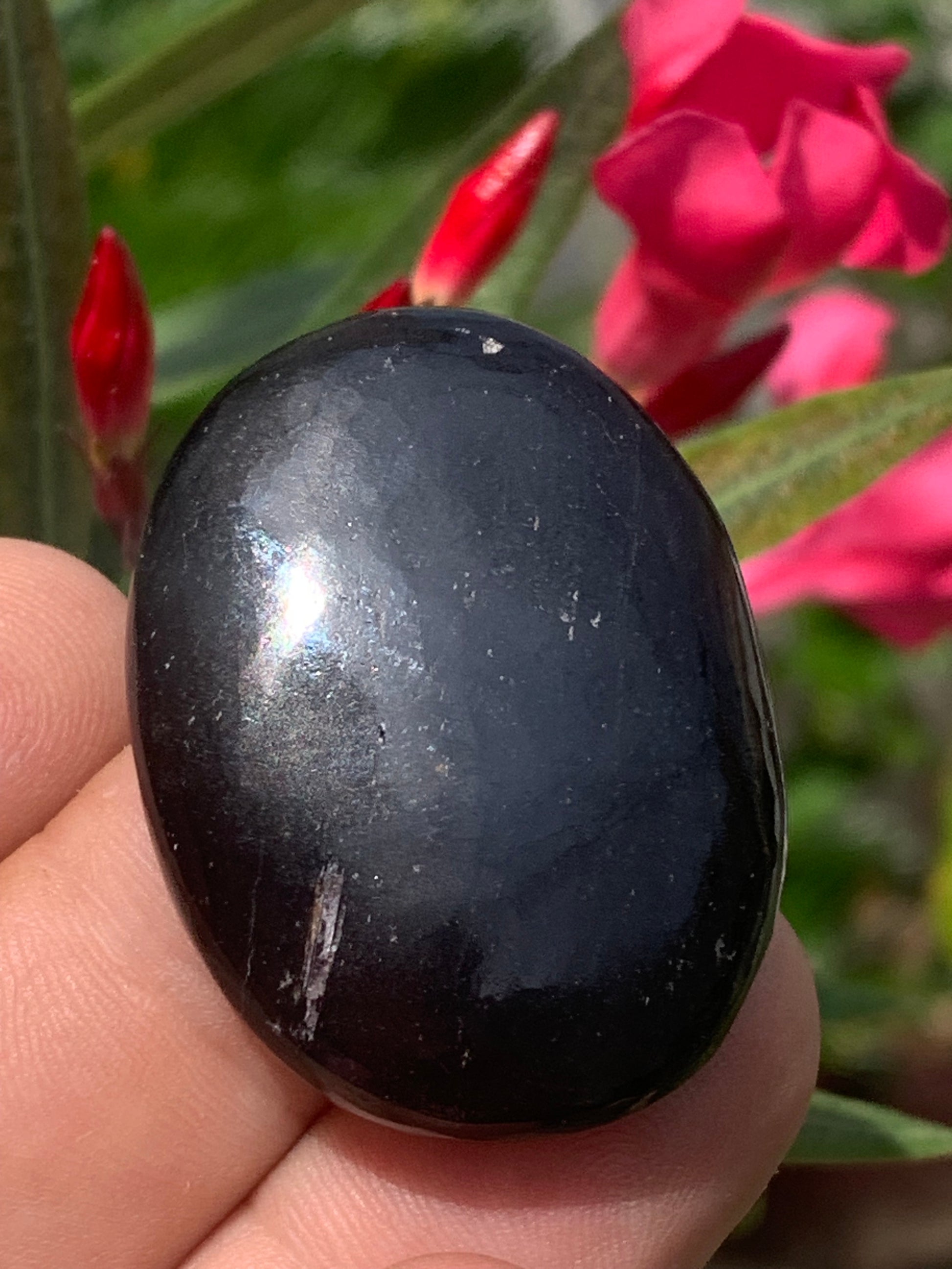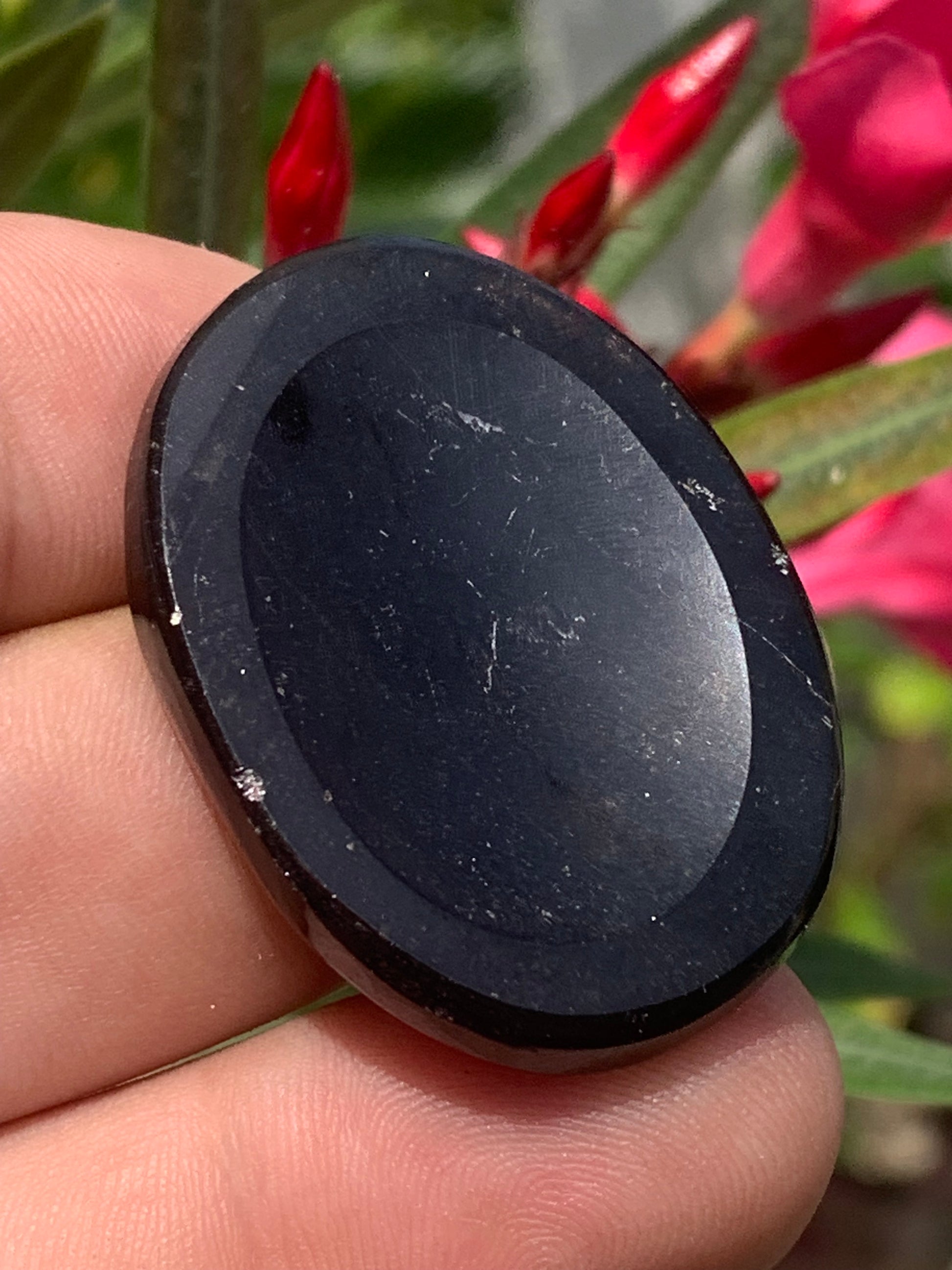 Tourmaline noire, galet de massage de 40 x 30 x 10 mm - 18,5 grammes. Beau galet incurvé pour massage ou pour la poche !
