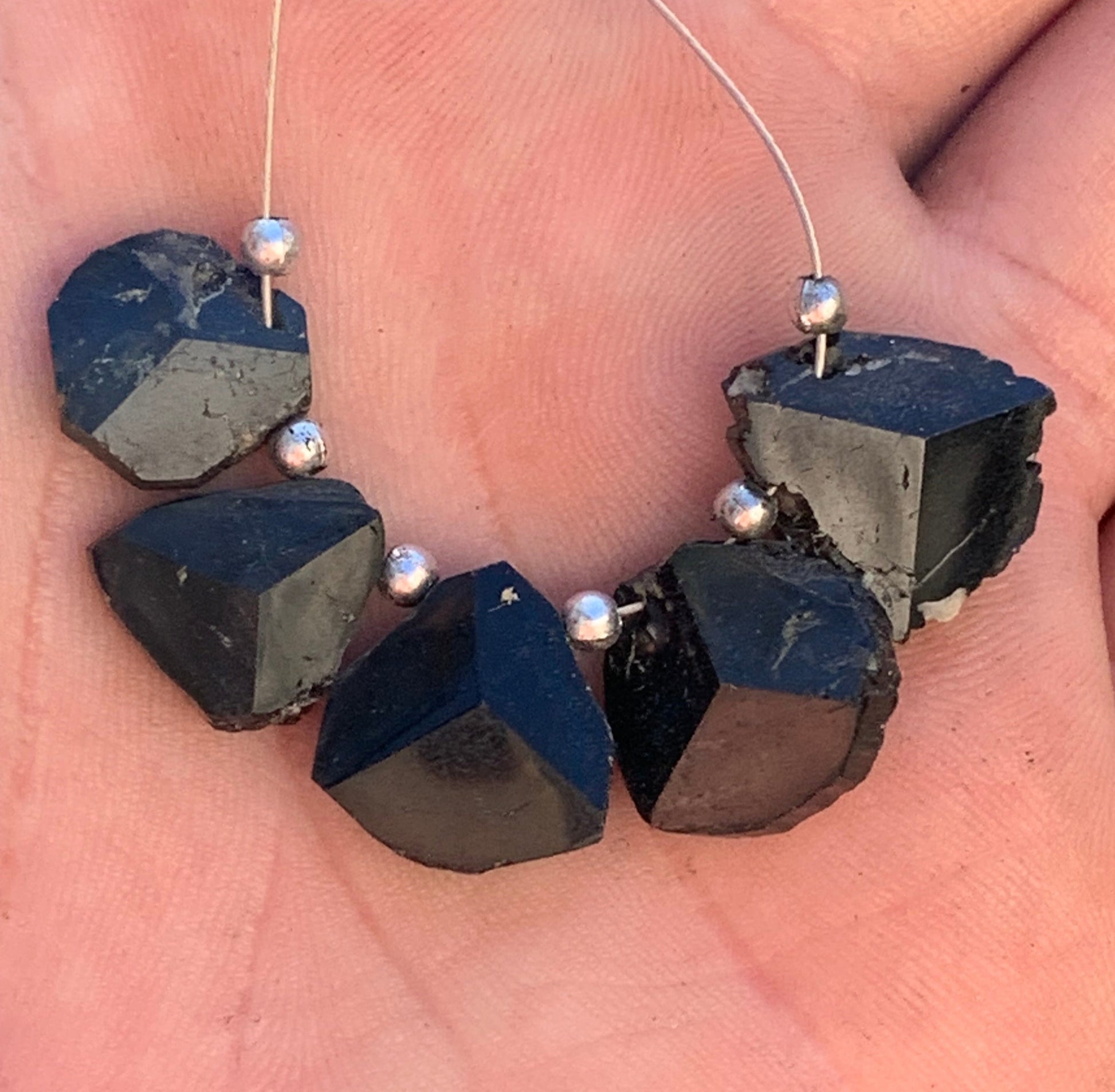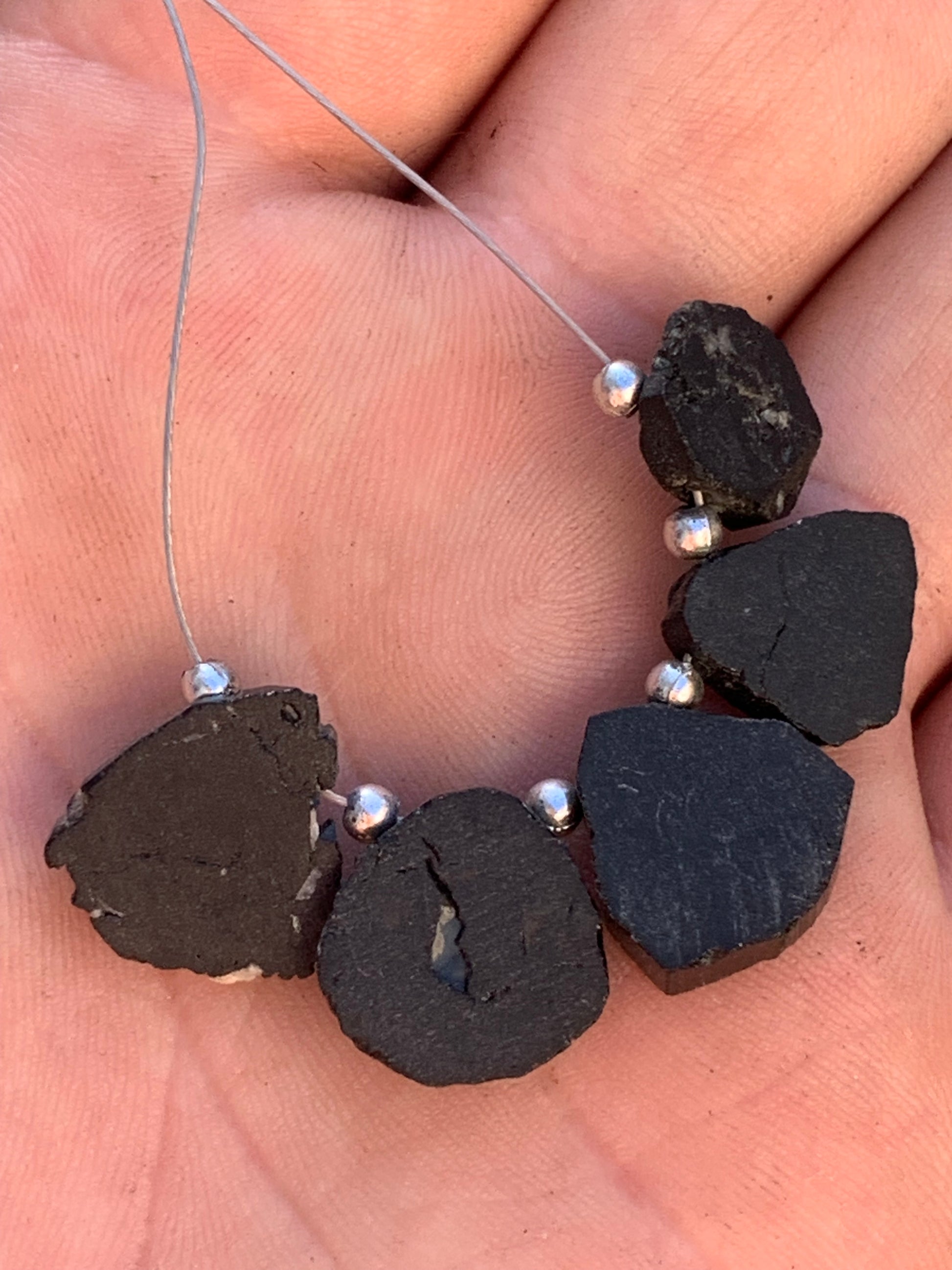 Tourmaline noire, perles de têtes à 3 faces naturelles, vendus en lot ou à l'unité, de 14mm de diamètre x 5 d'épaisseur en moyenne - 7,3 grammes (lot). Parfait en collection, bijouterie, exposition...