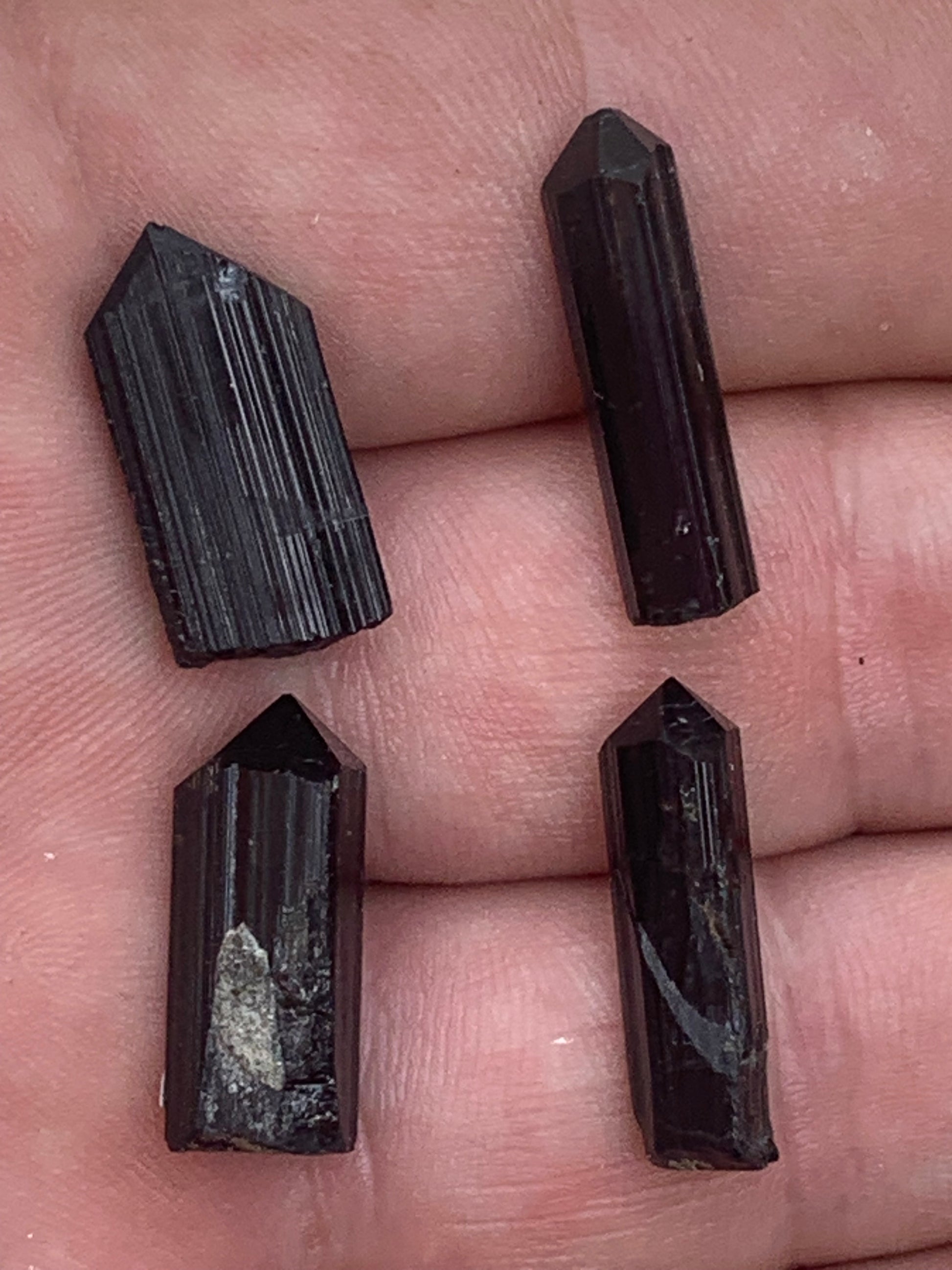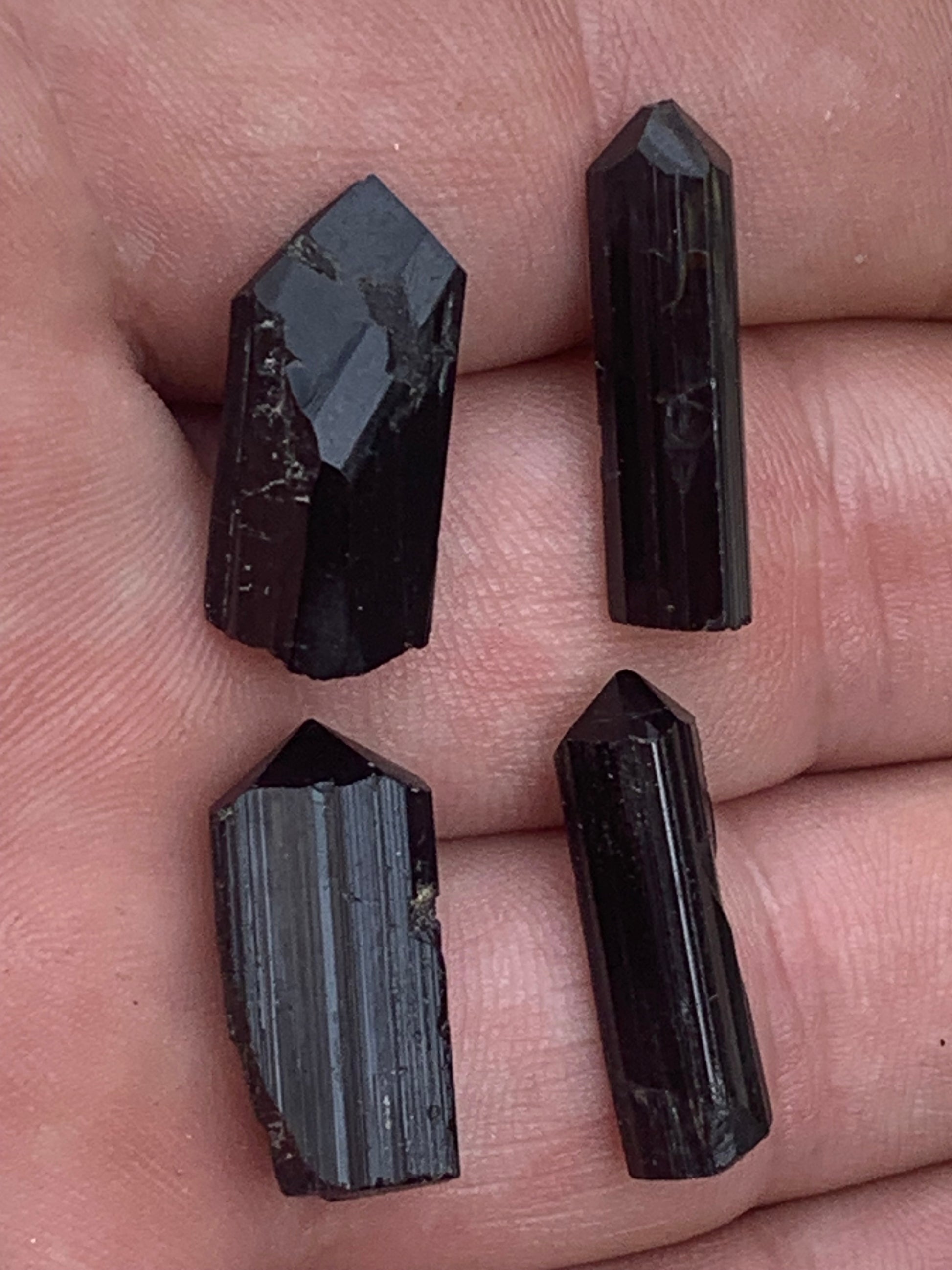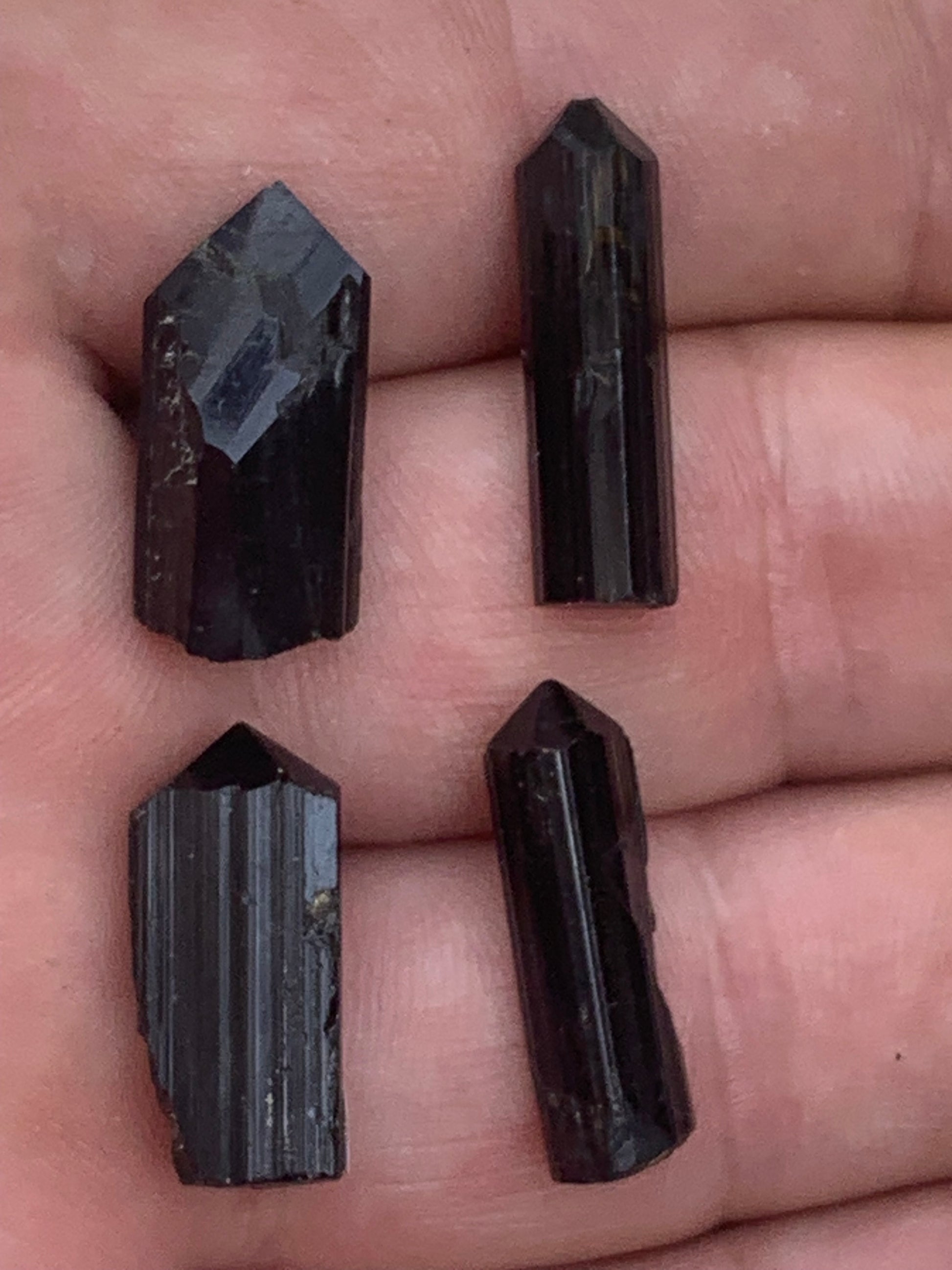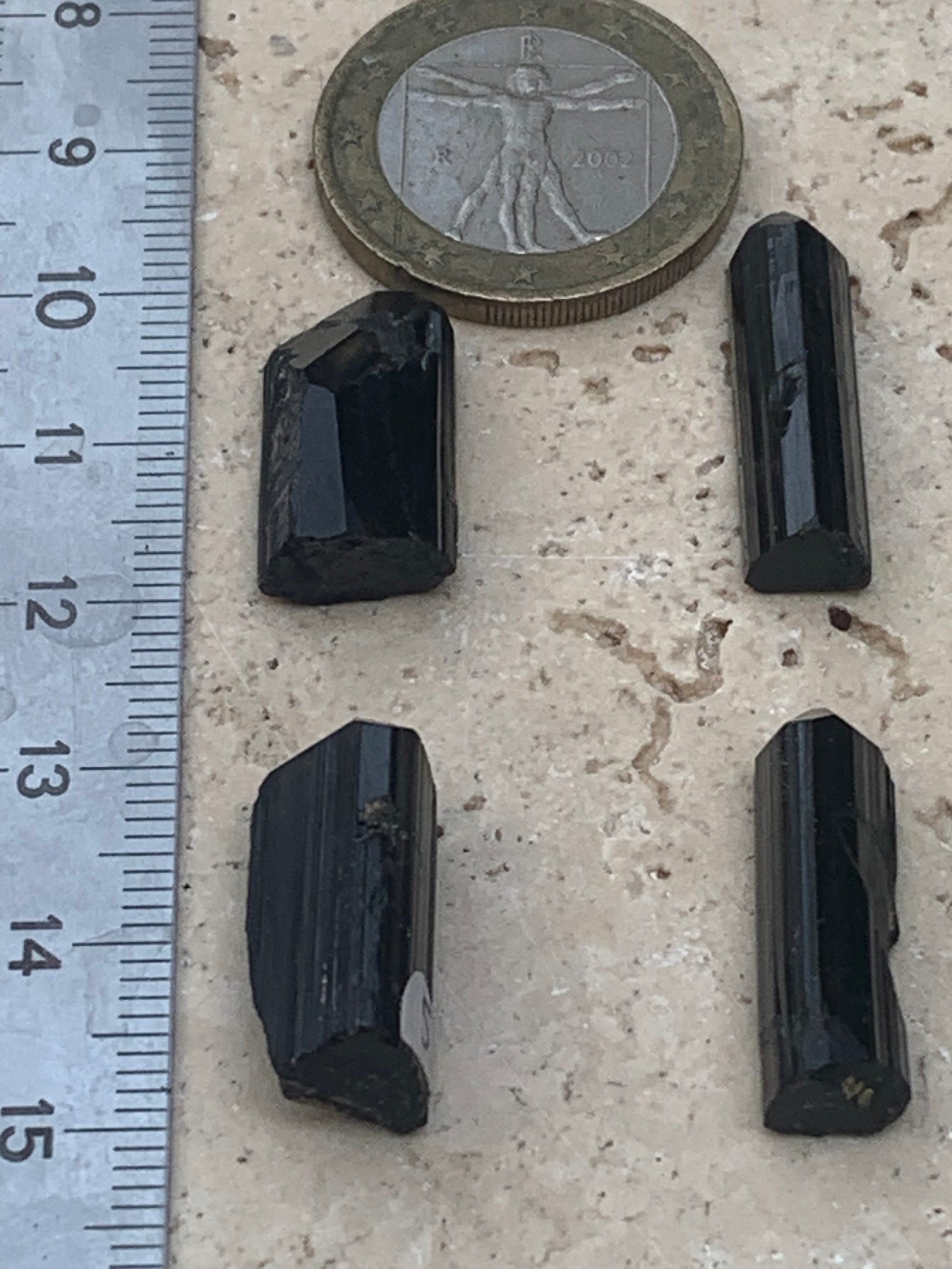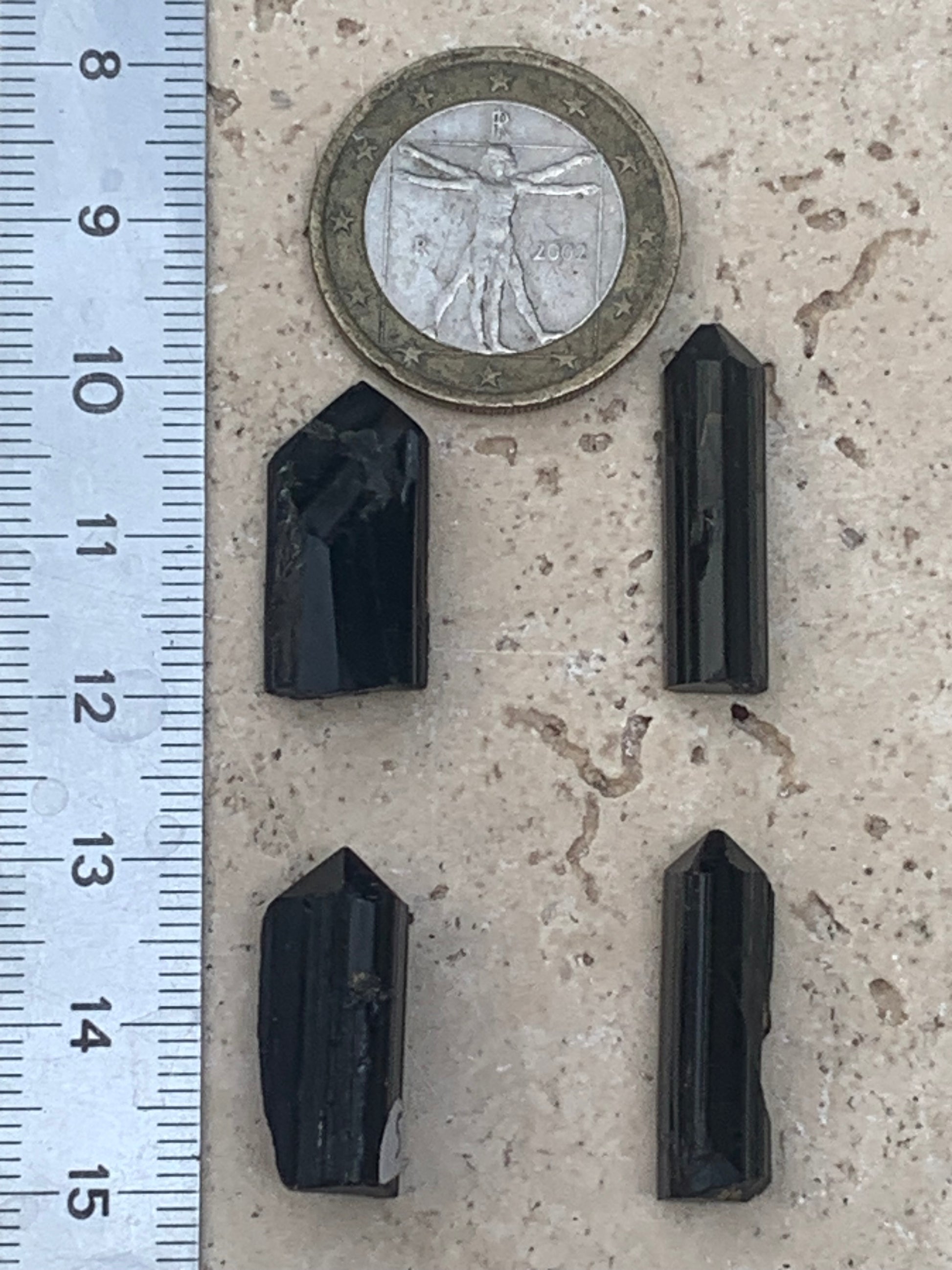 Tourmaline noire, pointes naturelles à 3 faces, 4 pièces au choix, de 20 x 6 x 5 mm - 2 grammes par pièce environ !