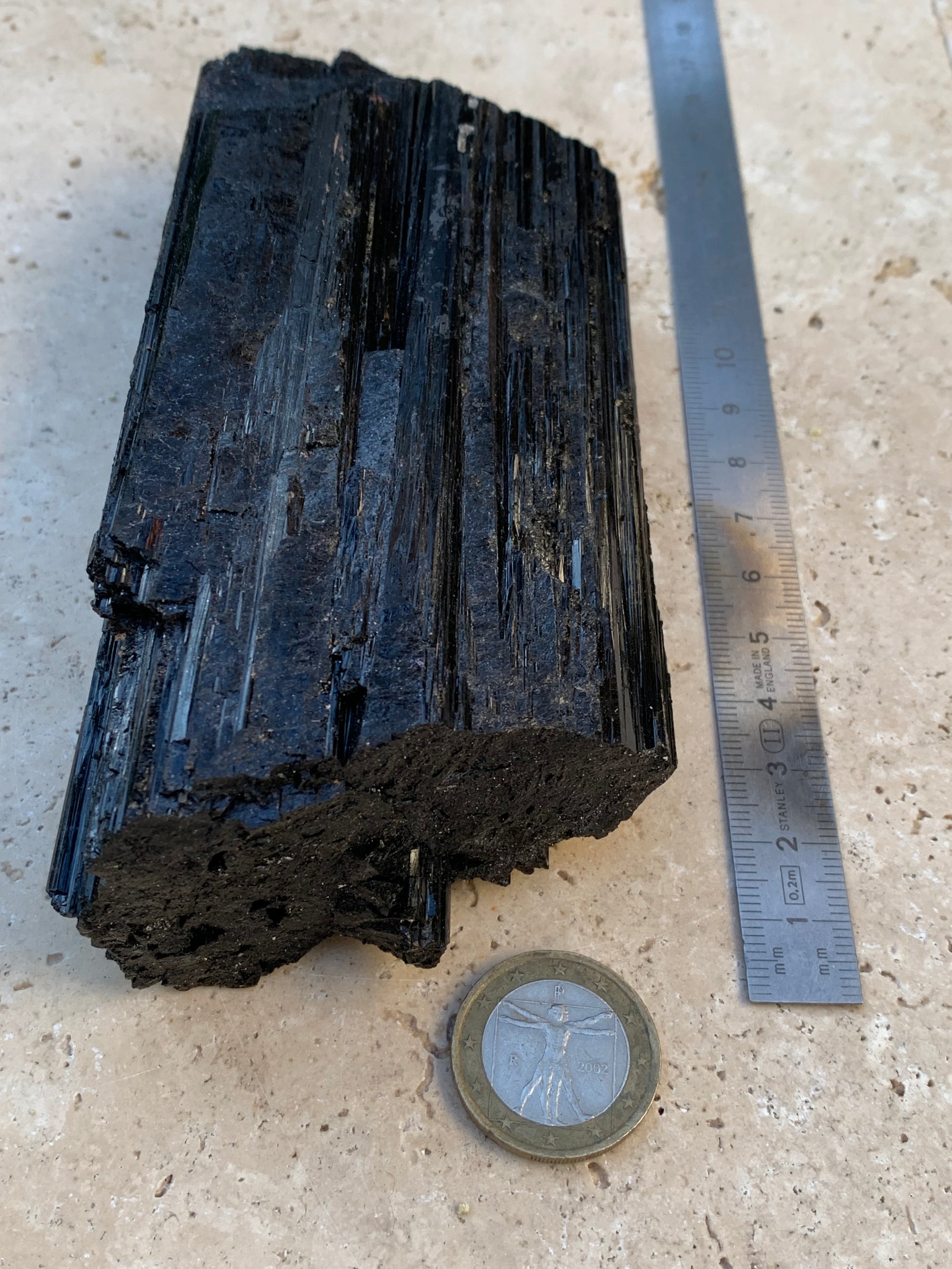 Tourmaline noire, spécimen naturel de 137 x 64 x 40 mm - 568 grammes. Une très belle pièce de belle taille !