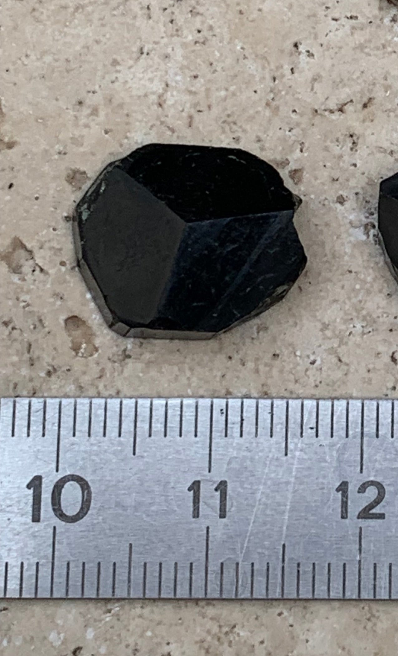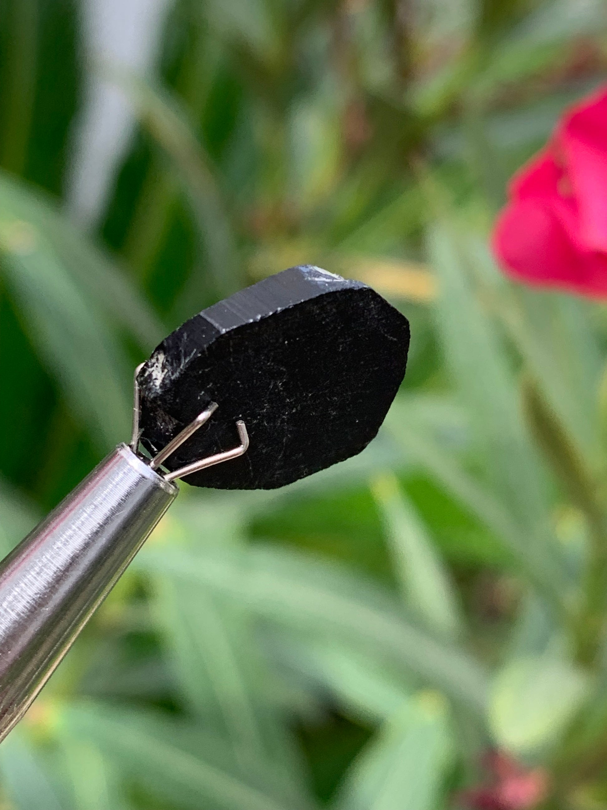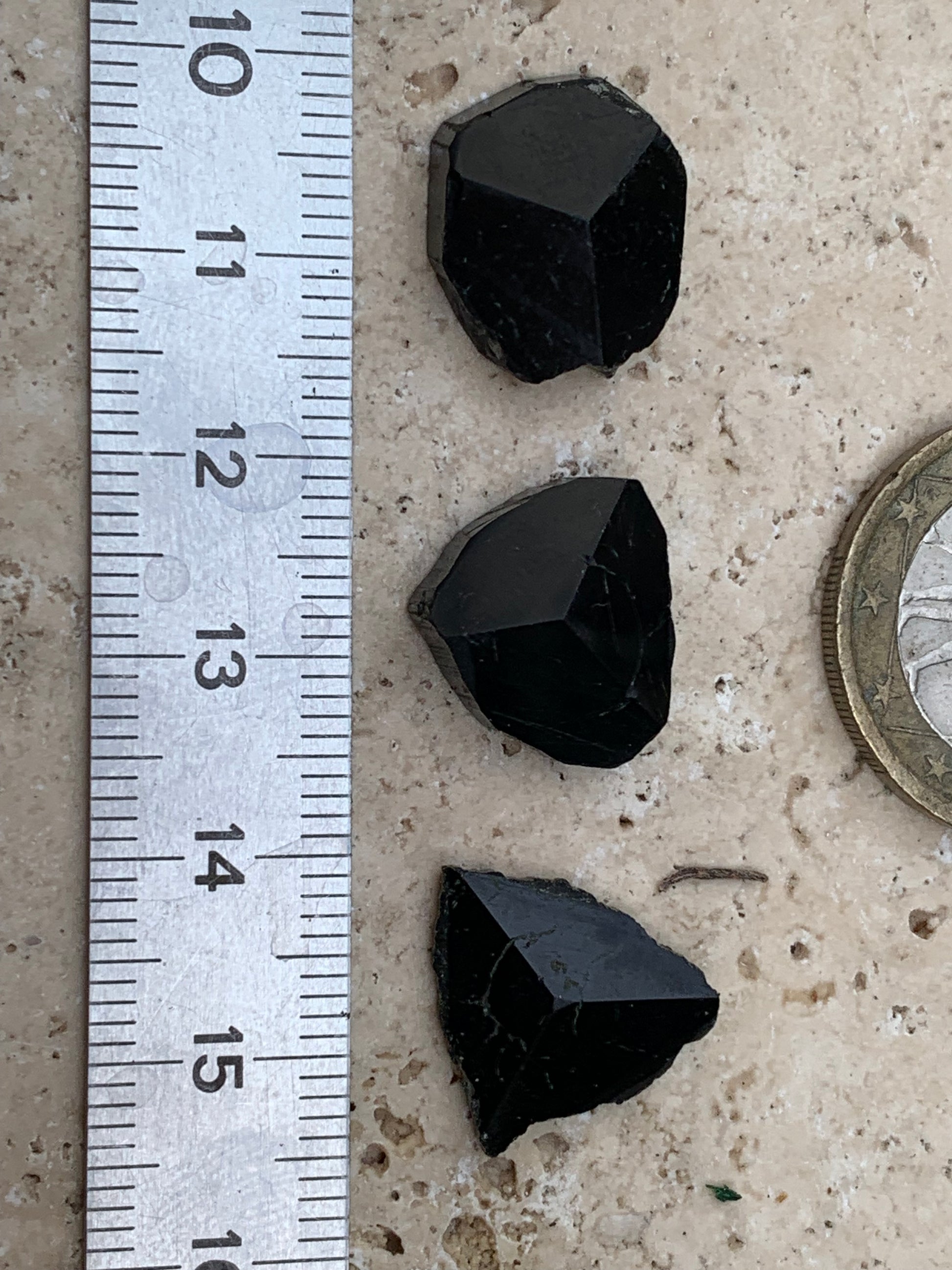Tourmaline noire, tranches naturelles/ cabochons à 3 faces, 3 pièces au choix, de 14 x 14 x 5 mm - 1,2 à 1,7 gramme par pièce !