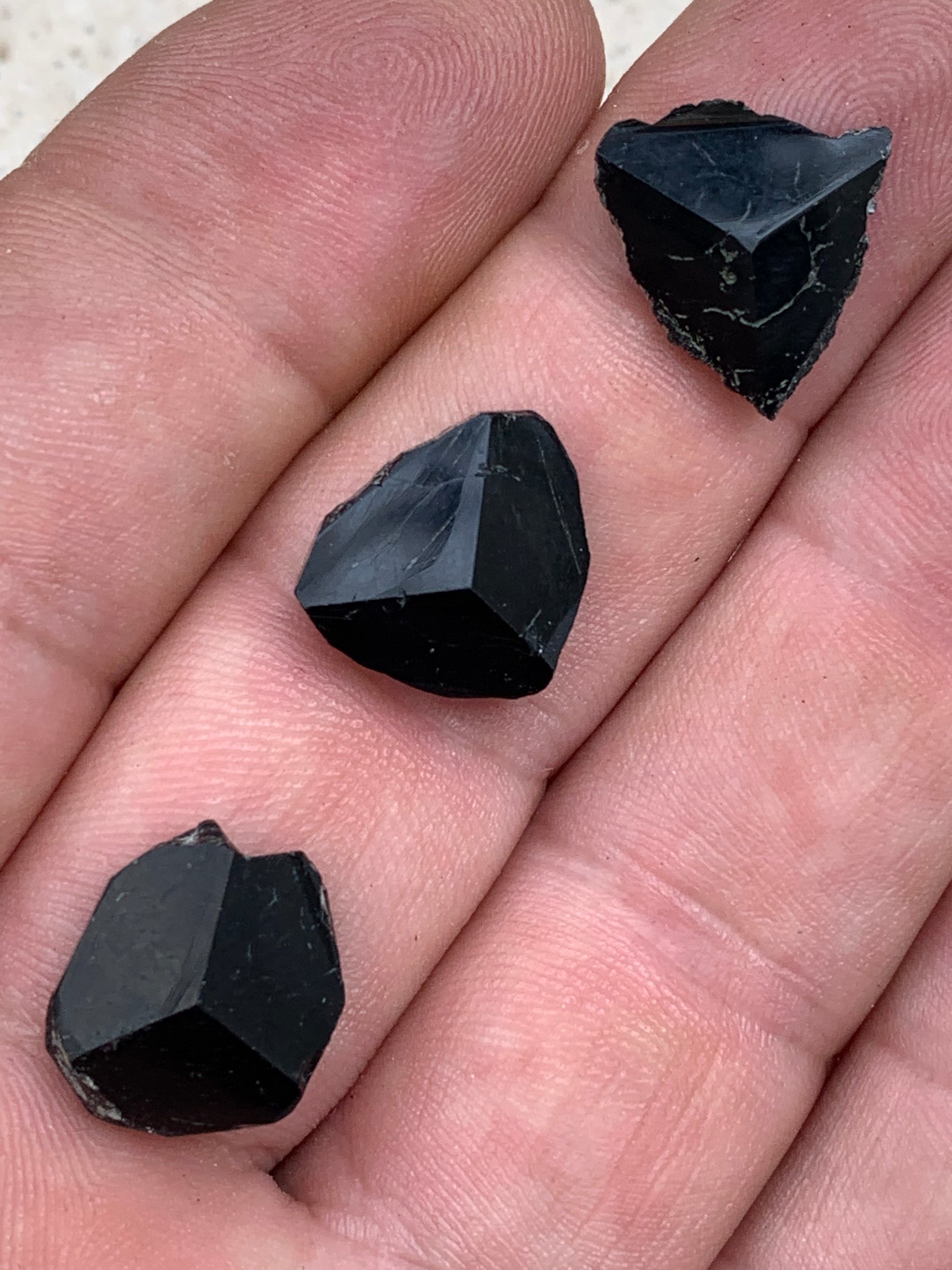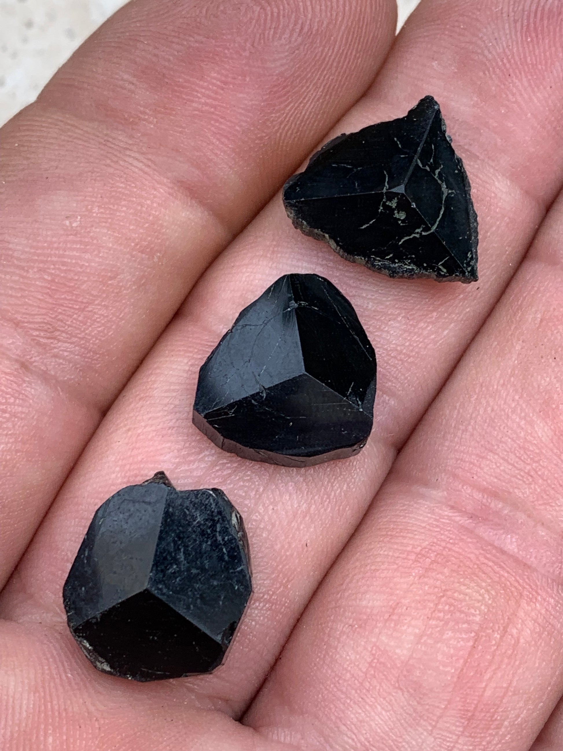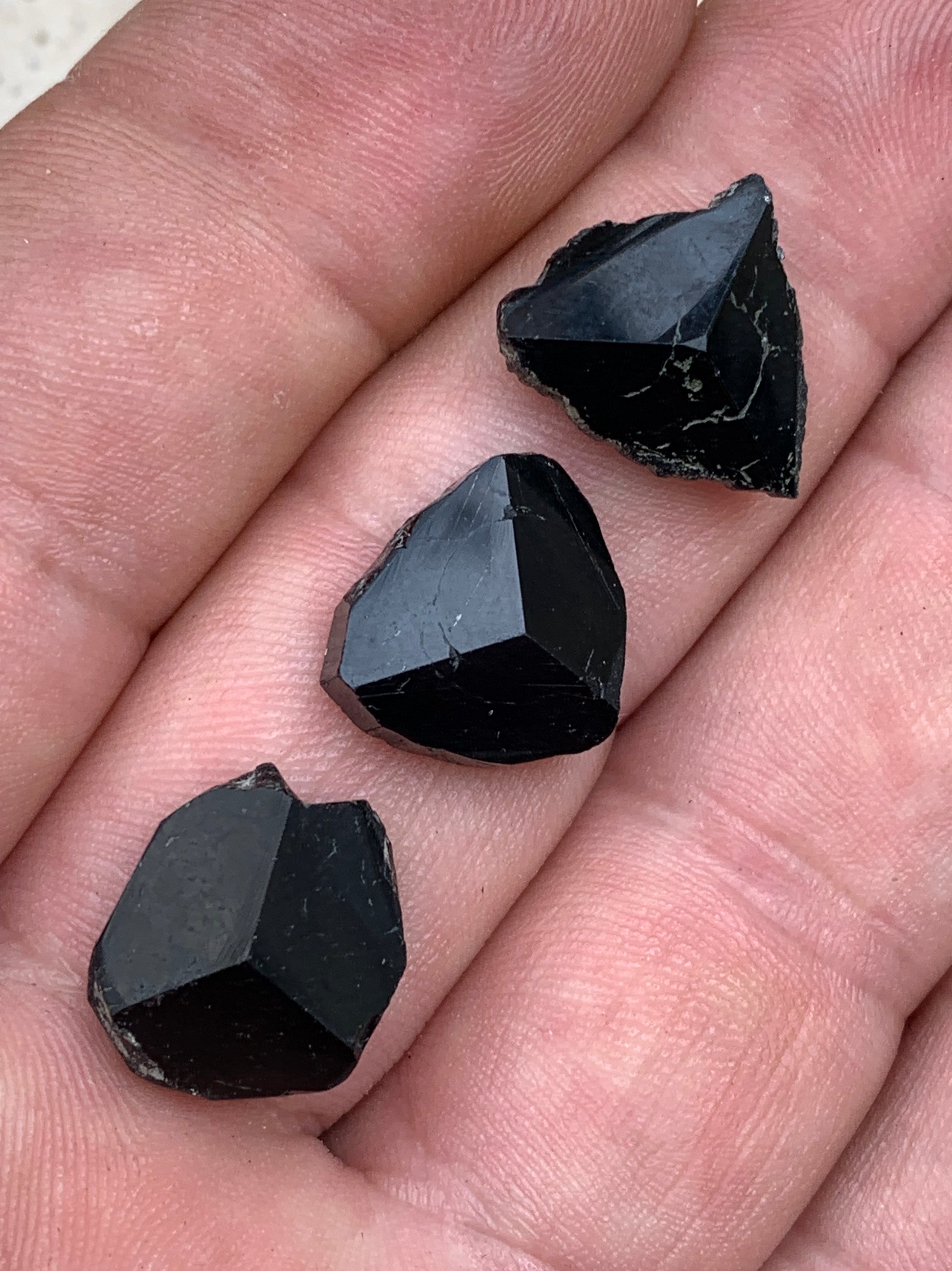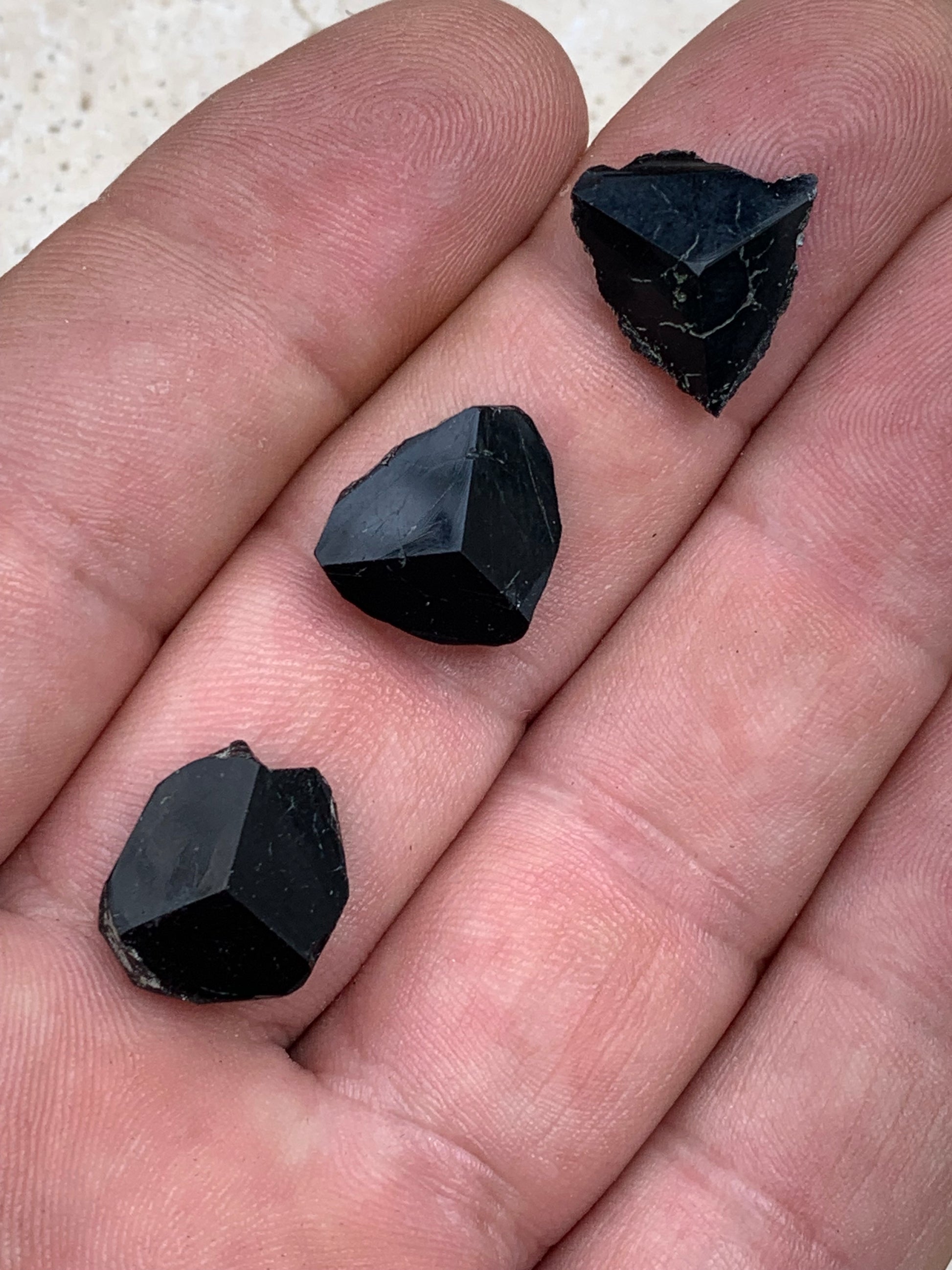 Tourmaline noire, tranches naturelles/ cabochons à 3 faces, 3 pièces au choix, de 14 x 14 x 5 mm - 1,2 à 1,7 gramme par pièce !
