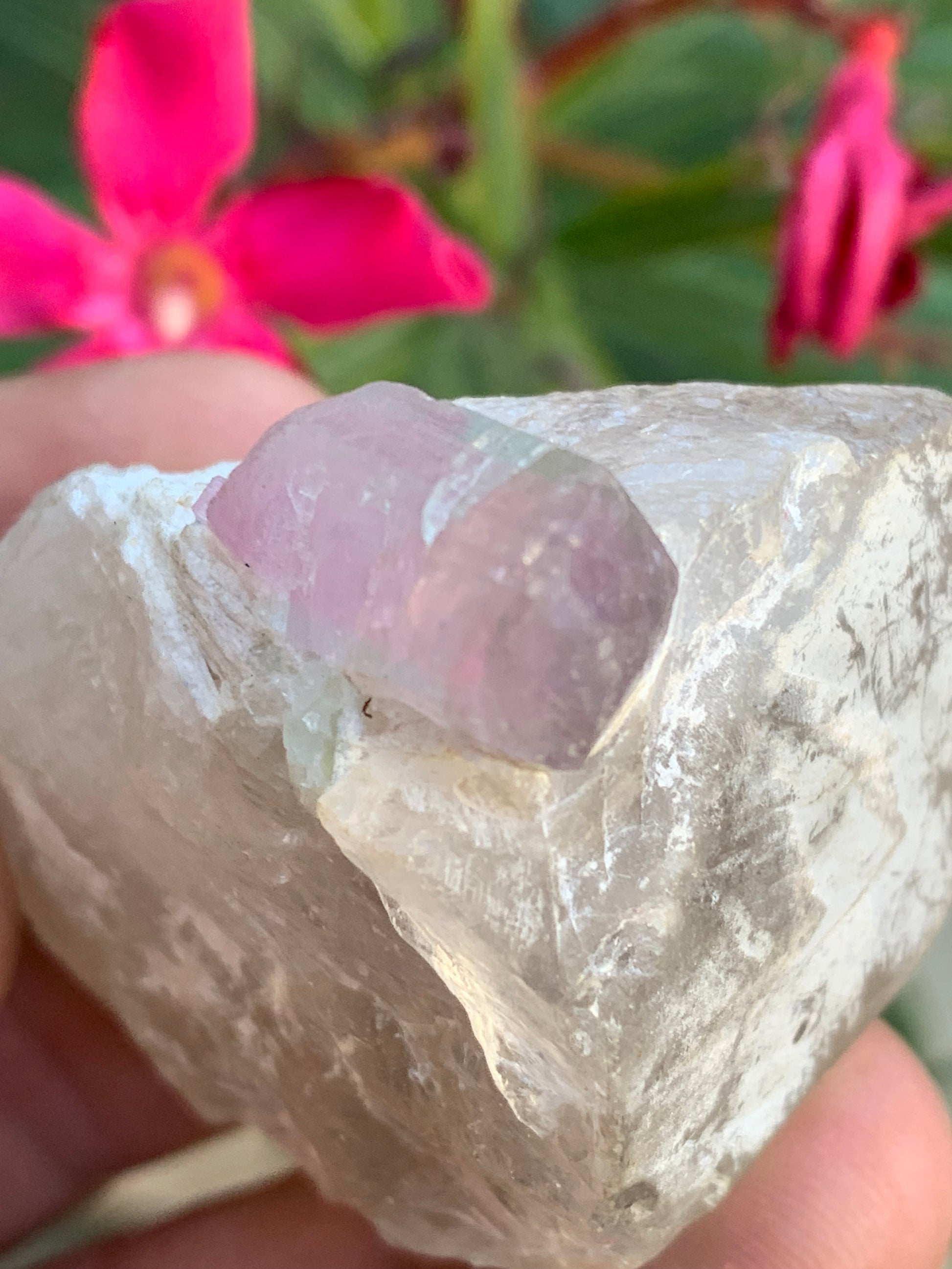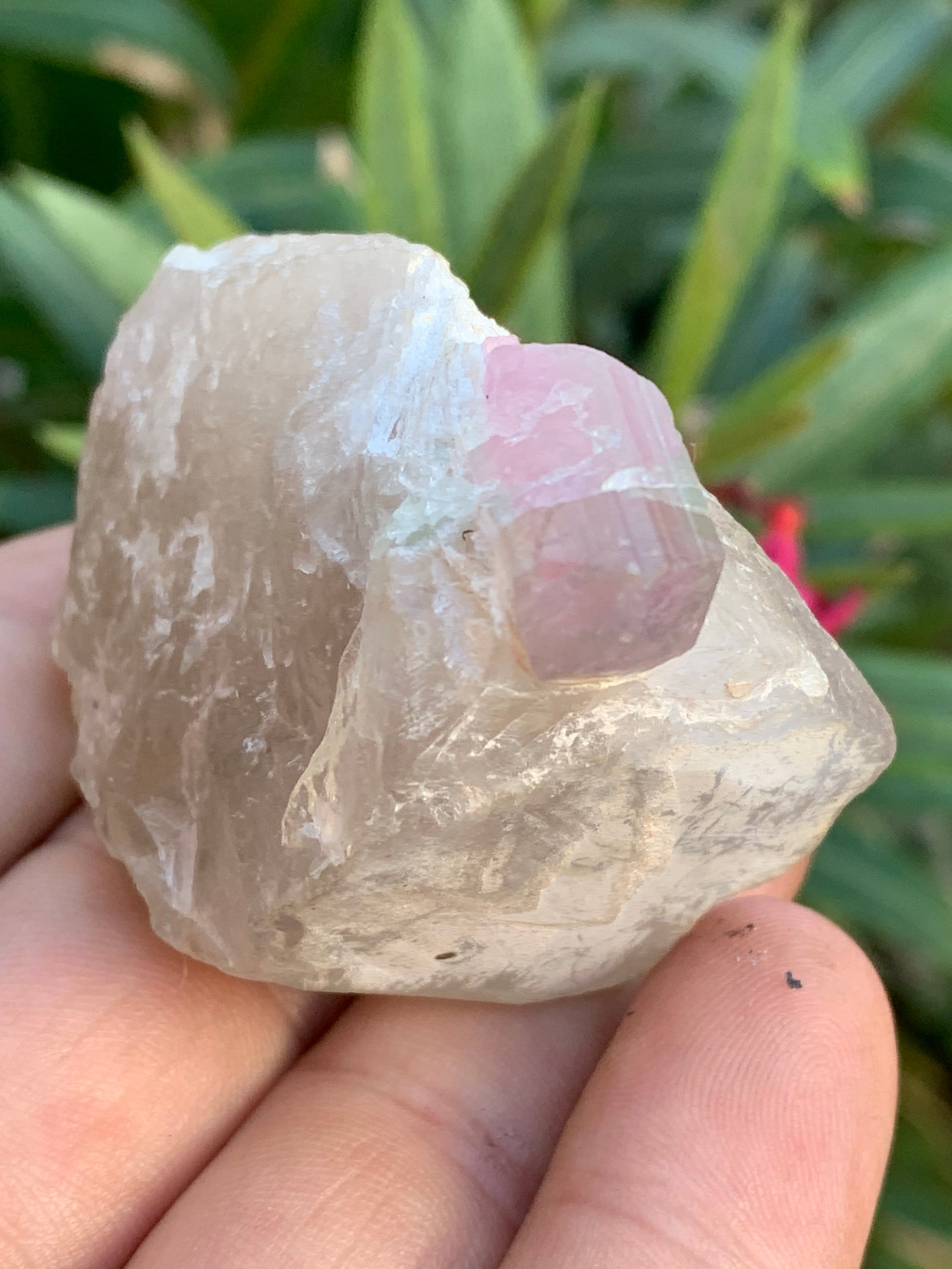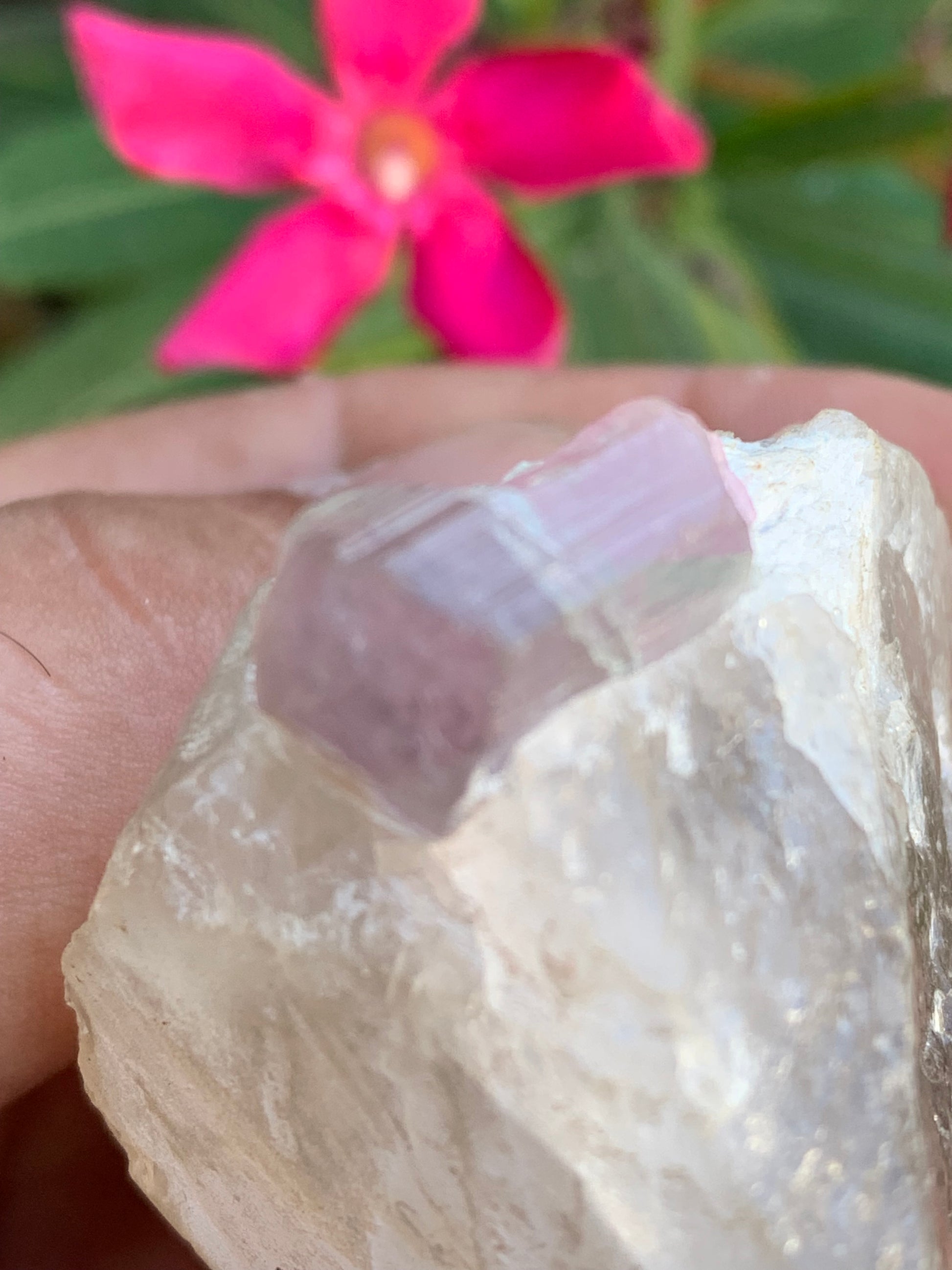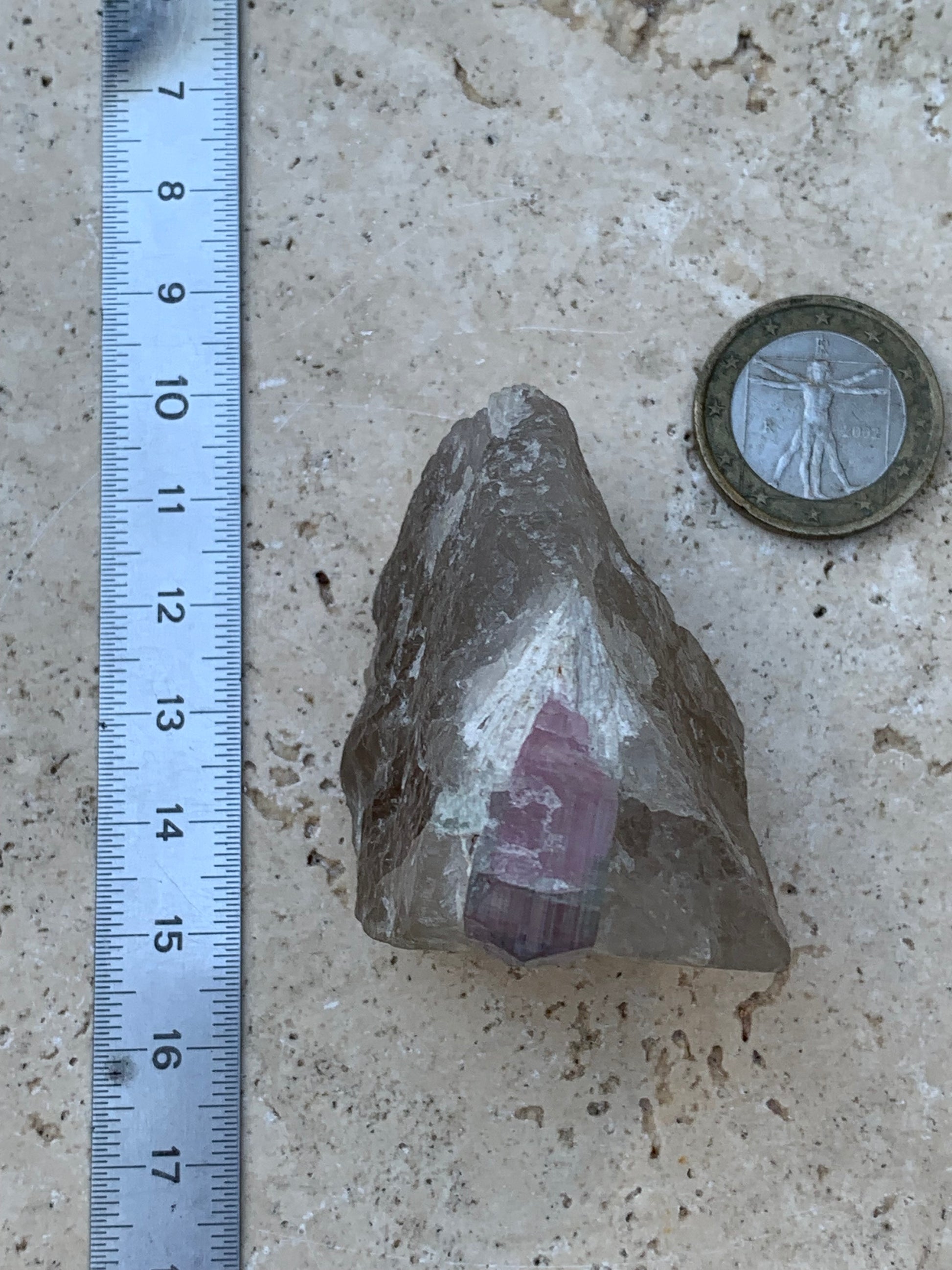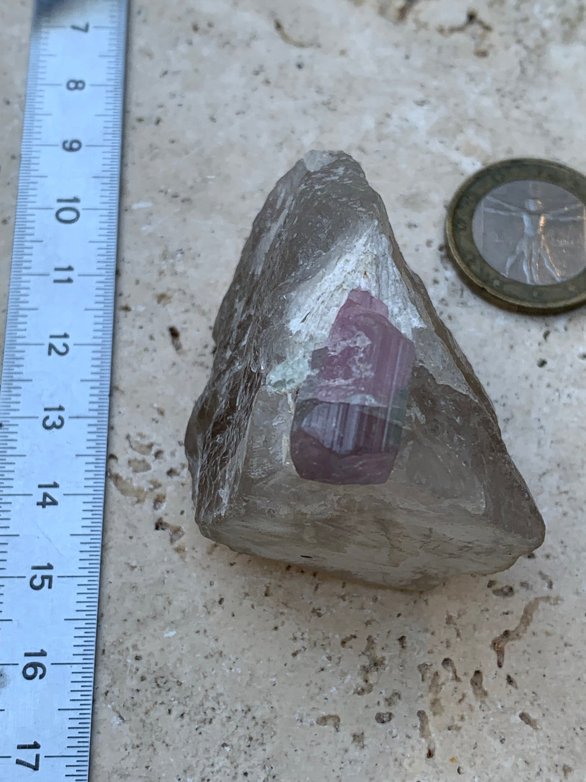 Tourmaline Rubellite sur quartz, 58 x 43 x 40mm - 87,3 grammes. Une très belle petite pièce !