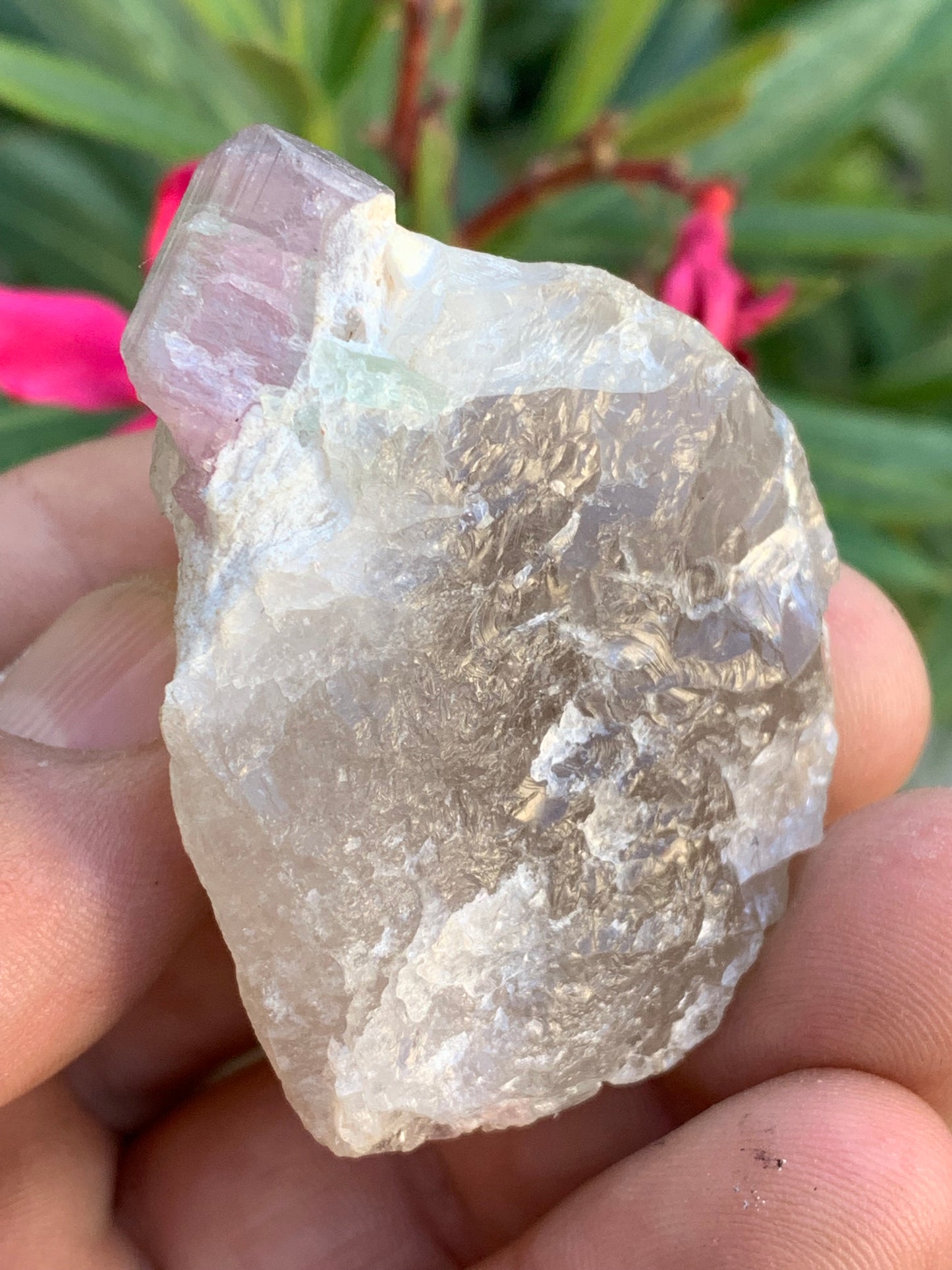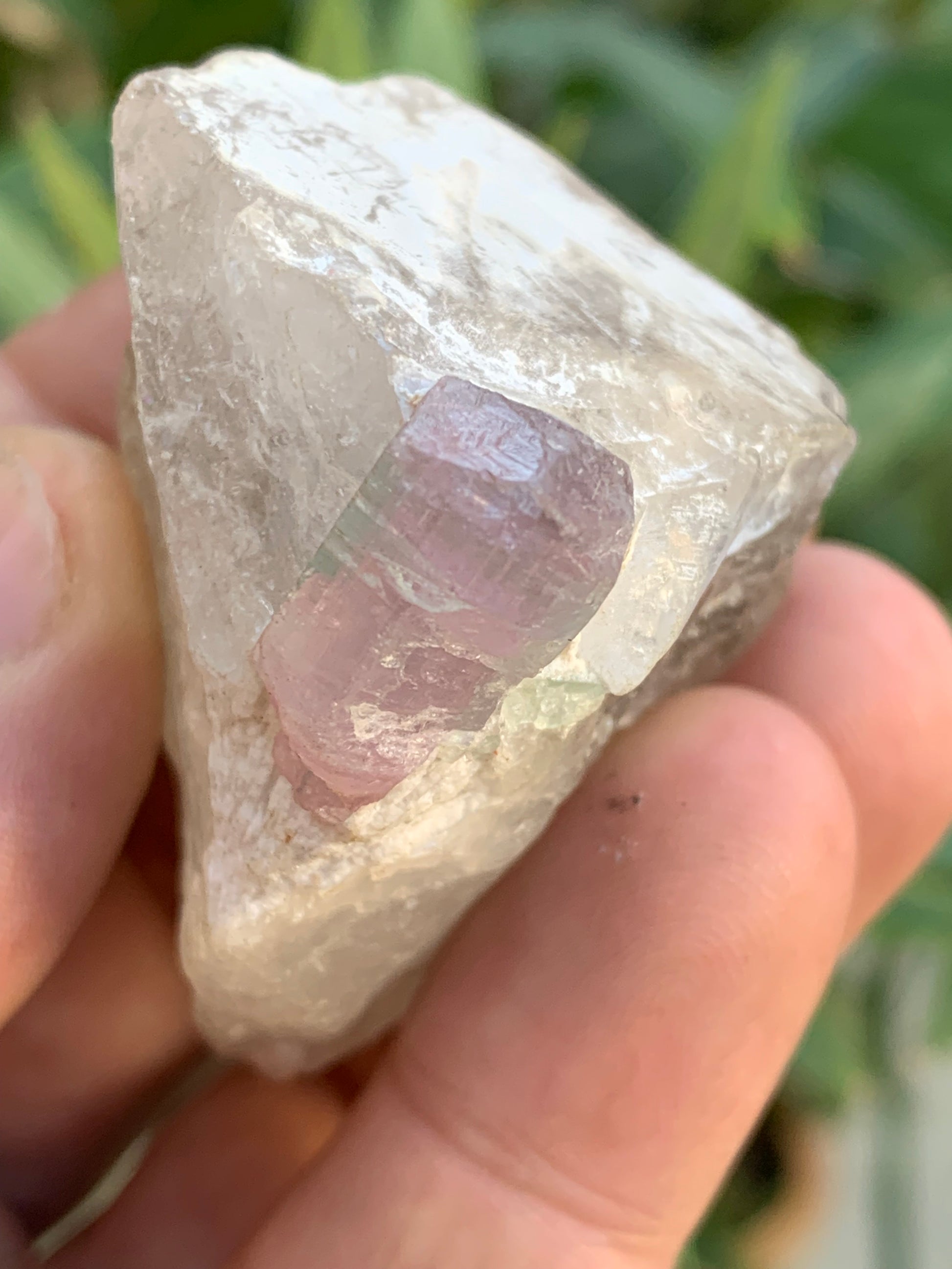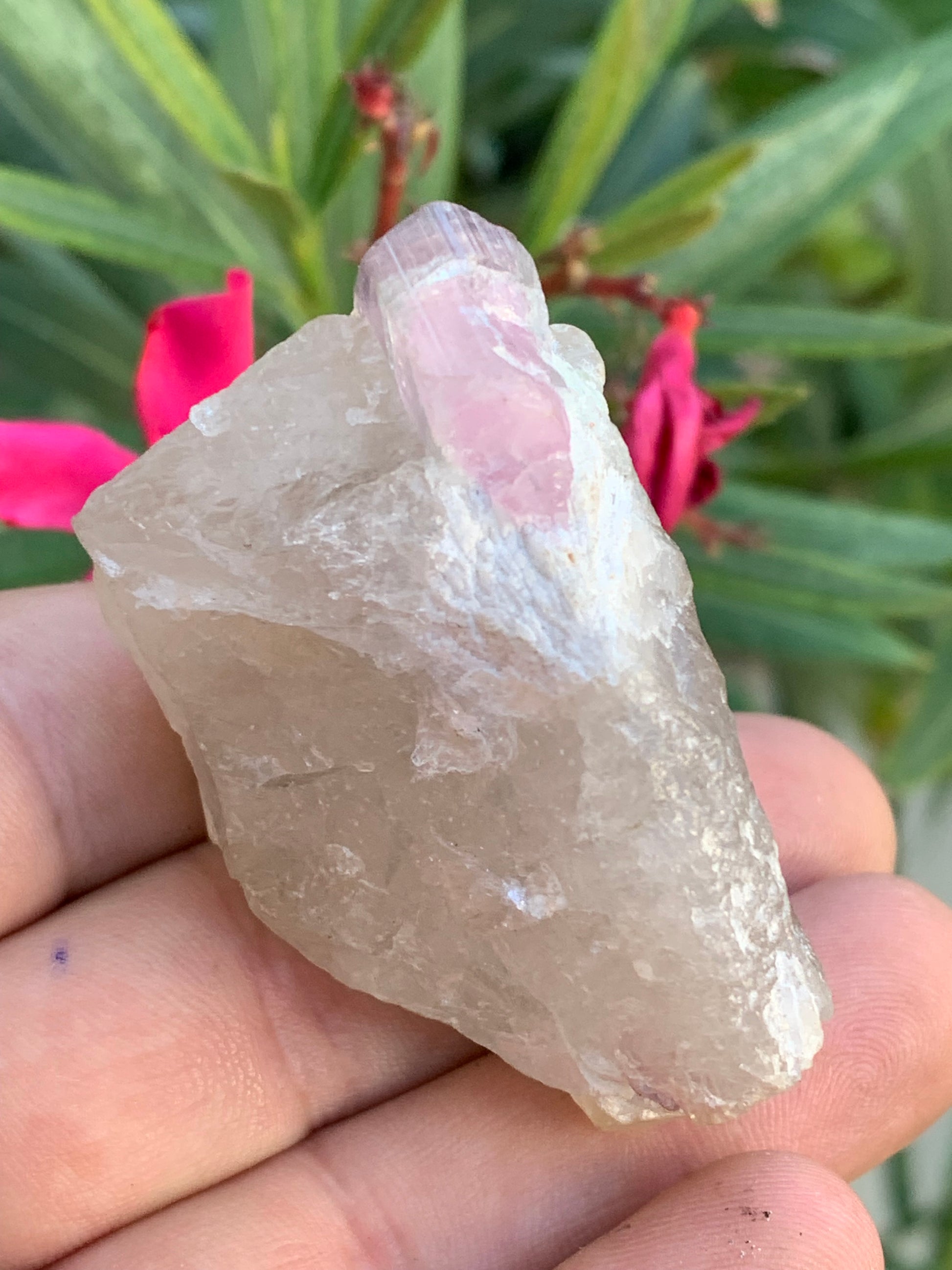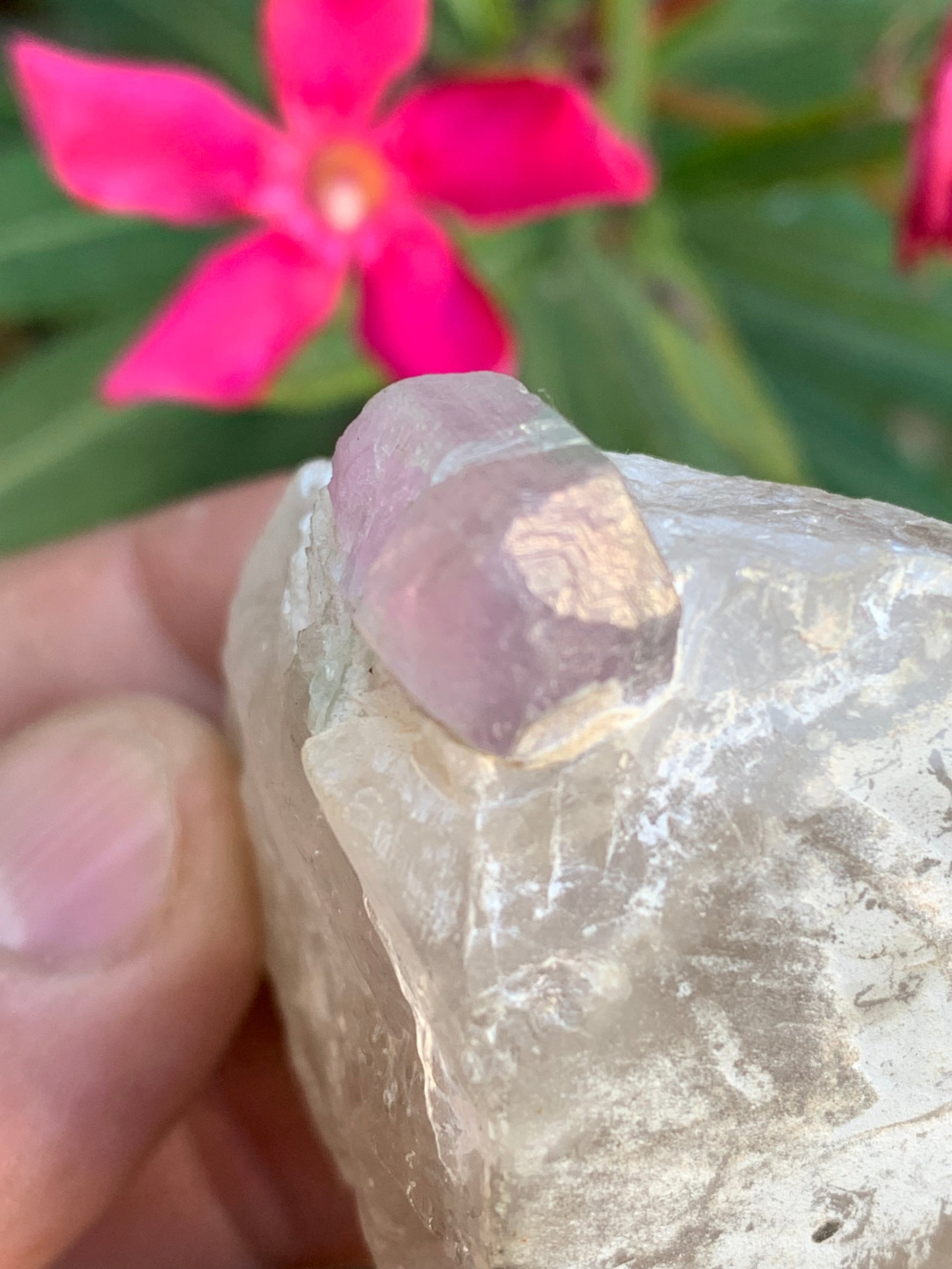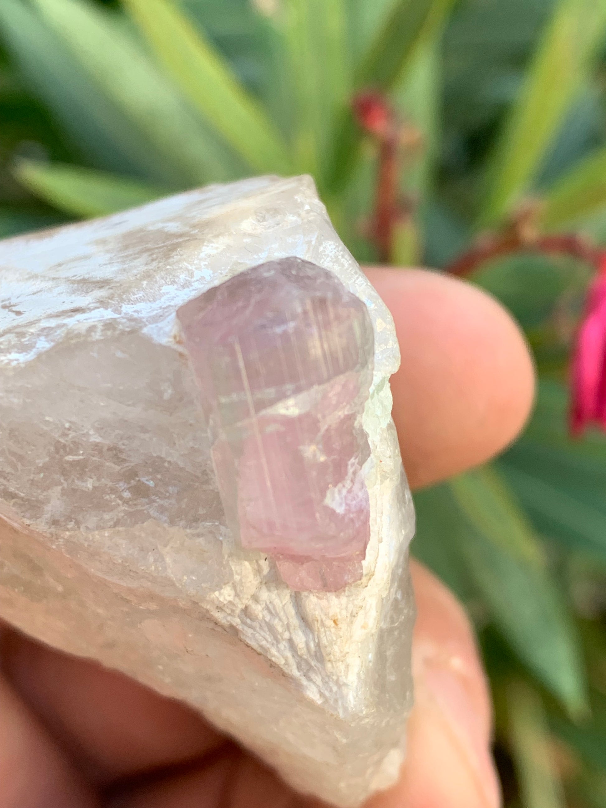Tourmaline Rubellite sur quartz, 58 x 43 x 40mm - 87,3 grammes. Une très belle petite pièce !