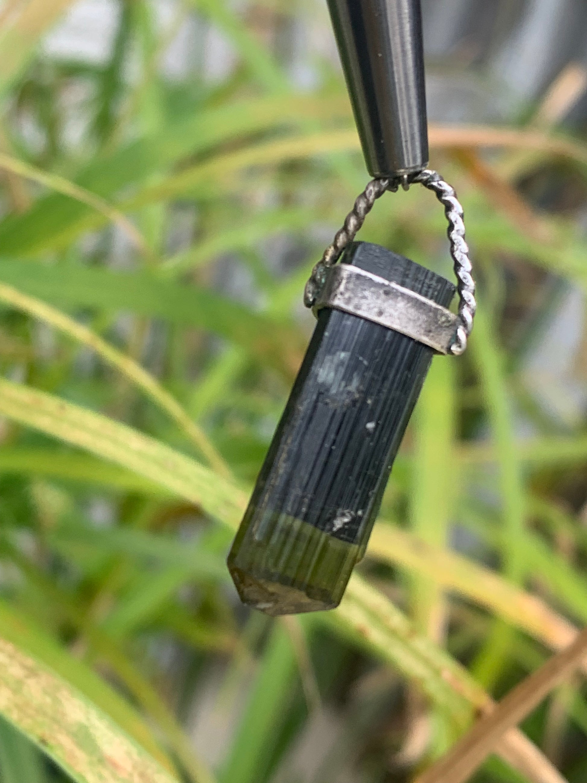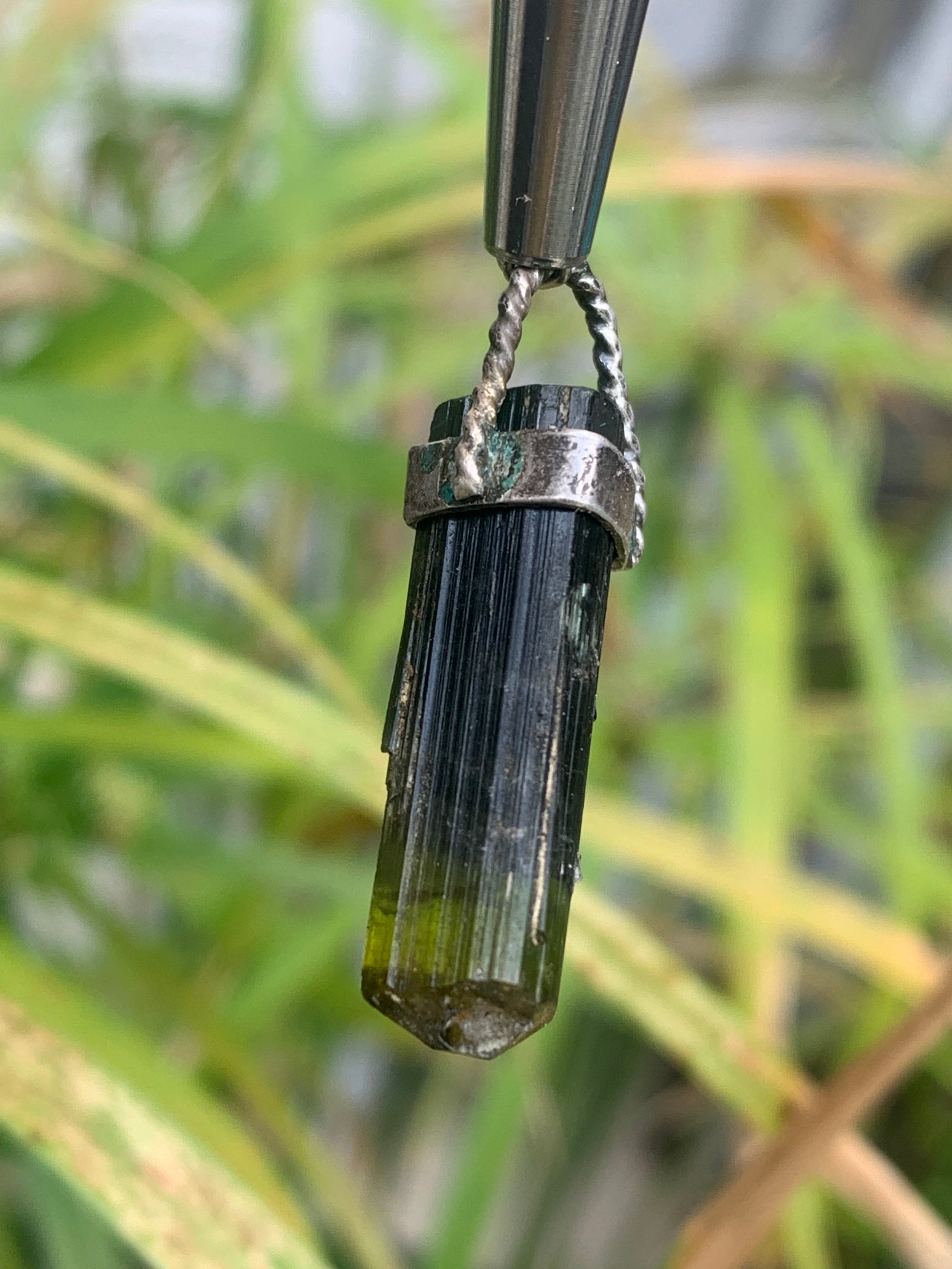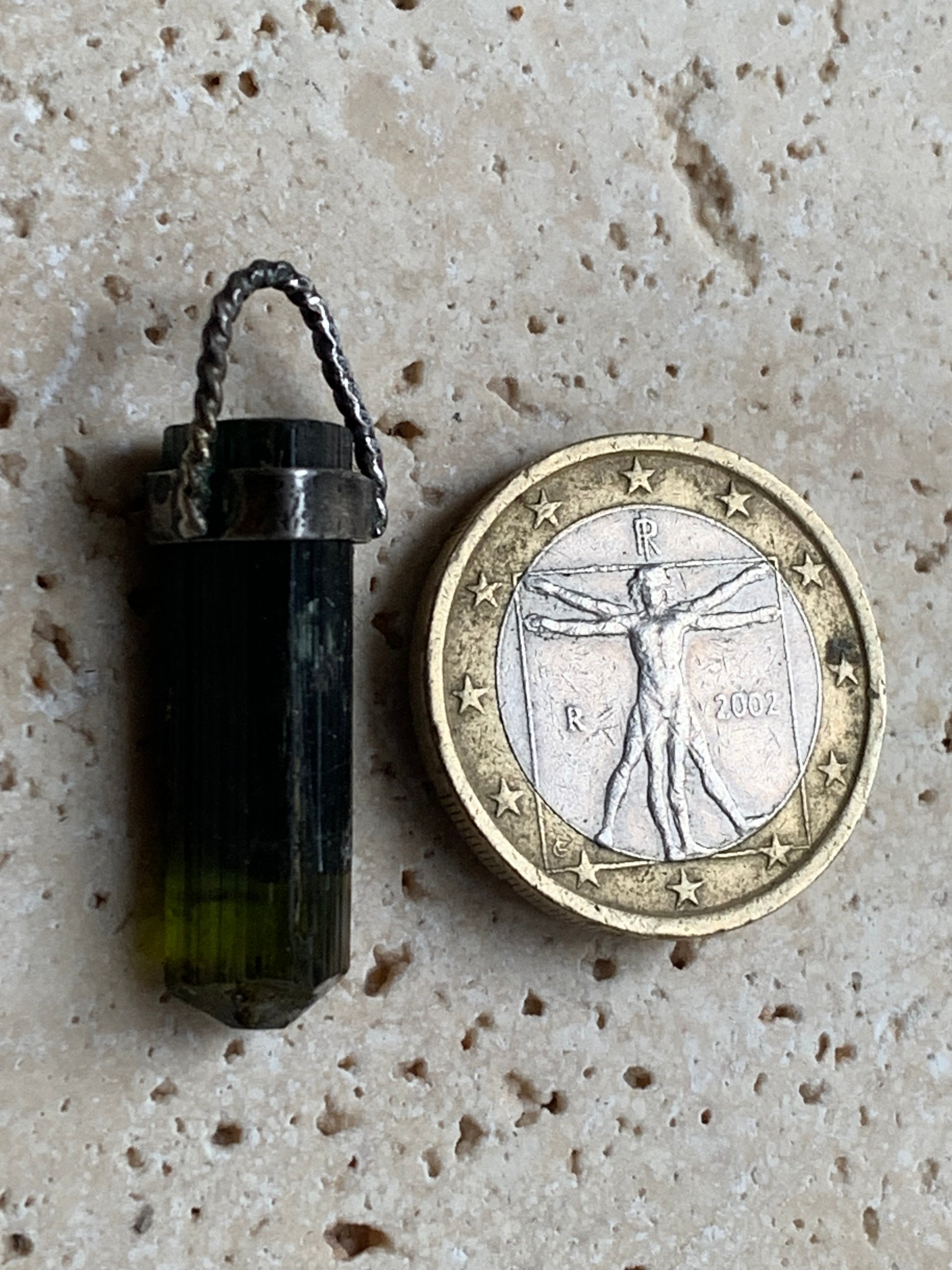 Tourmaline verte ou Verdélite ! Pièce unique en Argent de 32 millimètres de hauteur x 9 millimètres de largeur x 8 d'épaisseur. Vendu avec cordon réglable de couleur noire. Fait par Gen & Zen !