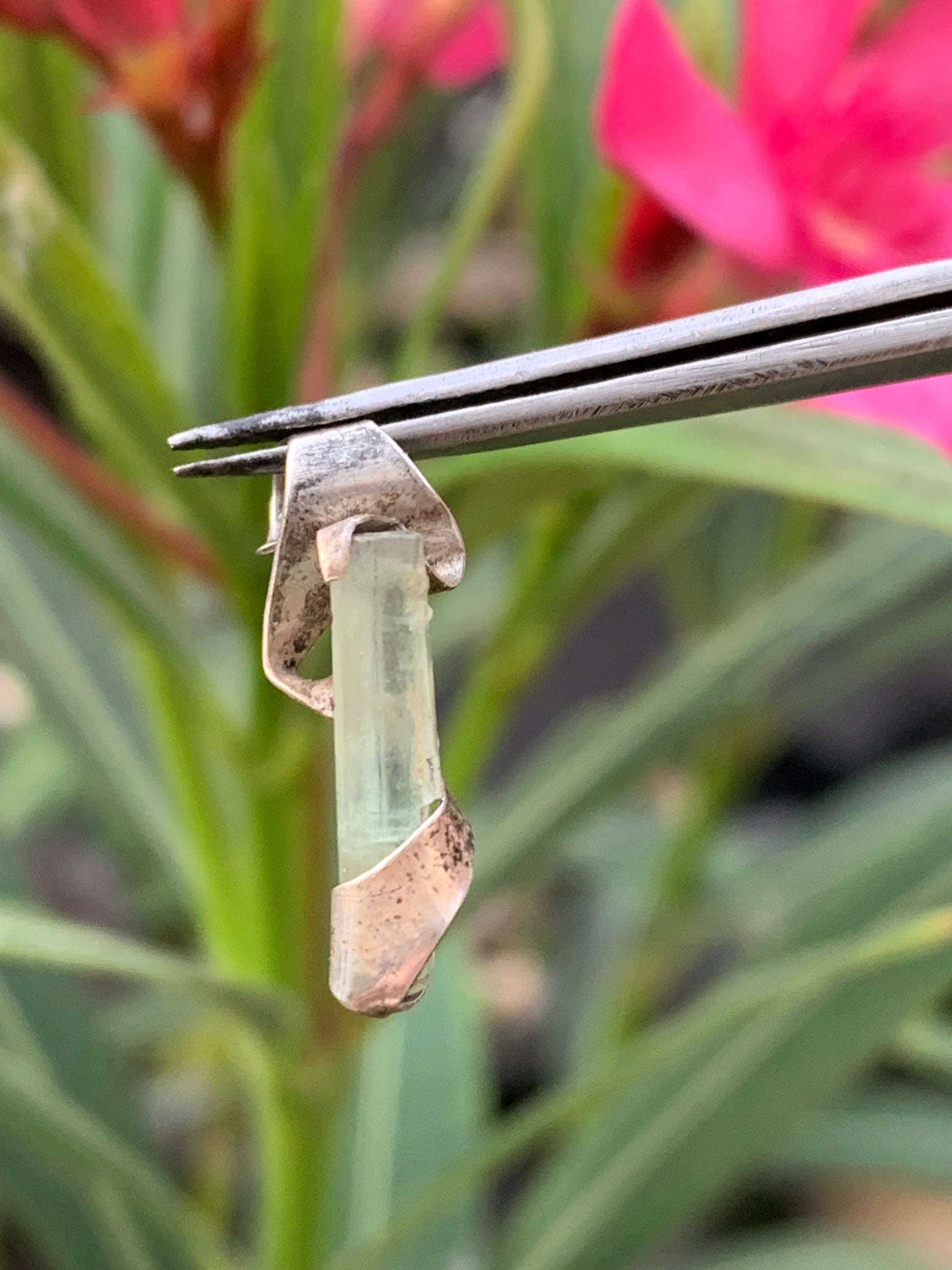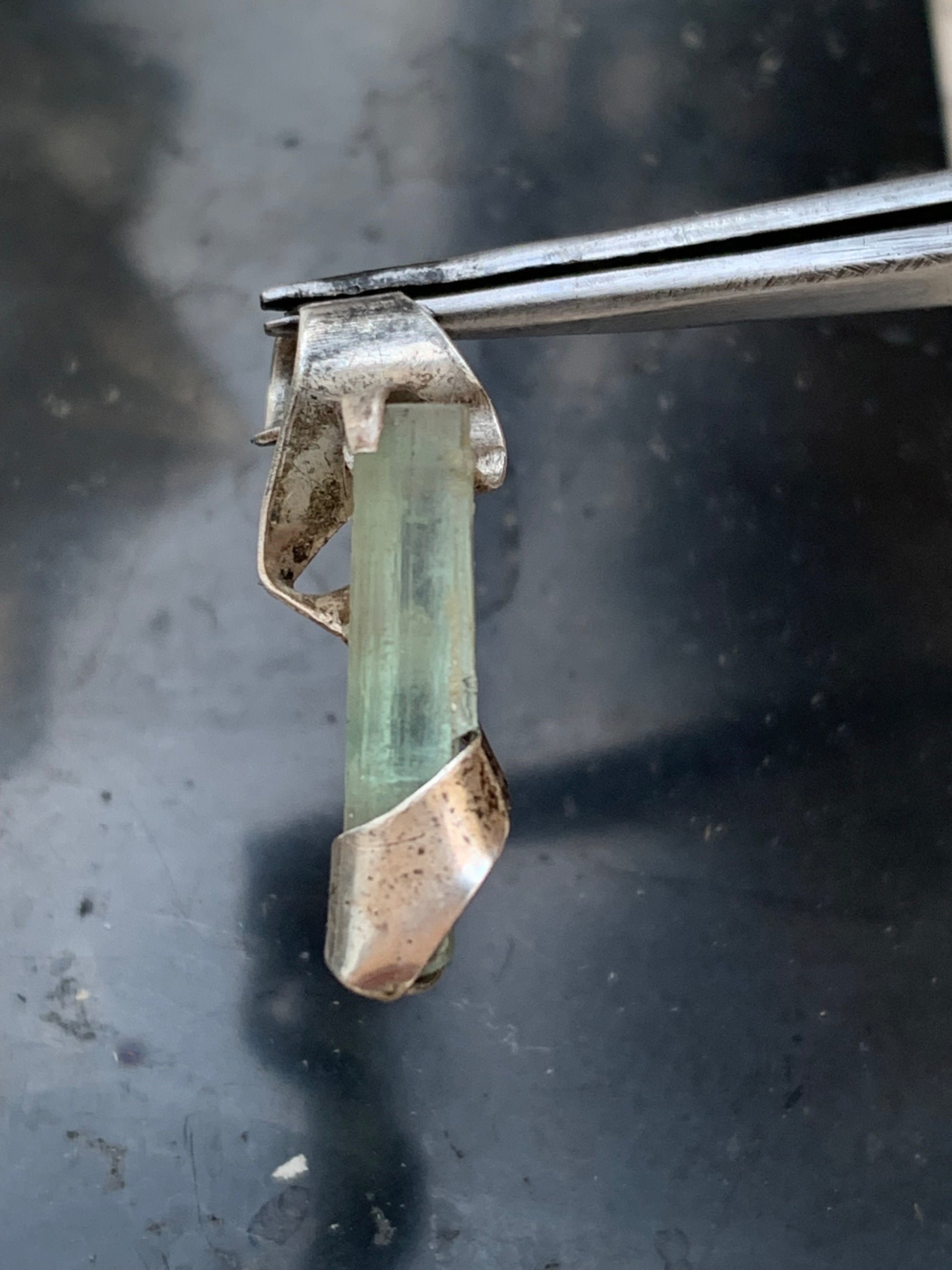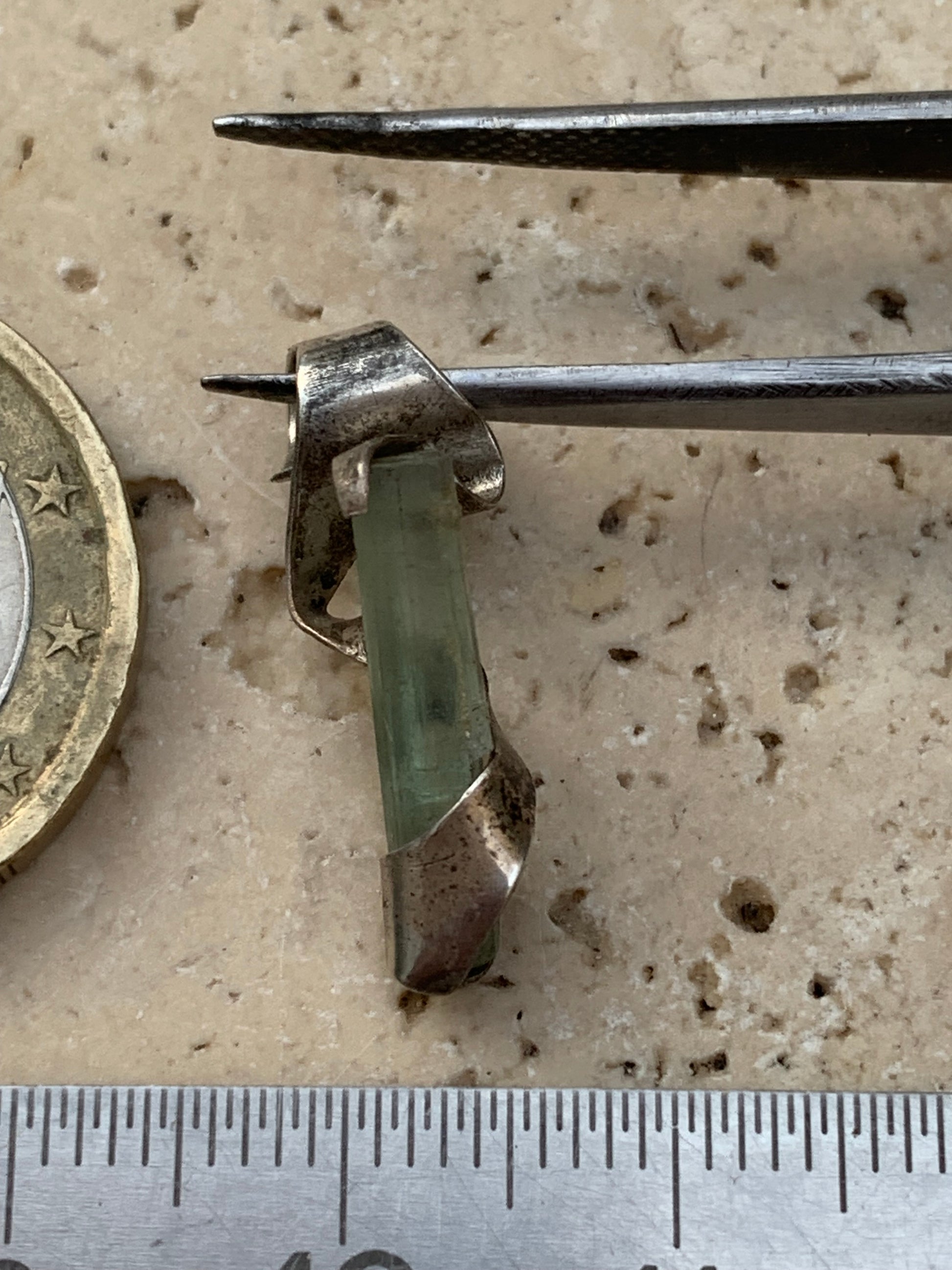 Tourmaline verte/ Verdélite ! Pièce en Argent fait par G&Z de 22 mm de hauteur x4 de largeur x4 d'épaisseur. Vendu avec cordon réglable de couleur noire !