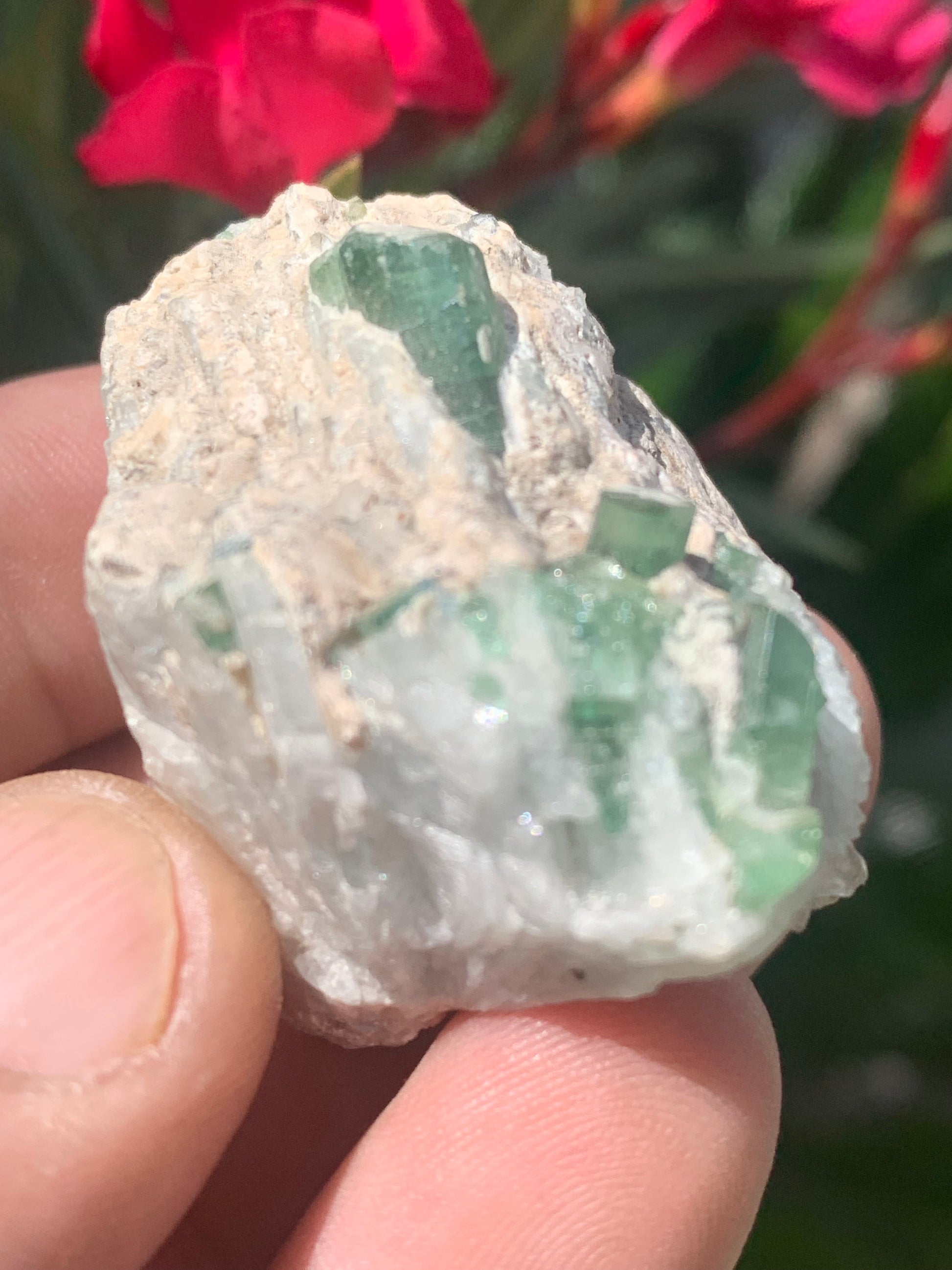 Tourmaline verte/ Verdélite, spécimen naturel de 45 x 32 x 29 mm - 53,9 grammes environ. 2 magnifiques cristaux de belle longueur !